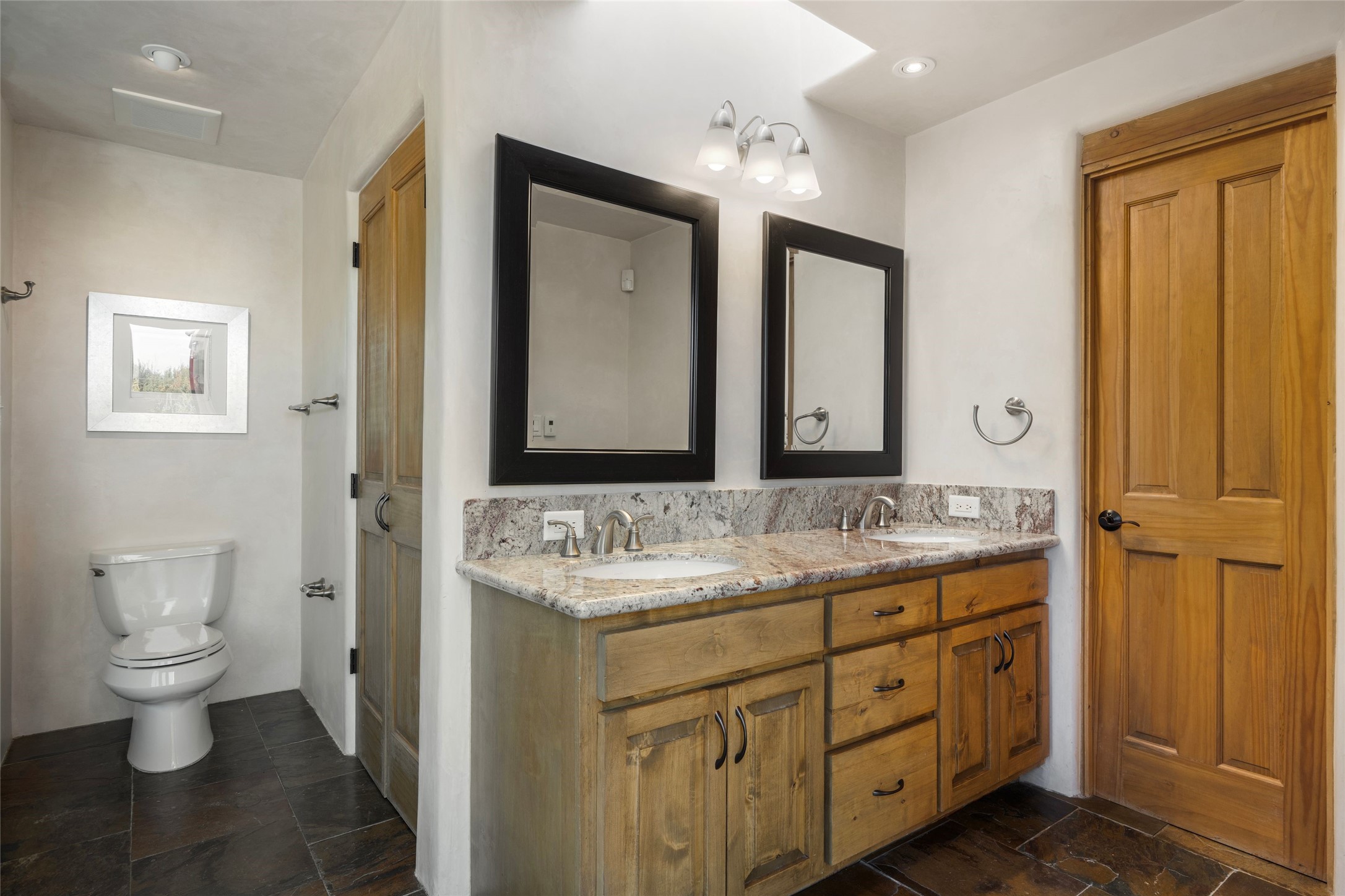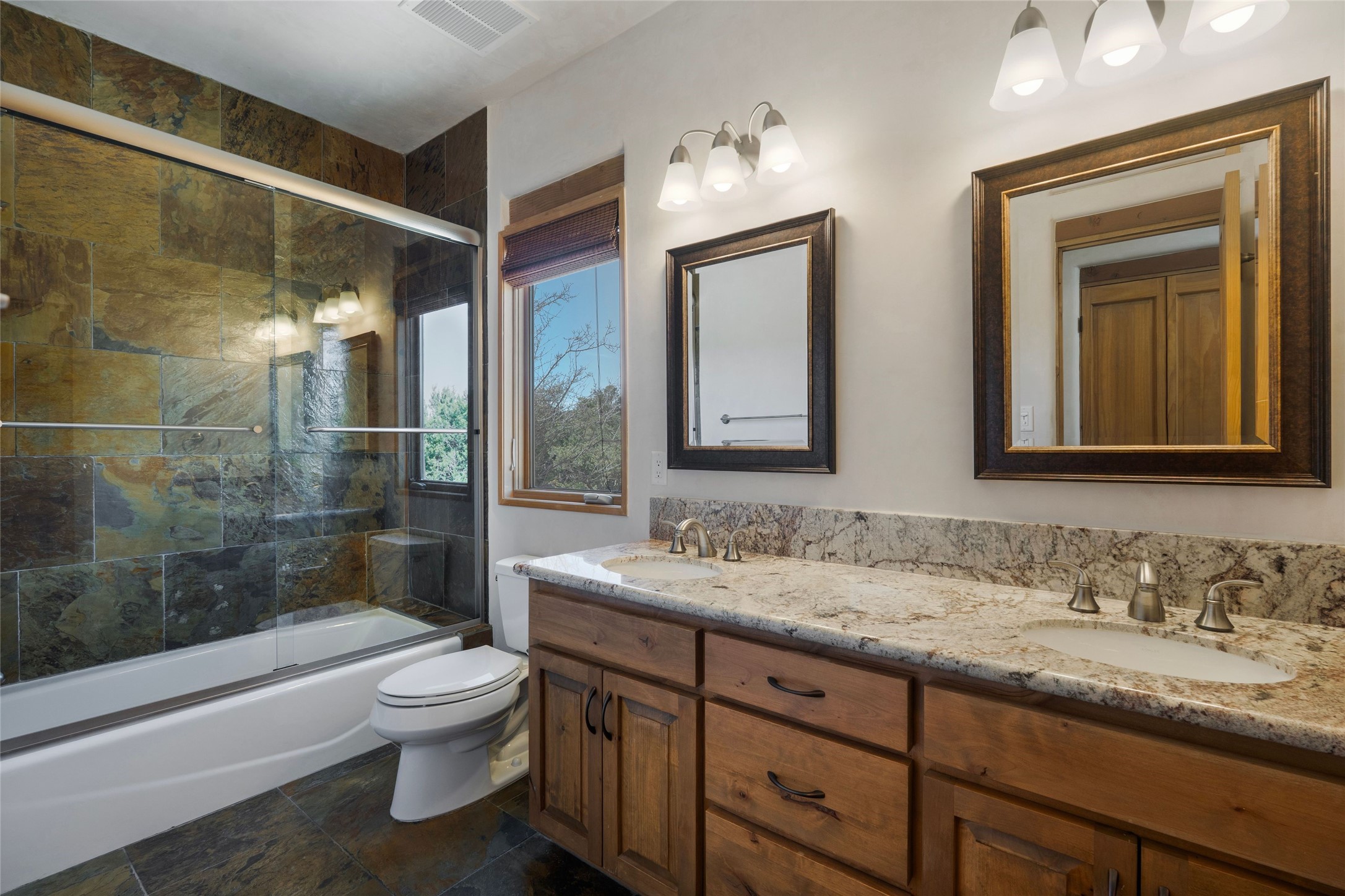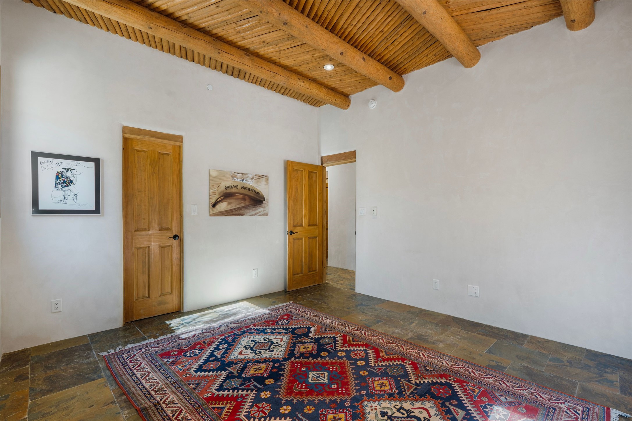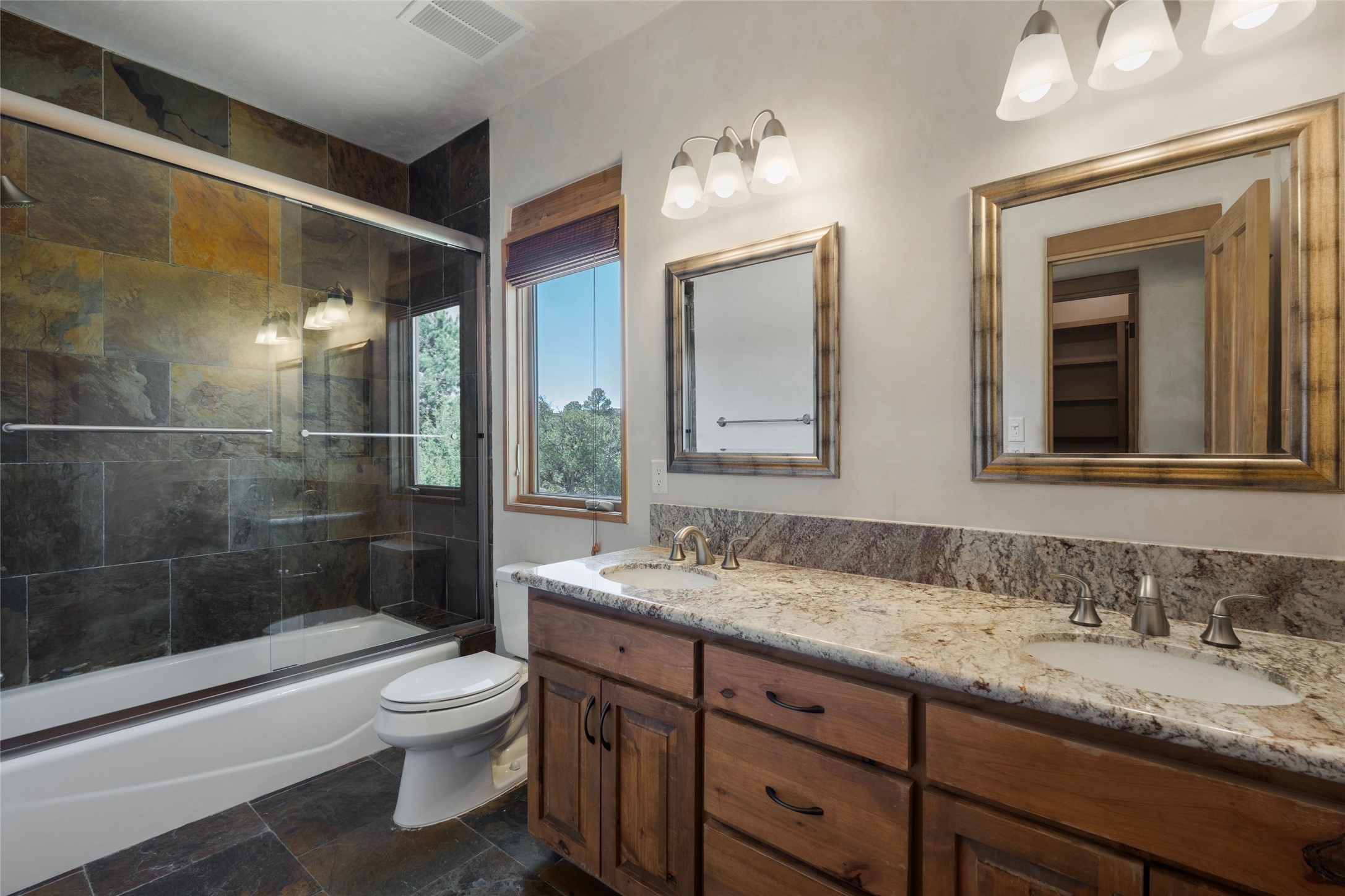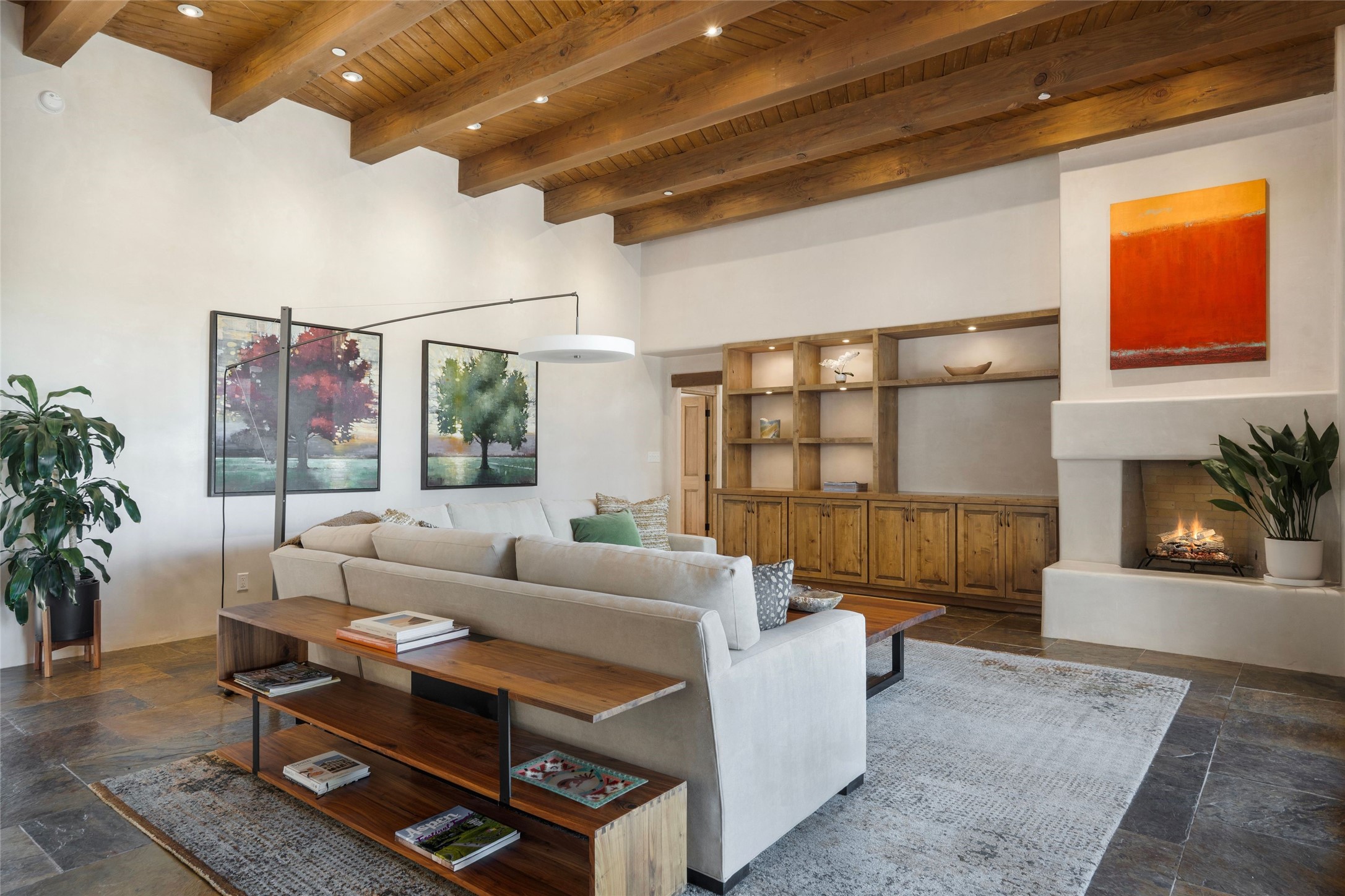 This custom-built 3 bedroom, 3 bathroom home in the gated community of Tesuque Hills offers the perfect escape from the downtown frenzy, while being less than 15 minutes from the heart of Santa Fe. Here, you enjoy the tranquility of the northern foothills with quick access to everything the city has to offer. Set on a tree-covered, 1-acre lot, the home is surrounded by wooded views that create a peaceful and private retreat. Multiple portals invite you to relax and take in the natural beauty, while sunsets filter through the trees and paint the sky in unforgettable color. The spacious interior is thoughtfully designed to feel open to nature, with generous living areas that capture both light and views, seamlessly blending indoor comfort with the outdoors. At the heart of the home is an amazing Chef's kitchen, built for cooking and entertaining. Wrap-around granite countertops, custom cabinetry, double ovens, stainless steel appliances, and a wine refrigerator make it ideal for everything type of chef. The open flow into the main living areas ensures the cook is always part of the conversation. Nearly all of the home is single level, with the primary suite set up a few steps above the main floor. From its own deck, enjoy stunning mountain views and peaceful mornings. One guest room offers an ensuite bathroom while the third bedroom could be used as an office. Slate floors with in-floor radiant heat and classic viga/beamed ceilings further enhance the warmth and authenticity of the home. A secluded hot tub provides the perfect place to stargaze beneath New Mexico's brilliant night skies. Even further up the hill, a fire table creates a magical gathering space. Imagine spending evenings there with friends and family, taking in sweeping, "killer" views of the majestic Sangre de Cristo Mountains--a truly unforgettable backdrop. Experience for yourself why the serenity--yet close proximity--of the northern foothills remains one of Santa Fe's best-kept secrets.