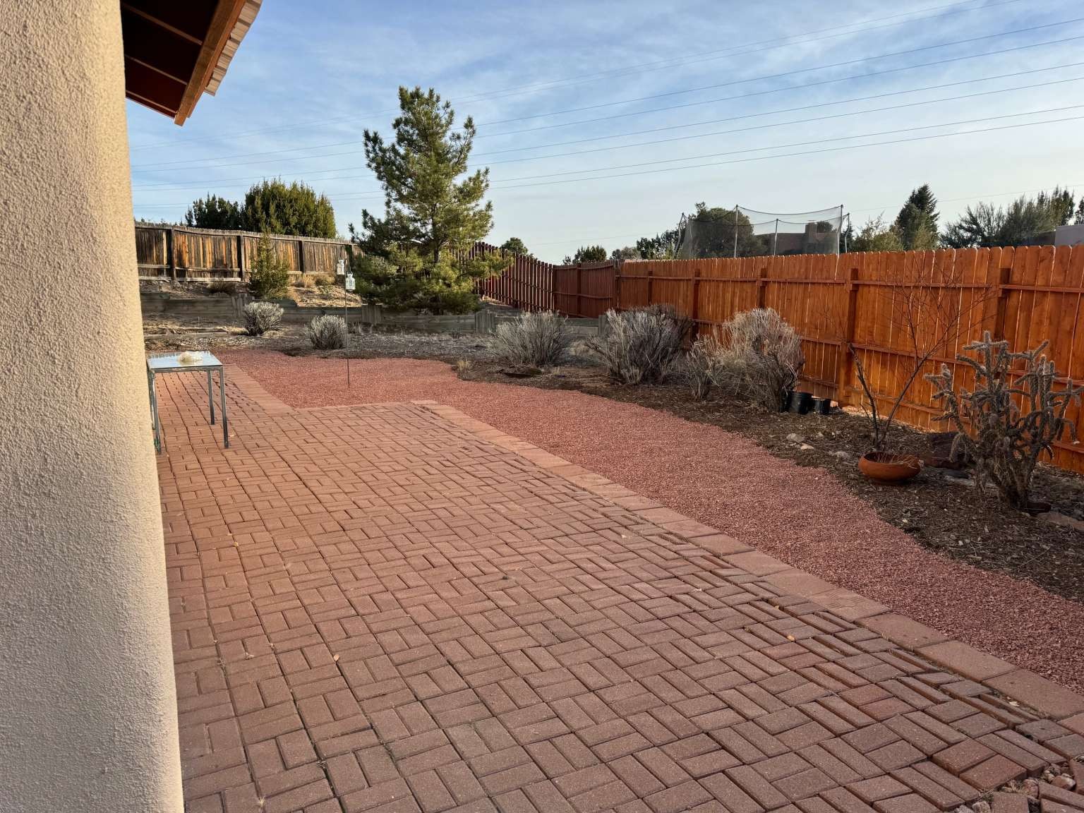 Welcome home to this beautifully maintained 2-bedroom, 2-bath Pueblo-style residence offering 1,653 SF of light-filled living space on a generous fully fenced 8,276 SF lot. The home features a 2-story living room with corner wood-burning kiva fireplace and an open loft, creating an airy architectural focal point. The private upstairs owner's suite includes a large bedroom, full bath and adjacent space for a sitting area, office, atelier or game room. The spacious first floor bedroom with its own full bath is perfect for guests or flexible living. In addition to the living room, the main level also includes a kitchen (with glass-top range, fridge and dishwasher), breakfast room and laundry room with washer & dryer. Step outside to the fully fenced yard with a wrap-around brick patio, ideal for relaxing, entertaining, or enjoying Santa Fe's outdoor lifestyle. An attached 2-car garage adds everyday convenience.