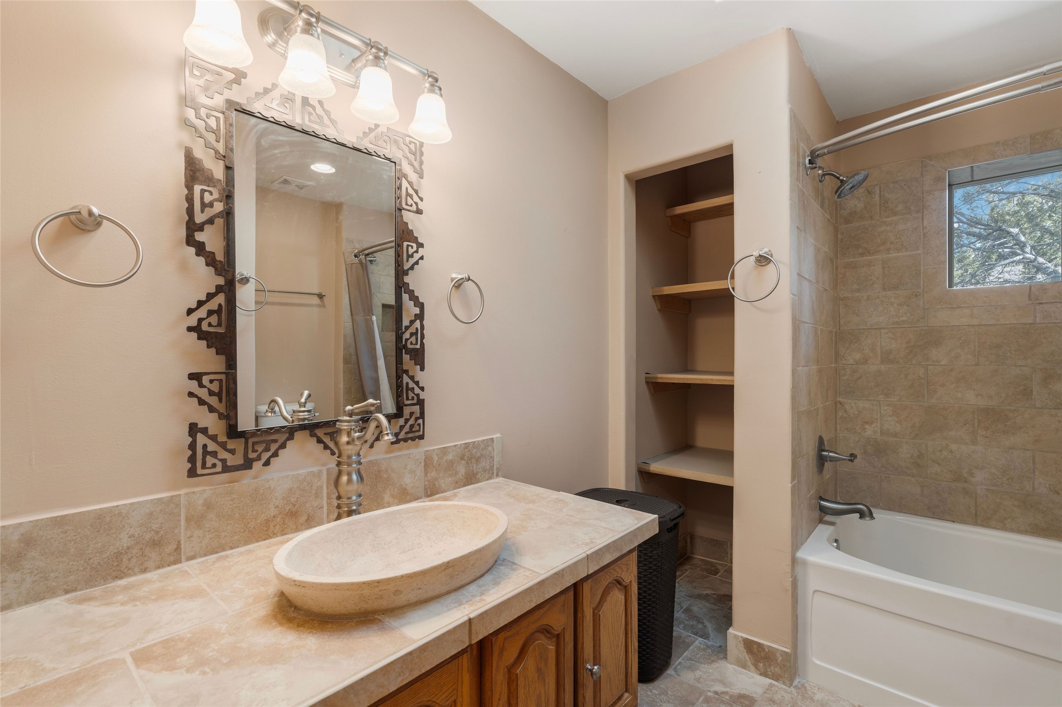 Beautiful home and guest house on eleven acres in the Galisteo basin offers panoramic views of the Ortiz mountains and the Cerro Pelon. The residence features a large living room with tall ceilings of vigas and herring-bone cedar latillas, plaster walls, wood floors, and lots of window looking out to the picturesque scenery. It's built in open concept with the dining area and kitchen, and it has access to a big portal and deck with a fireplace, creating enjoyable outdoor living space with great views. The floorplan also consists of three bedrooms, three bathrooms, and an office or den. There's a 200 square foot workshop/studio or storage room attached to the finished two-car garage. A separate and lovely two-bedroom guest house is fully functional and has a sizeable portal in front and another portal off one of the bedrooms, both with wonderful vistas. The acreage consists of three deeded lots. All just a short drive to shopping and services in the Eldorado area and not much further to Santa Fe. Fabulous northern New Mexico country living!