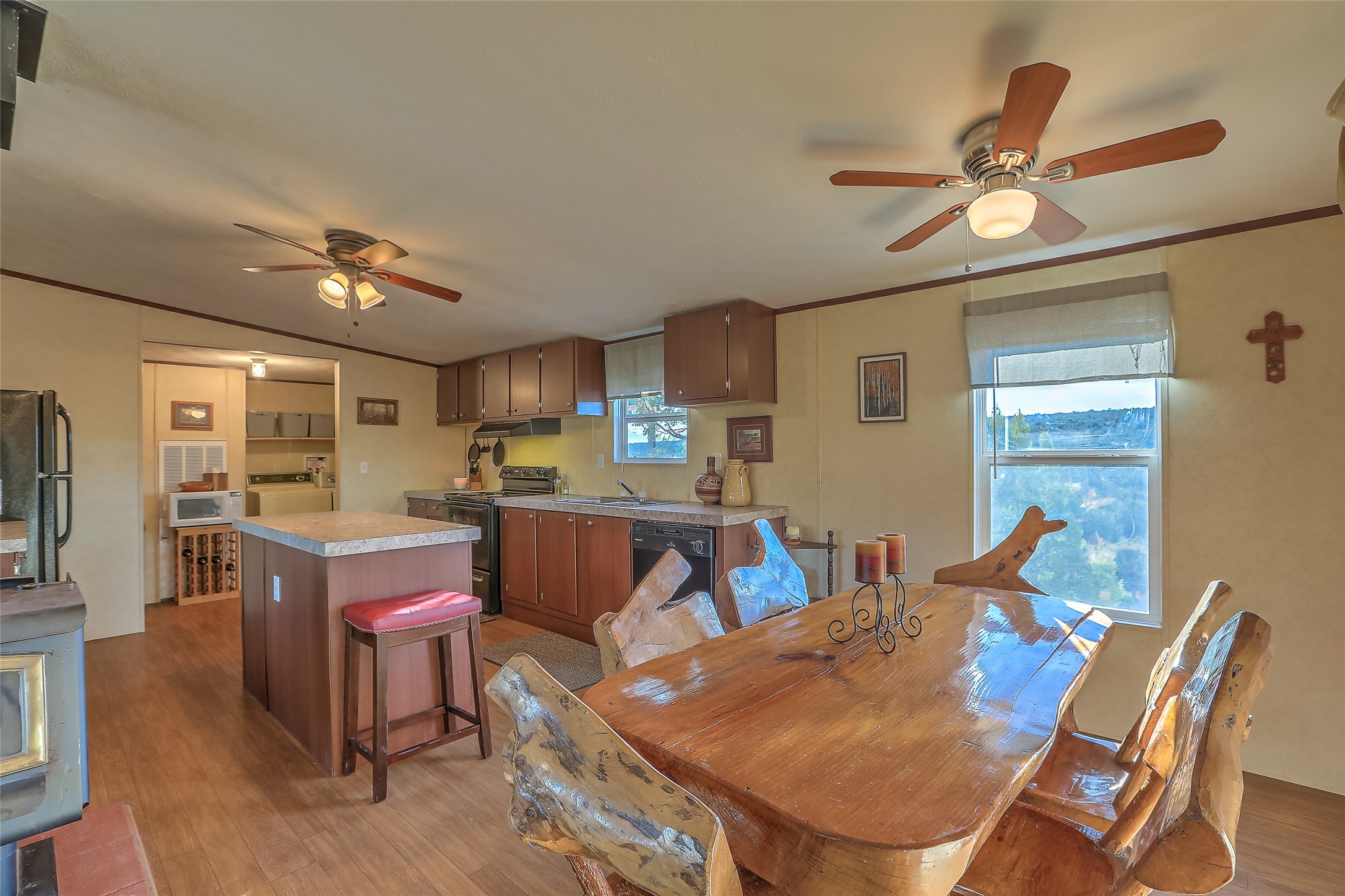 Rancho El Patrn encompasses 1,316 acres of varied northern New Mexico terrain, combining elevation, expansive views, and a strong sense of scale. From elevated vantage points, the ranch enjoys spectacular views of the Sangre de Cristo Mountains, Tecolote Creek, Hermit's Peak, Starvation Peak, and portions of the historic Old Santa Fe Trail. Despite its peaceful and quiet setting, the ranch benefits from paved access on NM-84 and is located only 10 miles from Interstate 25. The ranch is just 20 minutes from historic Las Vegas, New Mexico, and one hour from the culture and fine dining in Santa Fe. The ranch is anchored by a series of elevated rocky bluffs, including roughly one mile of rimrock rising more than 300 feet above the surrounding landscape. The broader topography includes rolling hills, mesas, pion and juniper woodland, arroyos, and prominent rock outcroppings that create visual depth and natural separation across the property. Elevations range from approximately 5,800 to 6,300 feet, with higher ground providing amazingly broad vistas with a variety of potential building sites well positioned for views and privacy.Historically part of an early Spanish land grant, Rancho el Patrn has been held as a private family ranch for many years. The property includes approximately one mile of frontage along U.S. Highway 84 and benefits from existing infrastructure that supports long-term flexibility. Approximately two miles of water pipelines and underground electric extend along interior roads, serving seven potential building sites throughout the ranch.The ranch is divided into three legal parcels, providing meaningful options for future ownership. The configuration and infrastructure allow for development possibilities and would enhance the value of a conservation easement, depending on an owner's long-term objectives.Improvements include a furnished 2016 Clayton manufactured home with three bedrooms and two bathrooms, offering approximately 1,475 square feet of living space. The residence has central heat and a wood-burning stove. There is also window-unit heating and cooling. Three covered porches and a two-car carport provide additional utility. The home is well suited as a comfortable base while developing the property and/or constructing a primary ranch residence.Water resources include two wells, five dirt tanks, three drinkers, and an extensive underground water distribution system. Cattle handling facilities include pens and a loading chute. The property also includes an additional 4-car carport/workshop and a single carport.Located within New Mexico Game Management Unit 43, the ranch supports wildlife including elk, mule deer, black bear, turkey, and mountain lion. The ranch qualifies for unlimited landowner elk tags and over-the counter landowner deer hunting.Rancho El Patrn offers a balanced combination of acreage, privacy, infrastructure, and accessibility--appropriate for continued ranch use, a private holding, or a long-term land strategy aligned with development or conservation goals.