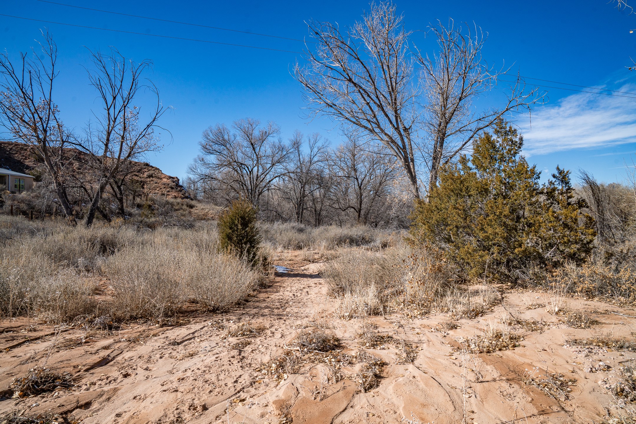 Capture a piece of gorgeous Chimayo land on .95 lush acreage!! Flat land with easy building sites provides for house, guest house and storage buildings! Trees and birds abound! Access to BLM land is available as well. There is a shared well on the property and a gate already provided for access into the property. Water rights also will transfer!! Owner may finance with 20% down.