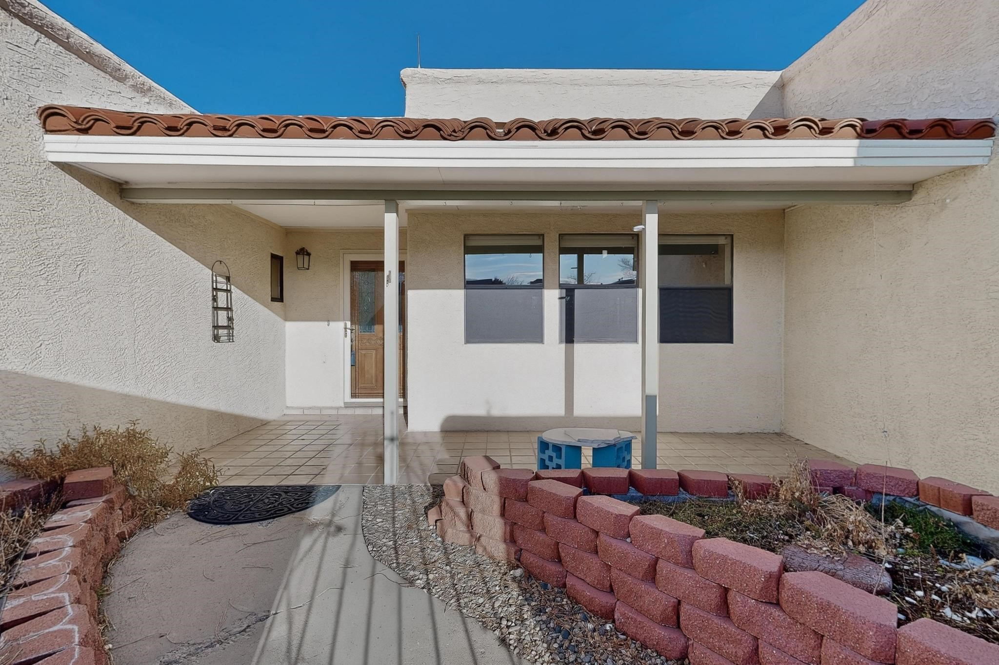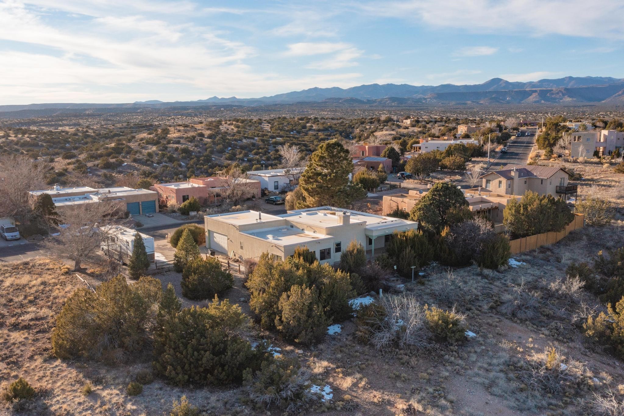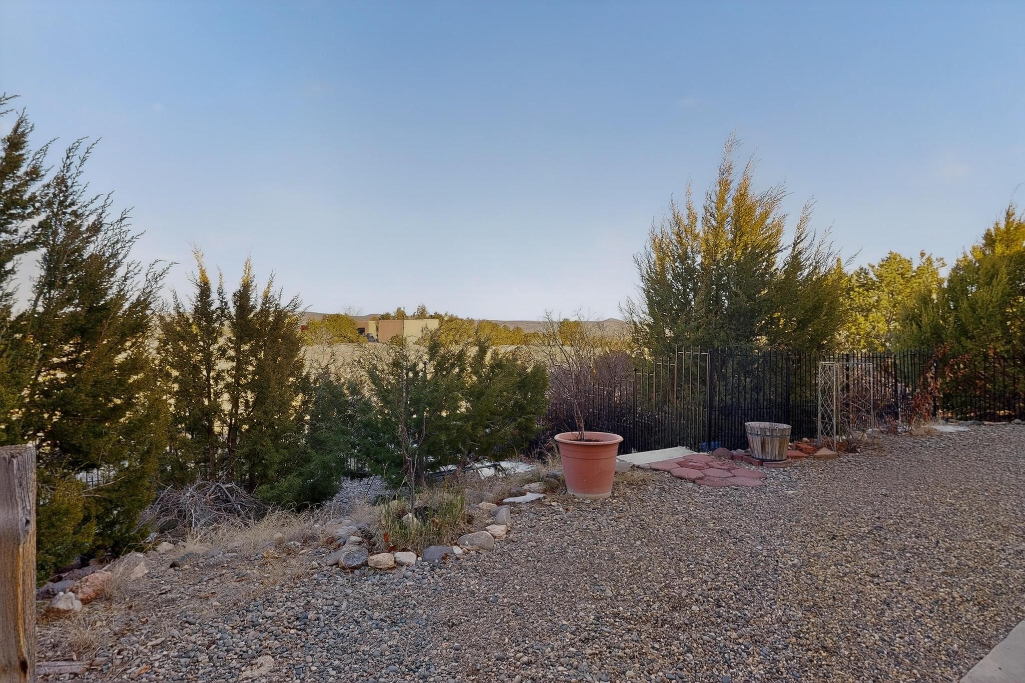 Thoughtfully designed approx. 2,500 sq ft, 3-bedroom plus flex room, 3-bath, 2-car garage home on a desirable double lot backing to open space, offering added privacy and beautiful views. The spacious living area, with room for an office or sitting area, features vaulted wood beam ceilings, a stone gas fireplace updated in 2023, and built-in shelving.The well-planned layout includes two primary bedrooms with en-suite baths, one with a walk-in closet, plus a third bedroom and an additional full bath. Bathrooms have been thoughtfully updated, including a remodeled primary bath with a walk-in shower. A sunroom, small office area off the kitchen, direct-access garage, and dedicated laundry room provide excellent flexibility for daily living.Notable improvements include a new furnace and water heater (2019), updated kitchen appliances and lighting, newer washer and dryer, insulated garage door, updated interior and exterior lighting, ceiling fans, window coverings, replaced window pulleys and screens, UV/heat-filtering window film, and new carpet in the living area and bedrooms. Additional amenities include marble flooring, forced air heating, central evaporative cooling, raised garden beds, fruit trees, and recent exterior updates.A wonderful opportunity to enjoy space, privacy, views, and relaxed Cochiti living. Please see the documents section for a complete list of updates and improvements.