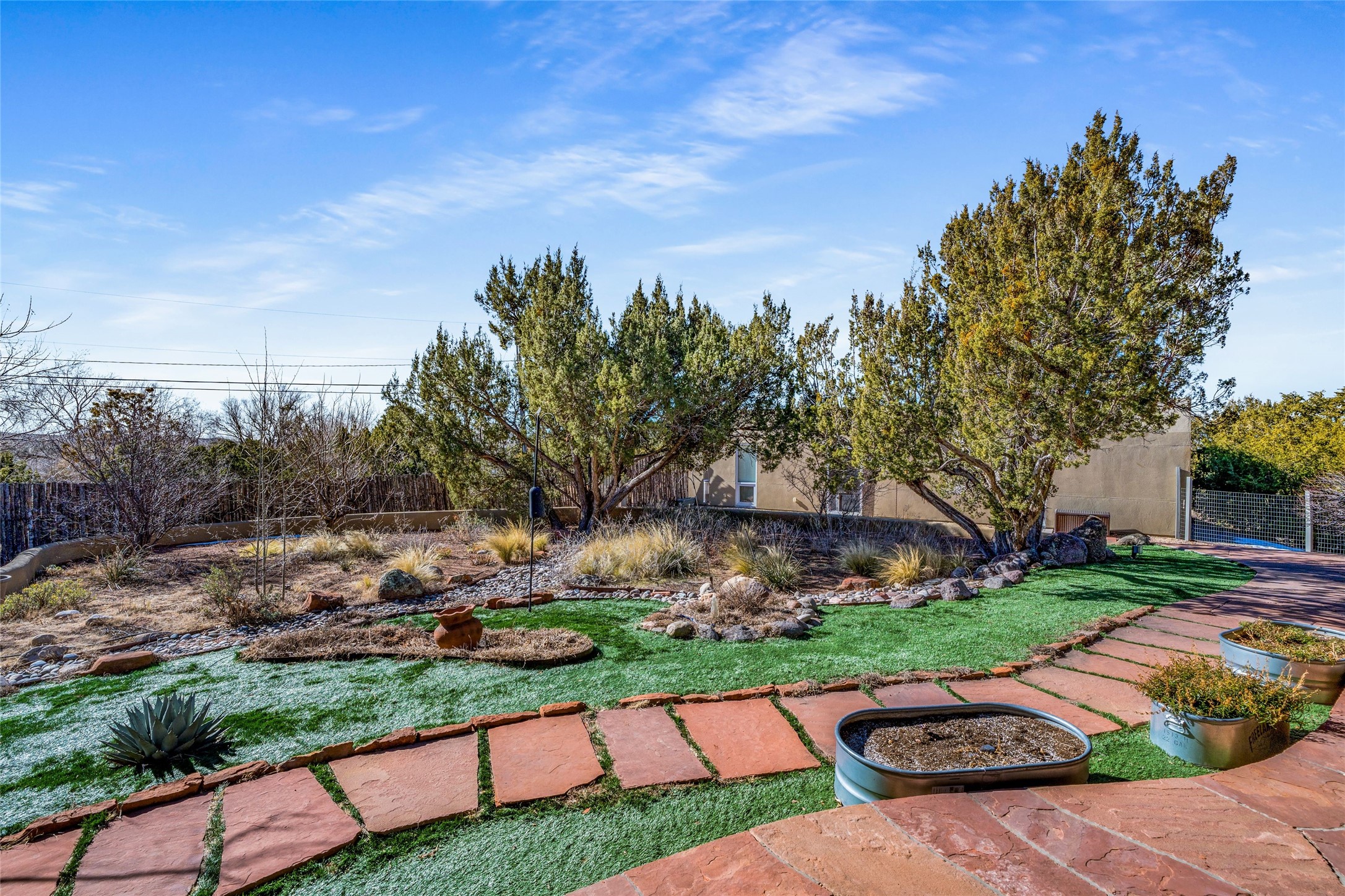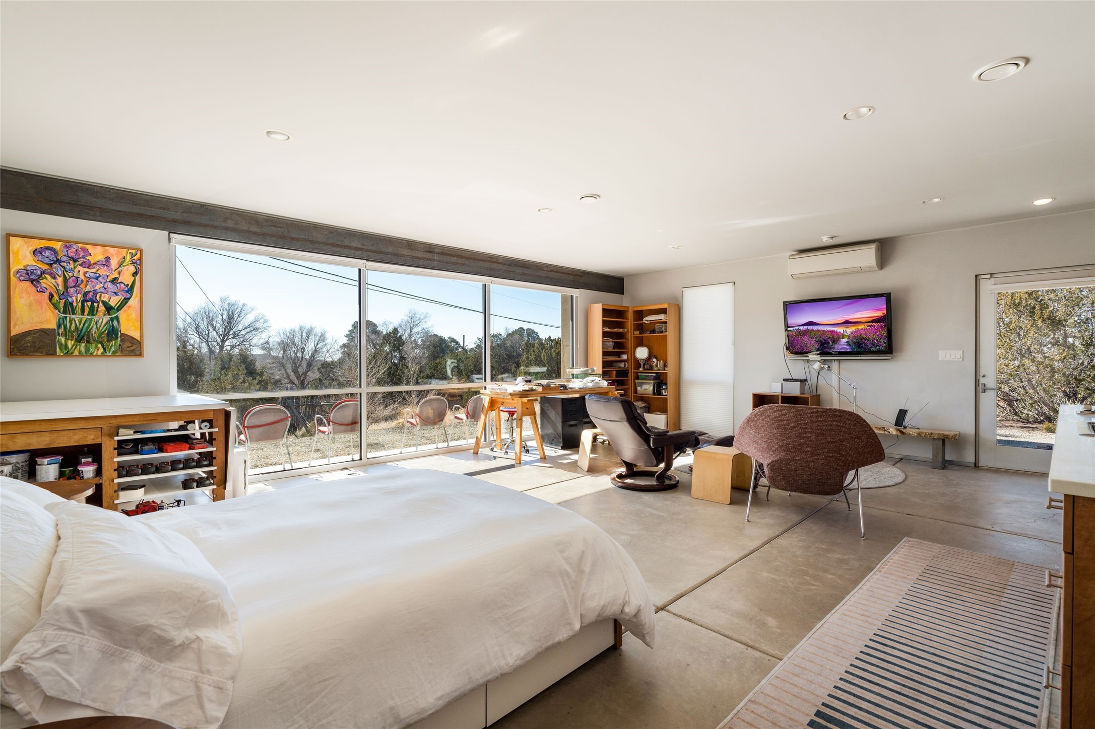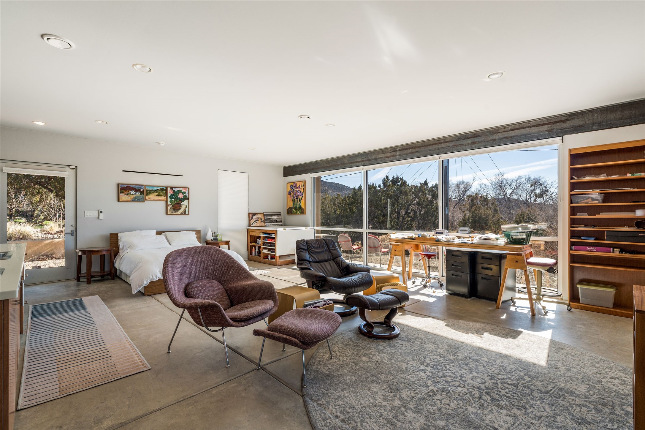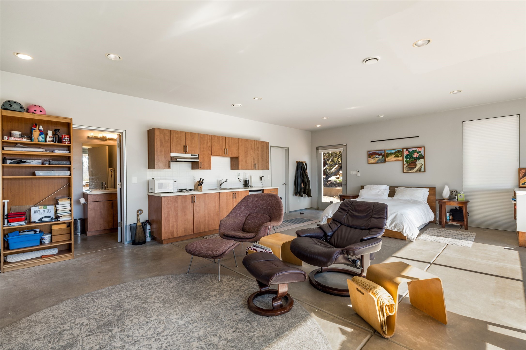 Situated on a desirable corner lot sits this lovely soft contemporary home with abundant natural light, concrete floors, tastefully landscaped yard and fabulous newer casita with attached two car garage.