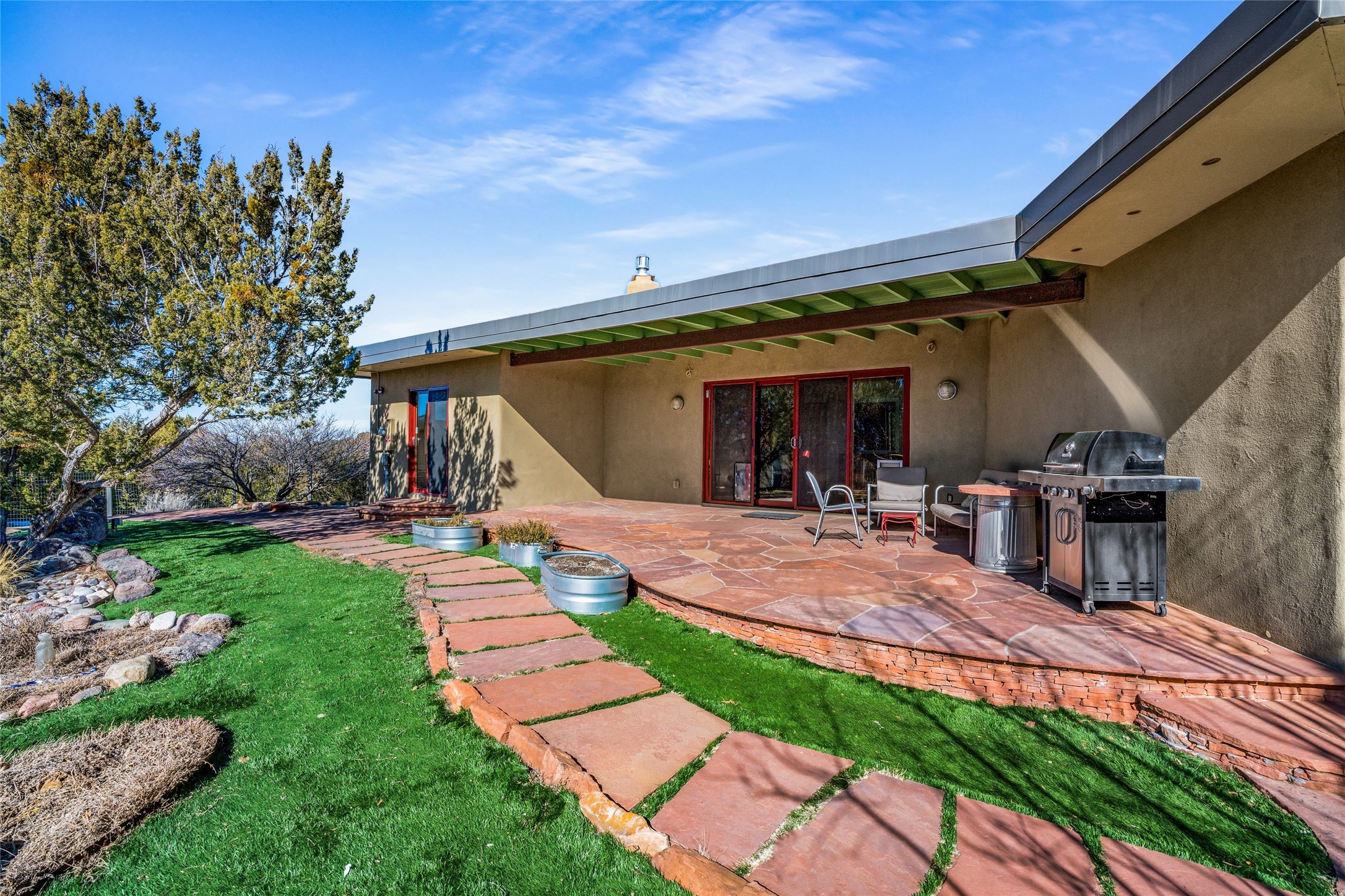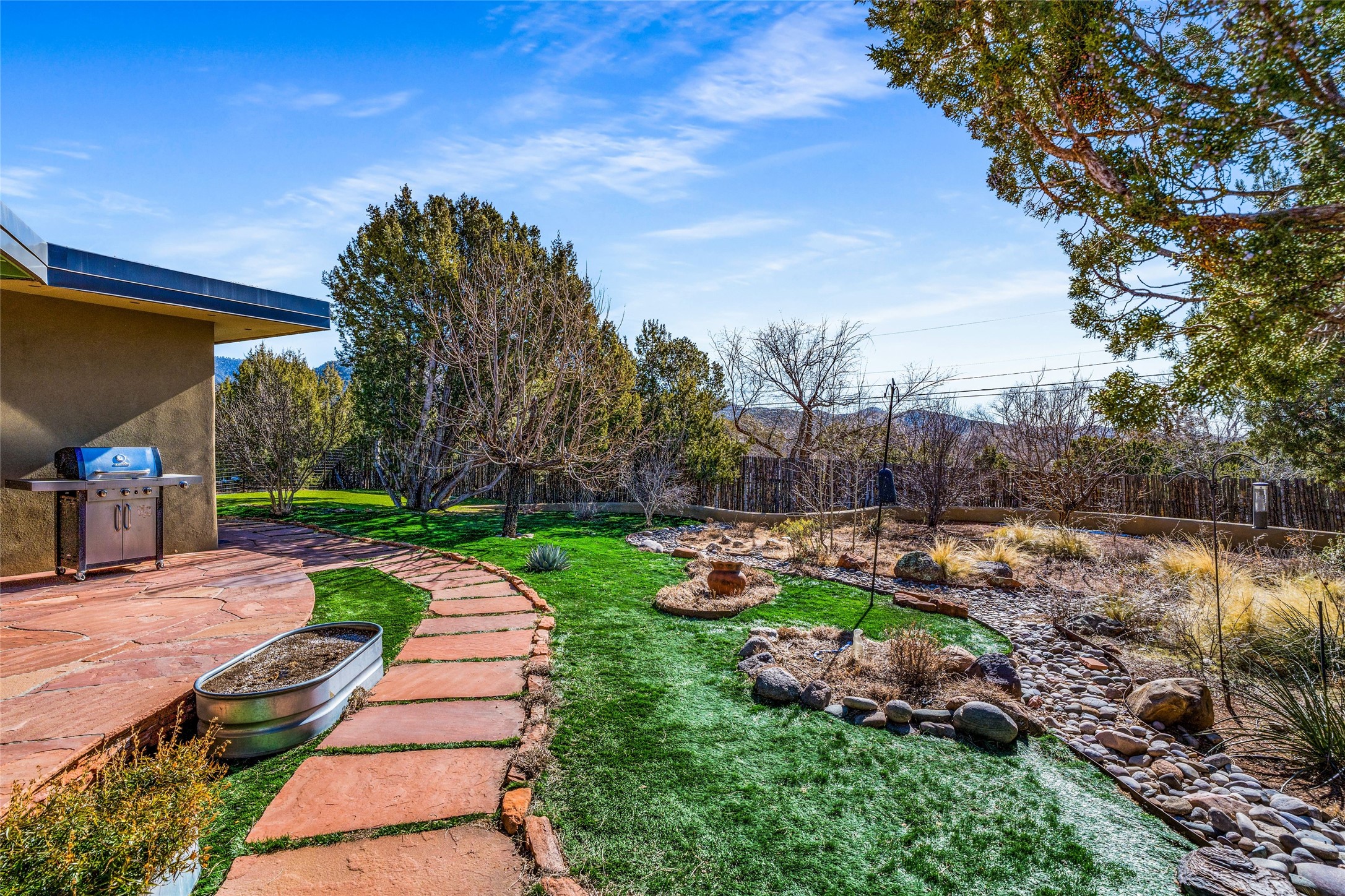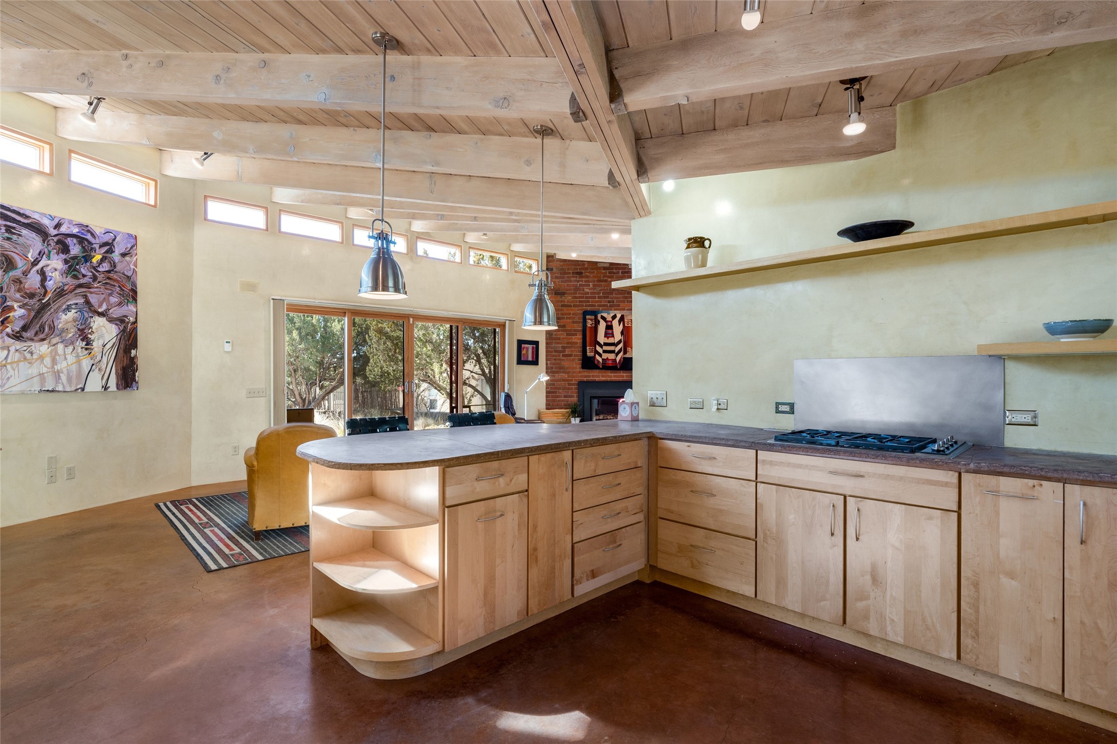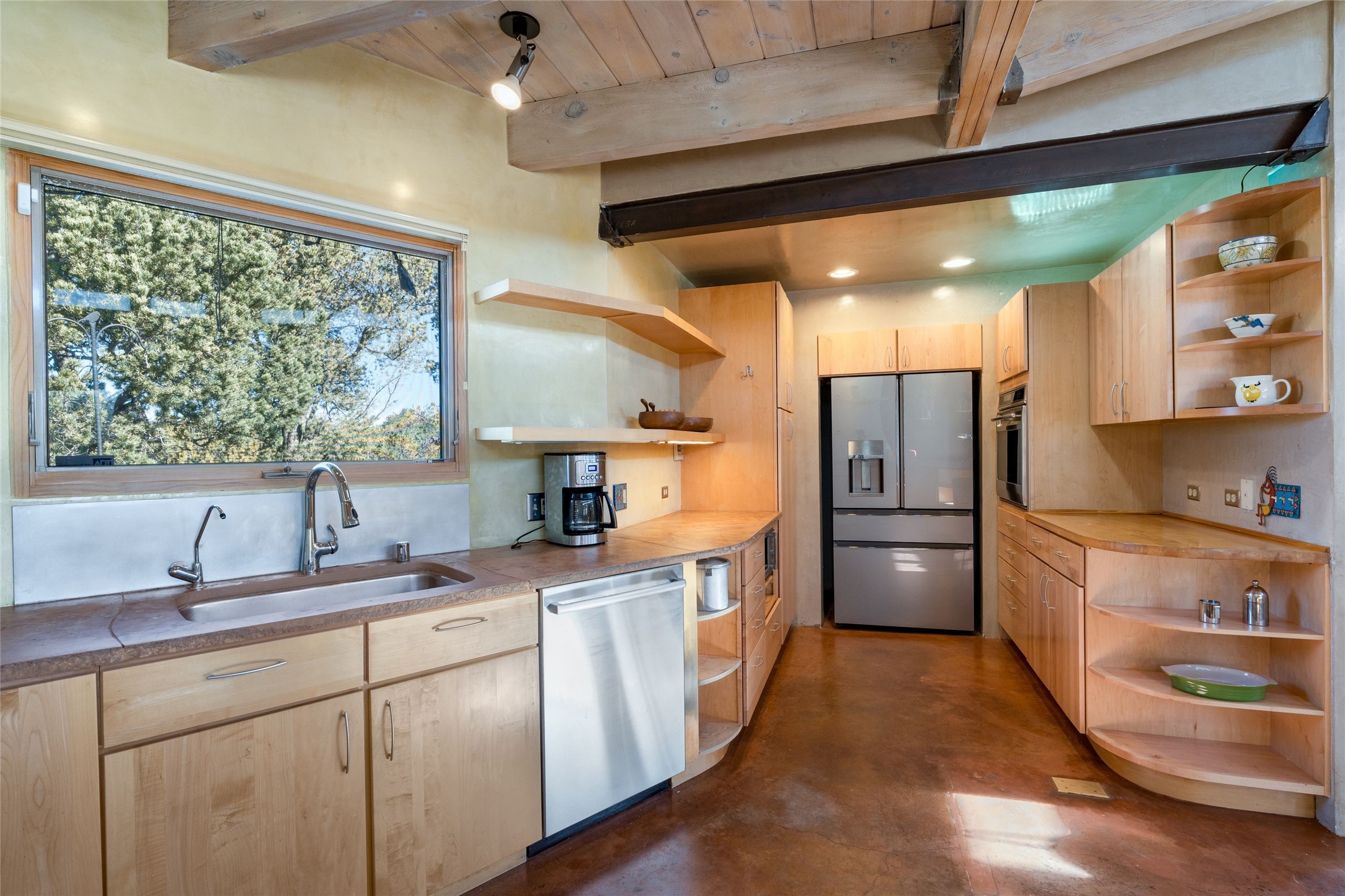 Situated on a desirable corner lot sits this lovely soft contemporary home with abundant natural light, concrete floors, tastefully landscaped yard and fabulous newer casita with attached two car garage.