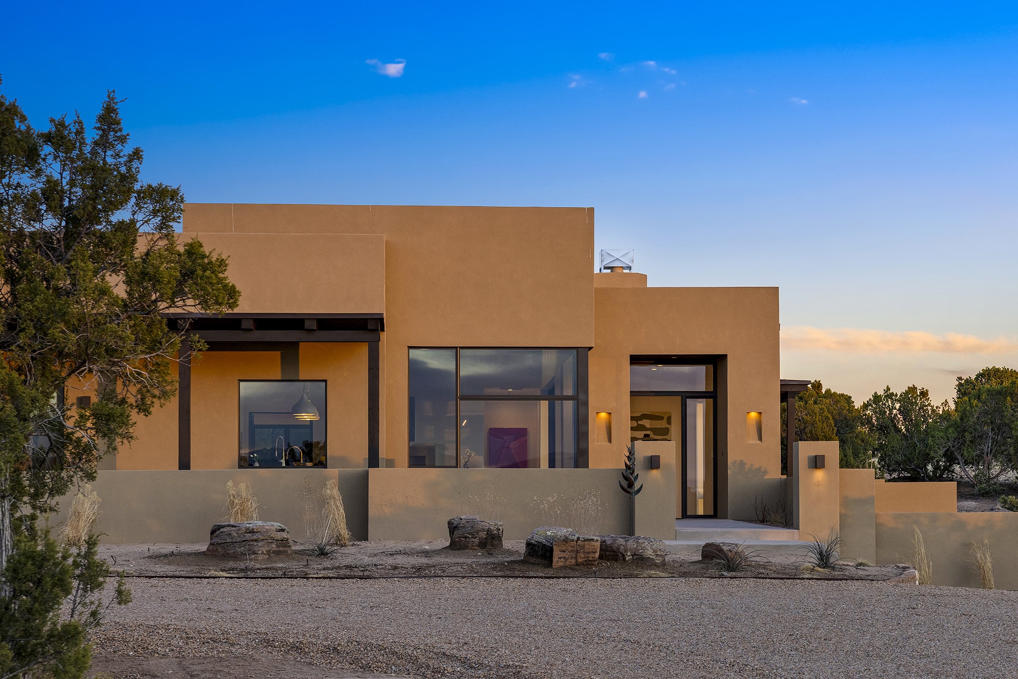 Ready to View! This new home has modern elegance and a supremely livable floor plan. Clean lines and high ceilings define the heart of the property while 20' pocketing multi slide doors lead you to the wonderful views. A single level masterpiece made for entertaining and a unique interior courtyard for contemplative relaxing are just part of this gracious, well designed floor plan. A gourmet kitchen boasts natural stone countertops, high end appliances, specialty lighting and custom wood shelving for the interior designer in you. The primary suite is spacious with an office/exercise space, heated floors in the bath and a luxurious soaking tub with its own private space. A media room, sound system, 3 bedrooms, 4 baths, and finished 3 car garage are just some of the exemplary features you will find in this sophisticated, smartly outfitted home.