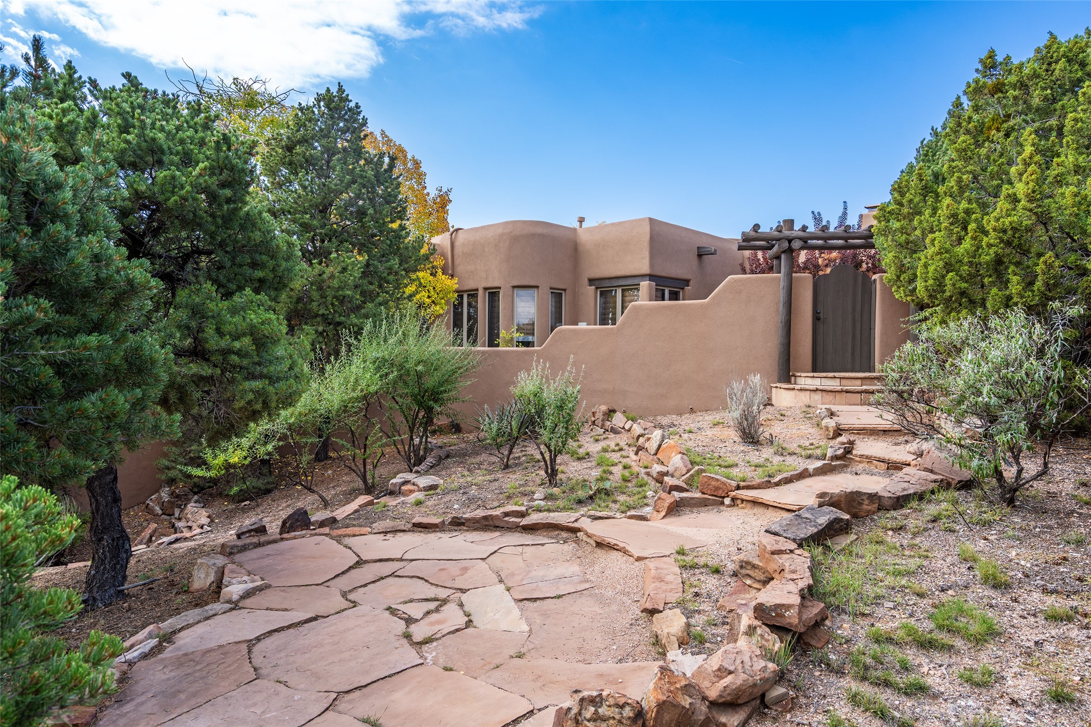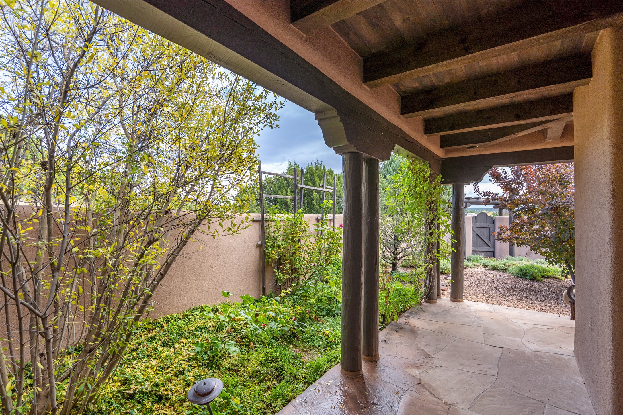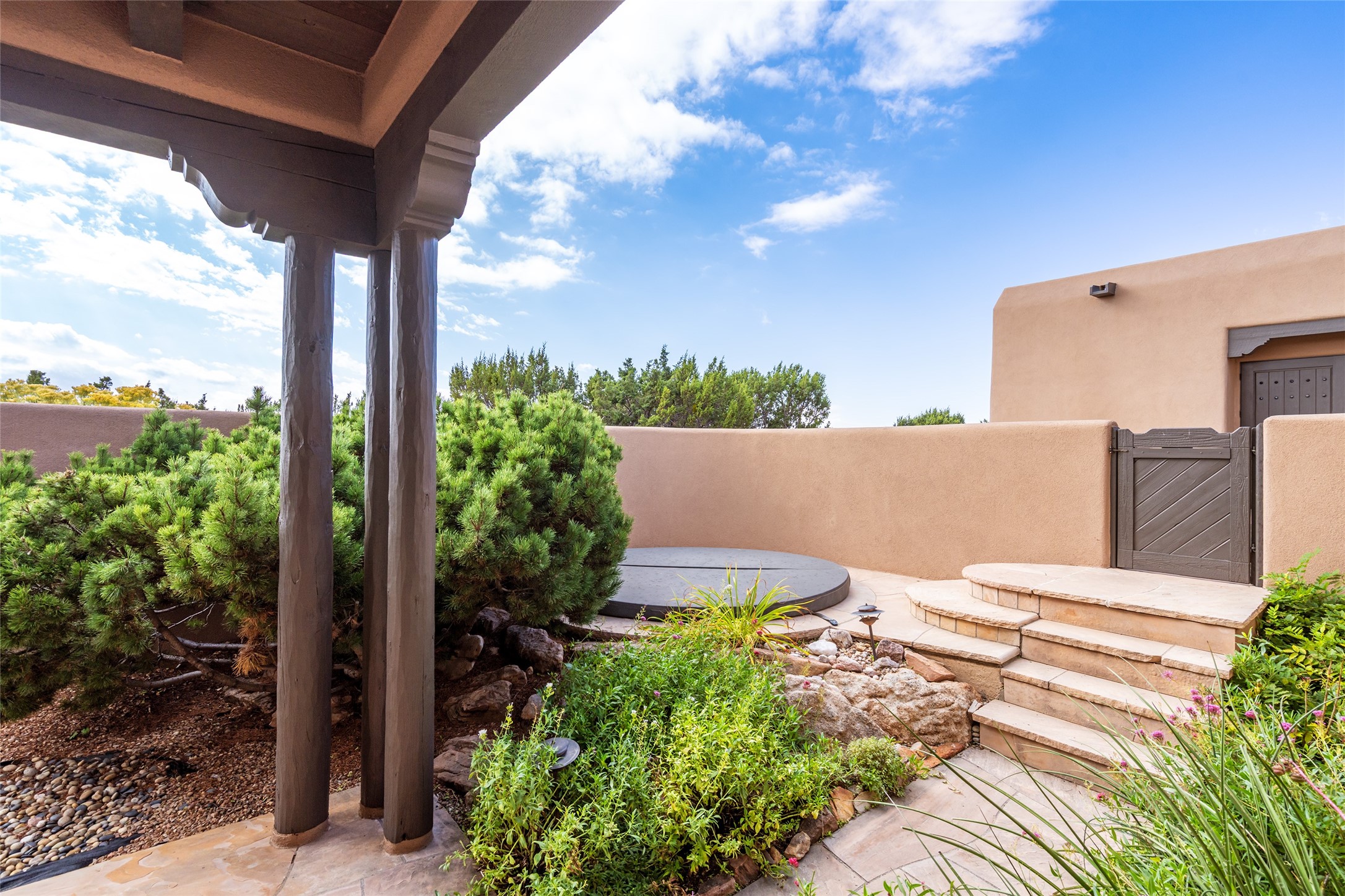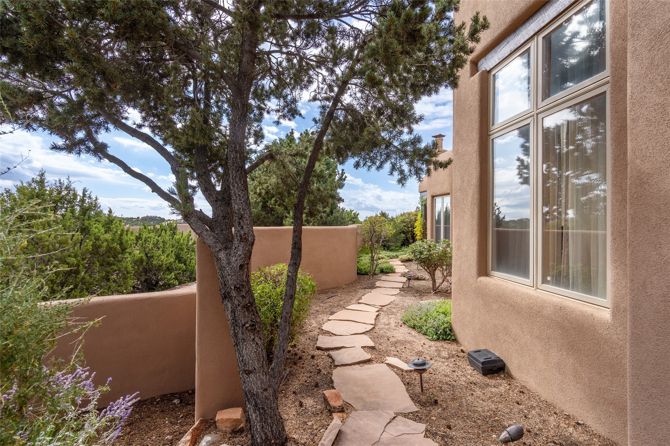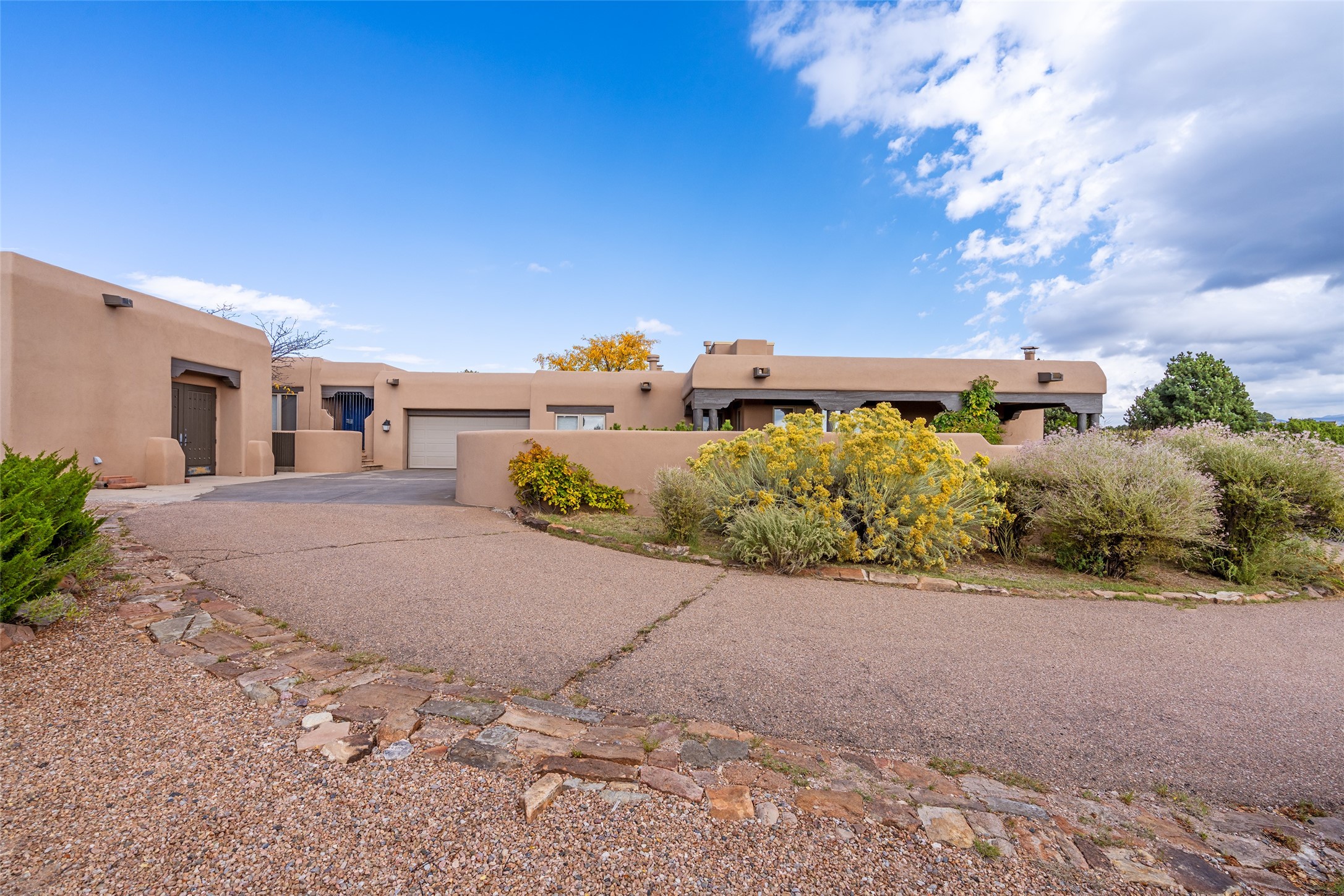Expansive two bedroom home with guest house and studio. Exceptional views from your front porch and broad portal and large private back yard area perfect for entertaining. 230 square foot lap pool and hot tub for relaxing or entertaining. The main house has a grand foyer ready for art work with a back door showcasing the rear portal and back yard. The large kitchen has plenty of cabinet space, a butlers pantry, quartz counter tops, Wolf 5 burner stove, Cove Dishwasher, Subzero refrigerator, and a cozy banco/breakfast nook offset by a kiva fire place. Adjacent to the kitchen is a dining room that can easily seat 8 with nice views into the back courtyard and front yard. Down two steps past the office and large great room with fireplace to the massive main suite, full bathroom, soaking tub, two walk-in closets, sitting areas and easy access to the 8' hot tub. Guest house has a full kitchen and full bath. Detached studio ready for your endeavors. 2025 roof update with 5 year limited warranty on labor and materials. Must see this gem. Set up a showing today.