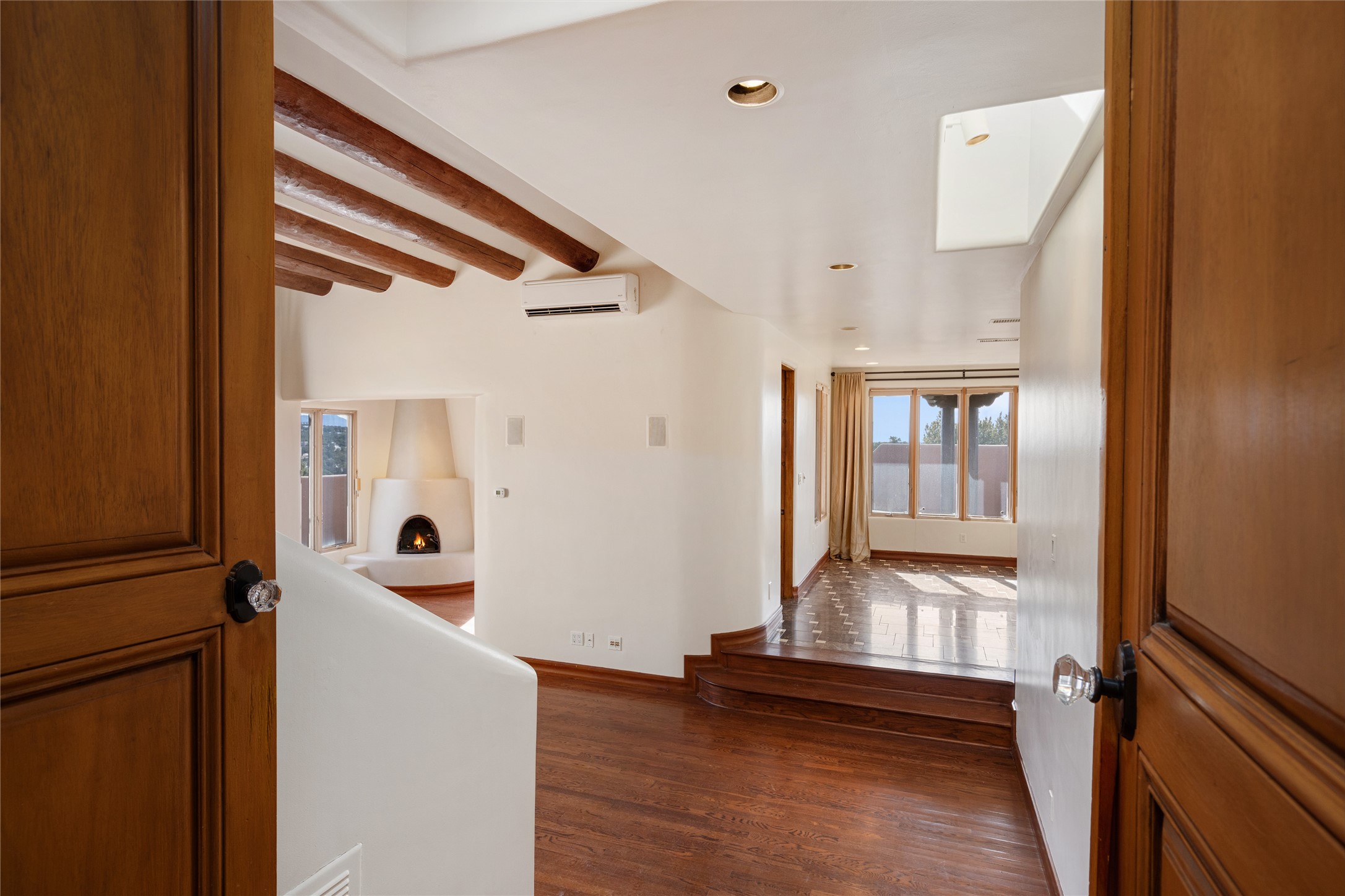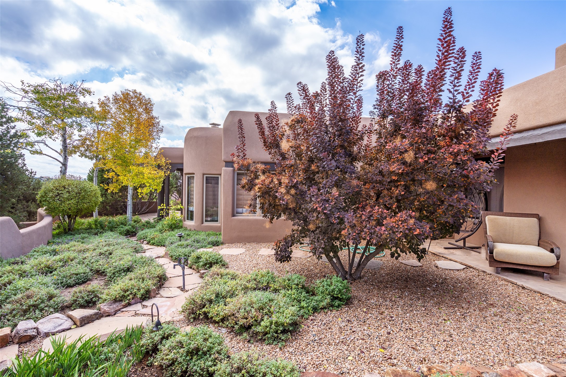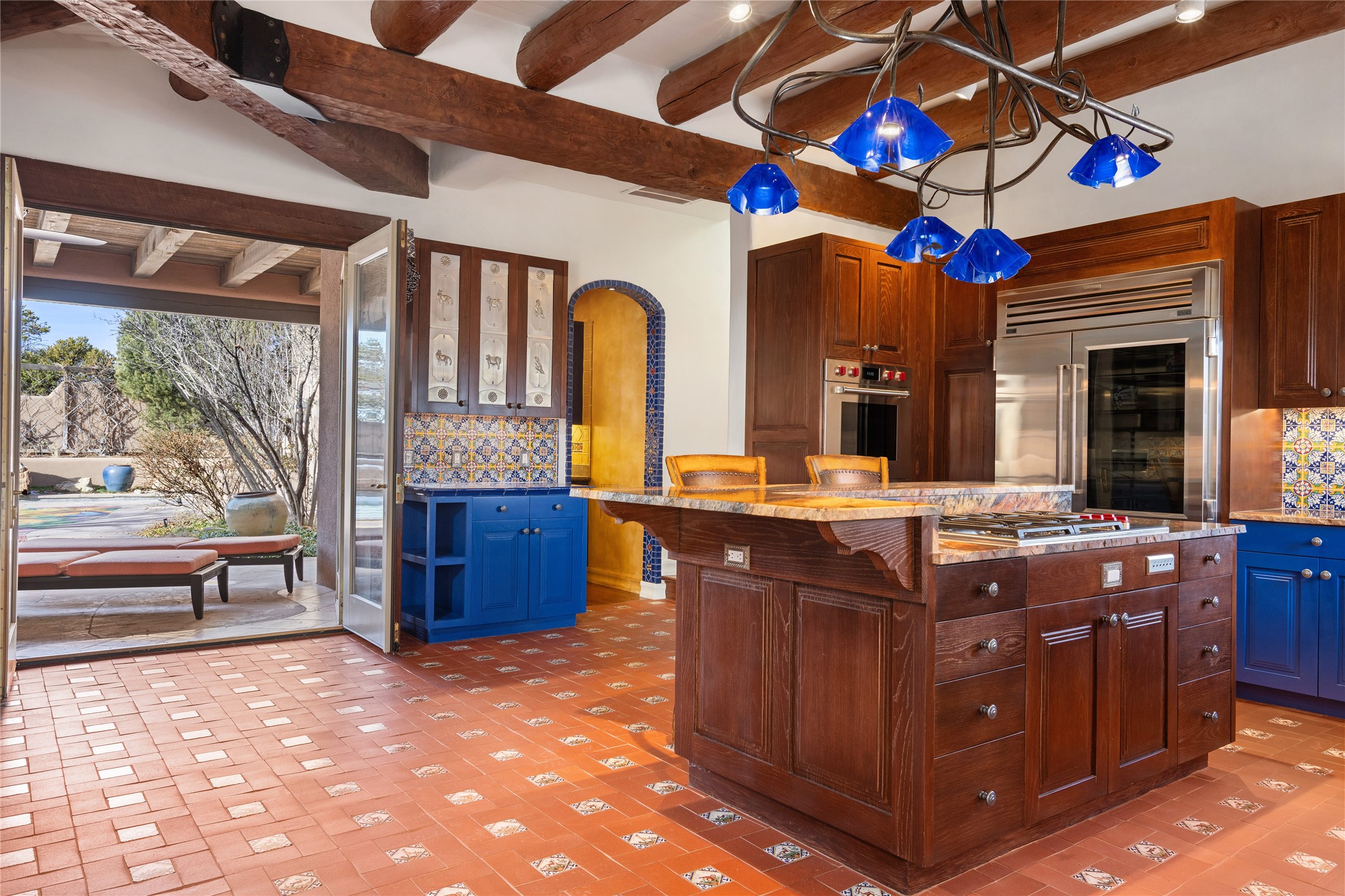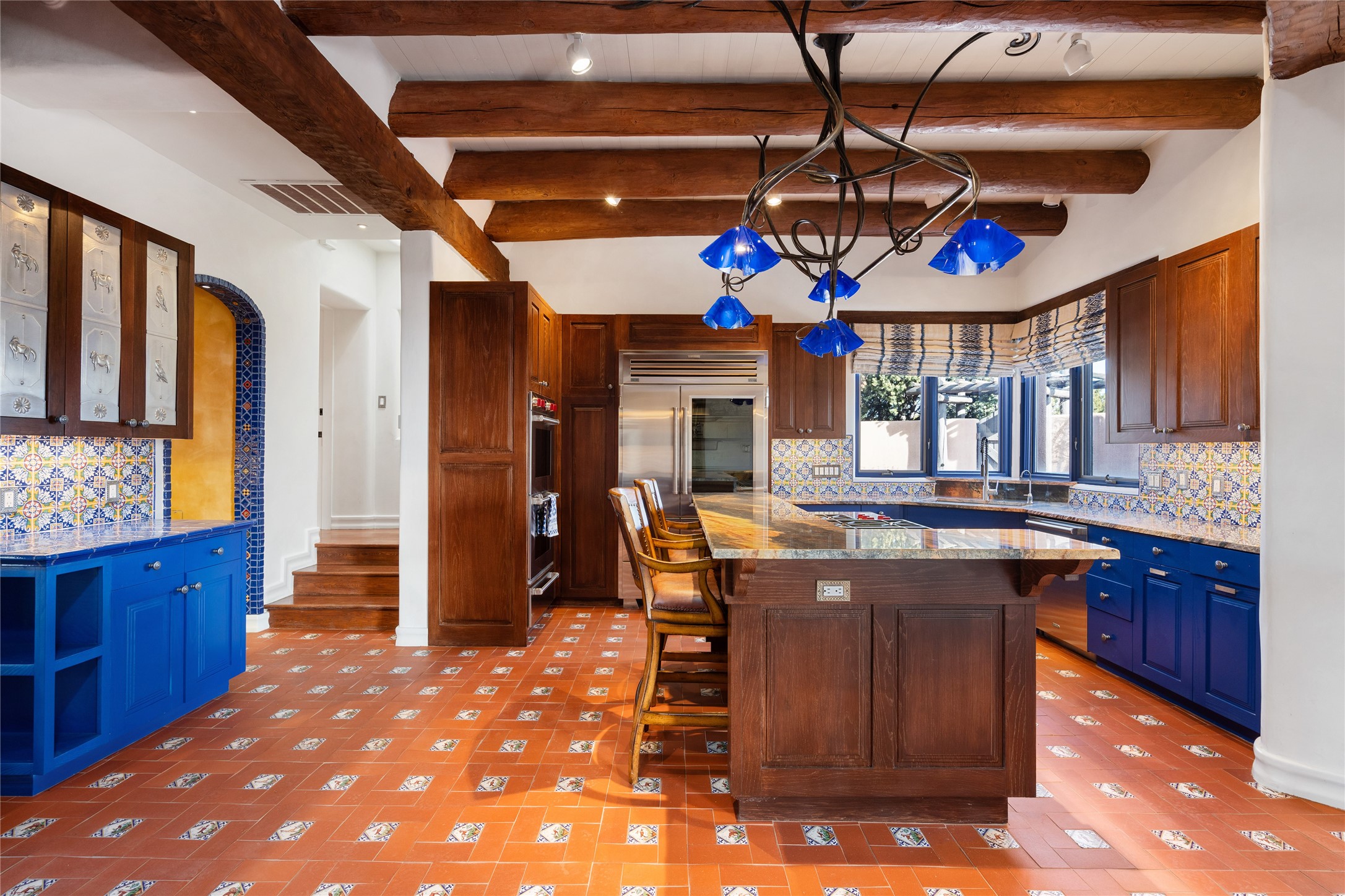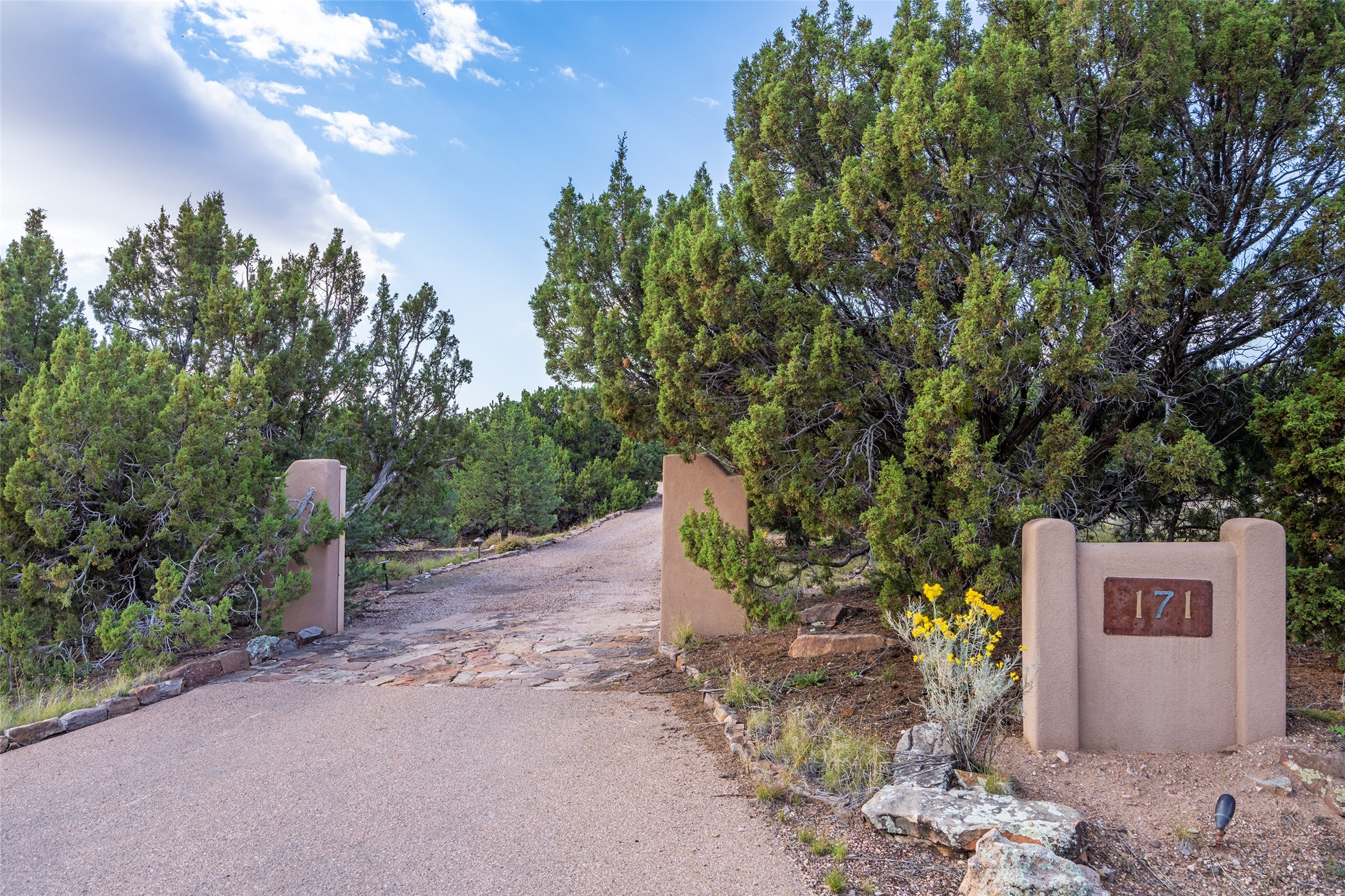 Expansive two bedroom home with guest house and studio. Exceptional views from your front porch and broad portal and large private back yard area perfect for entertaining. 230 square foot lap pool and hot tub for relaxing or entertaining. The main house has a grand foyer ready for art work with a back door showcasing the rear portal and back yard. The large kitchen has plenty of cabinet space, a butlers pantry, quartz counter tops, Wolf 5 burner stove, Cove Dishwasher, Subzero refrigerator, and a cozy banco/breakfast nook offset by a kiva fire place. Adjacent to the kitchen is a dining room that can easily seat 8 with nice views into the back courtyard and front yard. Down two steps past the office and large great room with fireplace to the massive main suite, full bathroom, soaking tub, two walk-in closets, sitting areas and easy access to the 8' hot tub. Guest house has a full kitchen and full bath. Detached studio ready for your endeavors. 2025 roof update with 5 year limited warranty on labor and materials. Must see this gem. Set up a showing today.