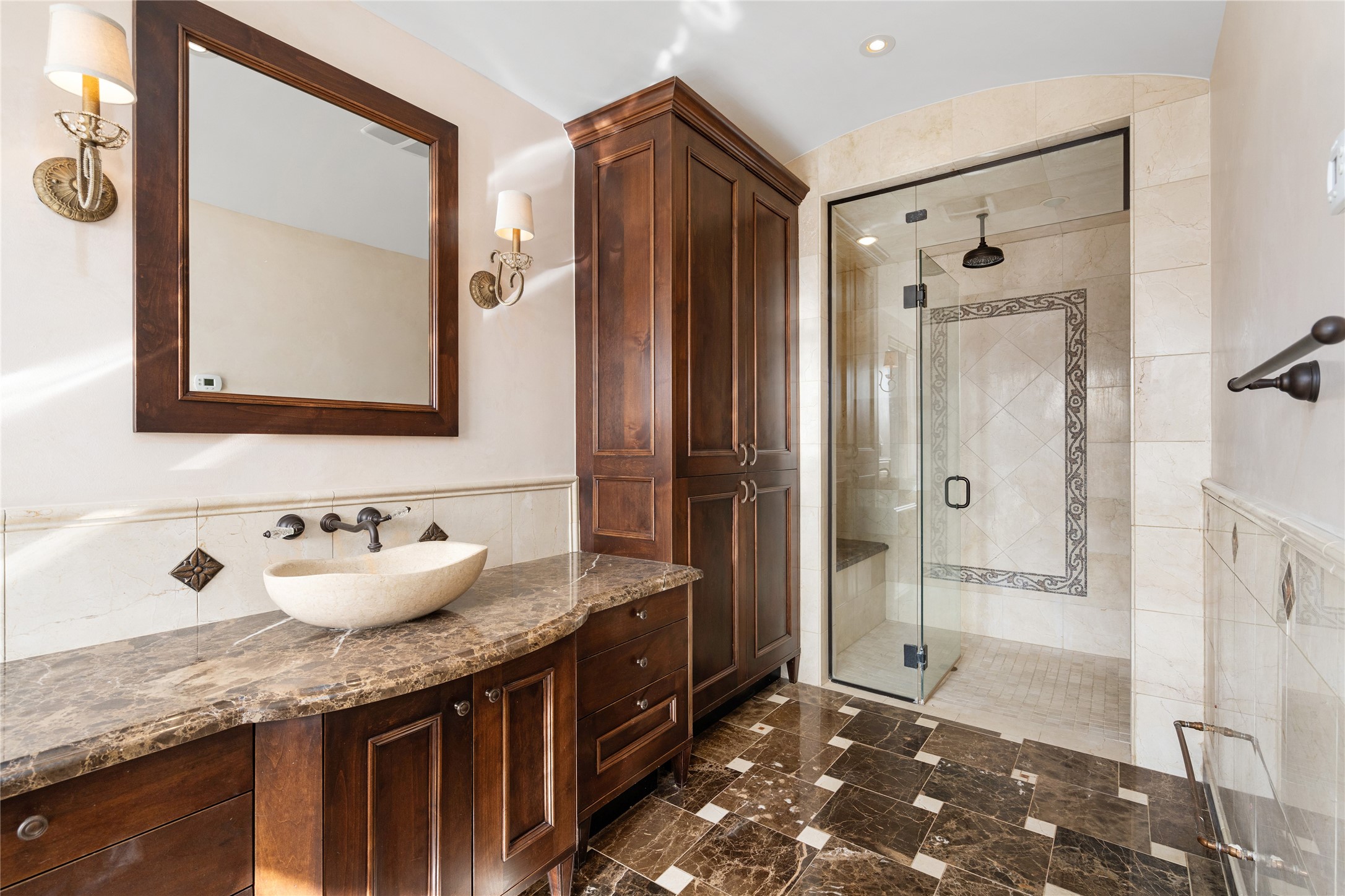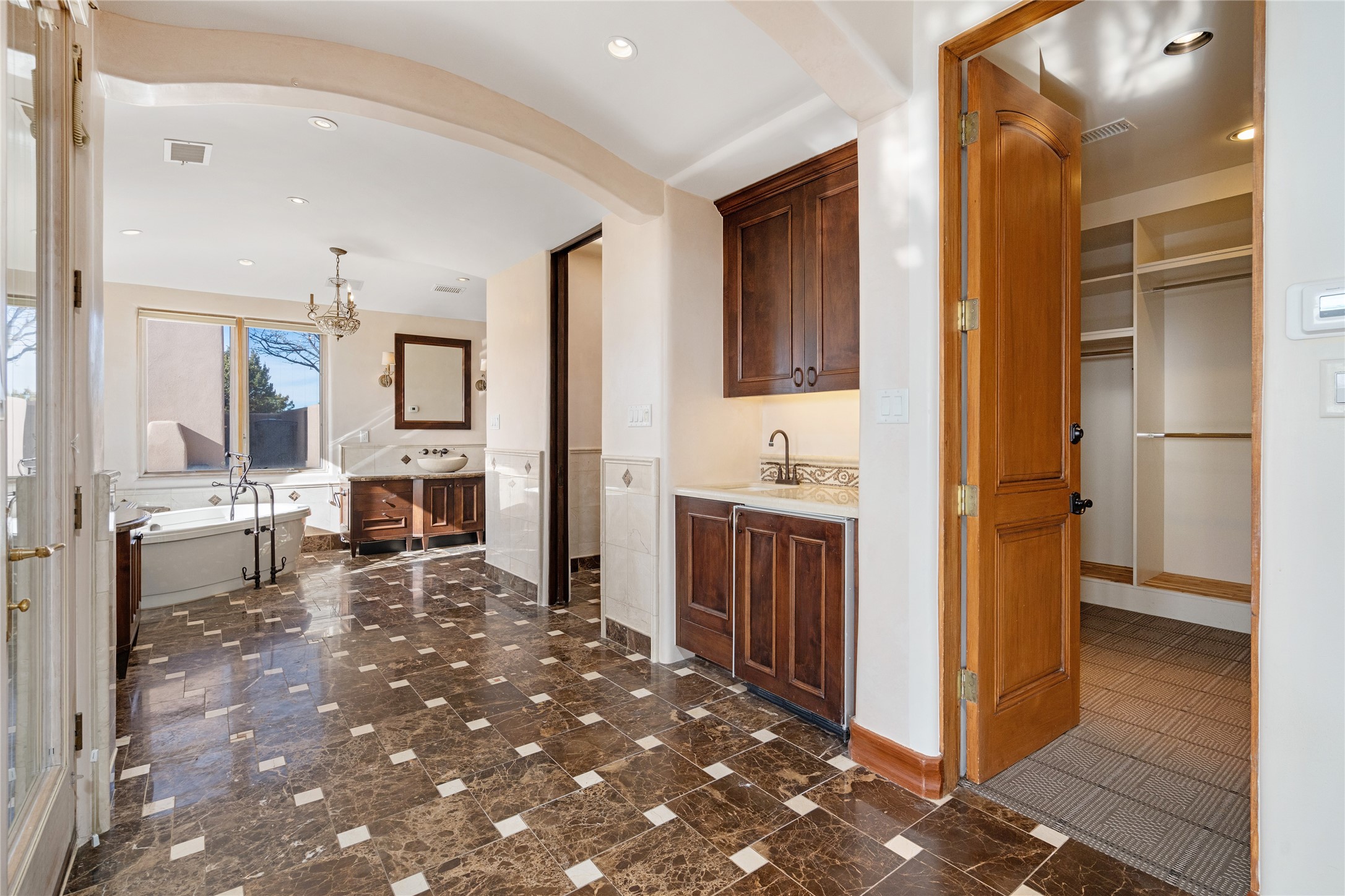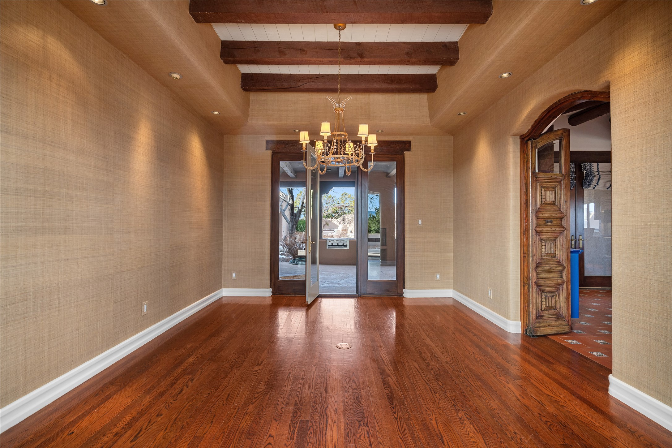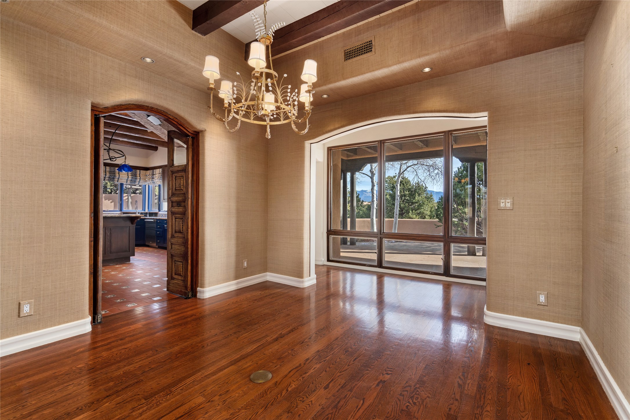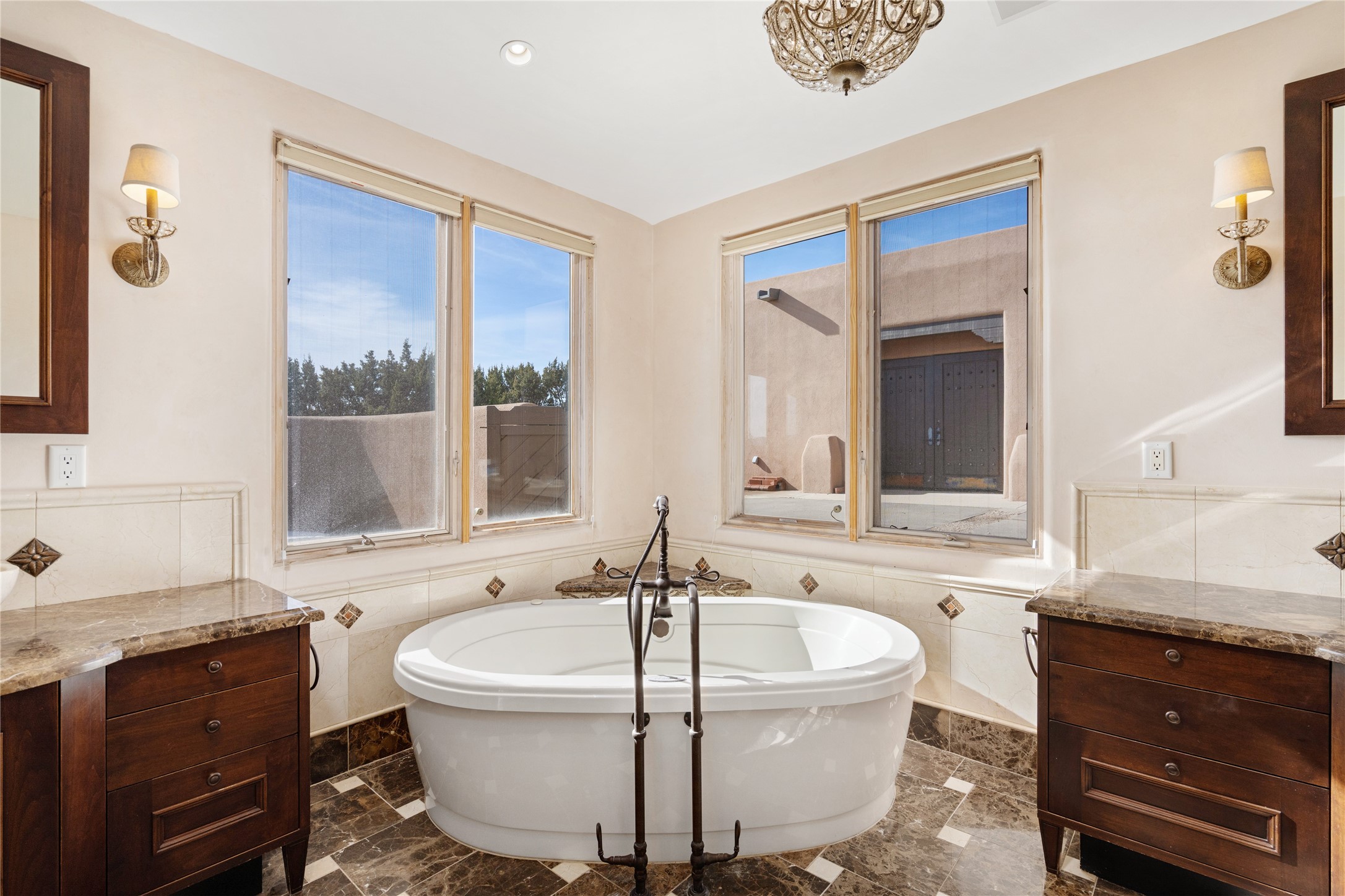 Expansive two bedroom home with guest house and studio. Exceptional views from your front porch and broad portal and large private back yard area perfect for entertaining. 230 square foot lap pool and hot tub for relaxing or entertaining. The main house has a grand foyer ready for art work with a back door showcasing the rear portal and back yard. The large kitchen has plenty of cabinet space, a butlers pantry, quartz counter tops, Wolf 5 burner stove, Cove Dishwasher, Subzero refrigerator, and a cozy banco/breakfast nook offset by a kiva fire place. Adjacent to the kitchen is a dining room that can easily seat 8 with nice views into the back courtyard and front yard. Down two steps past the office and large great room with fireplace to the massive main suite, full bathroom, soaking tub, two walk-in closets, sitting areas and easy access to the 8' hot tub. Guest house has a full kitchen and full bath. Detached studio ready for your endeavors. 2025 roof update with 5 year limited warranty on labor and materials. Must see this gem. Set up a showing today.