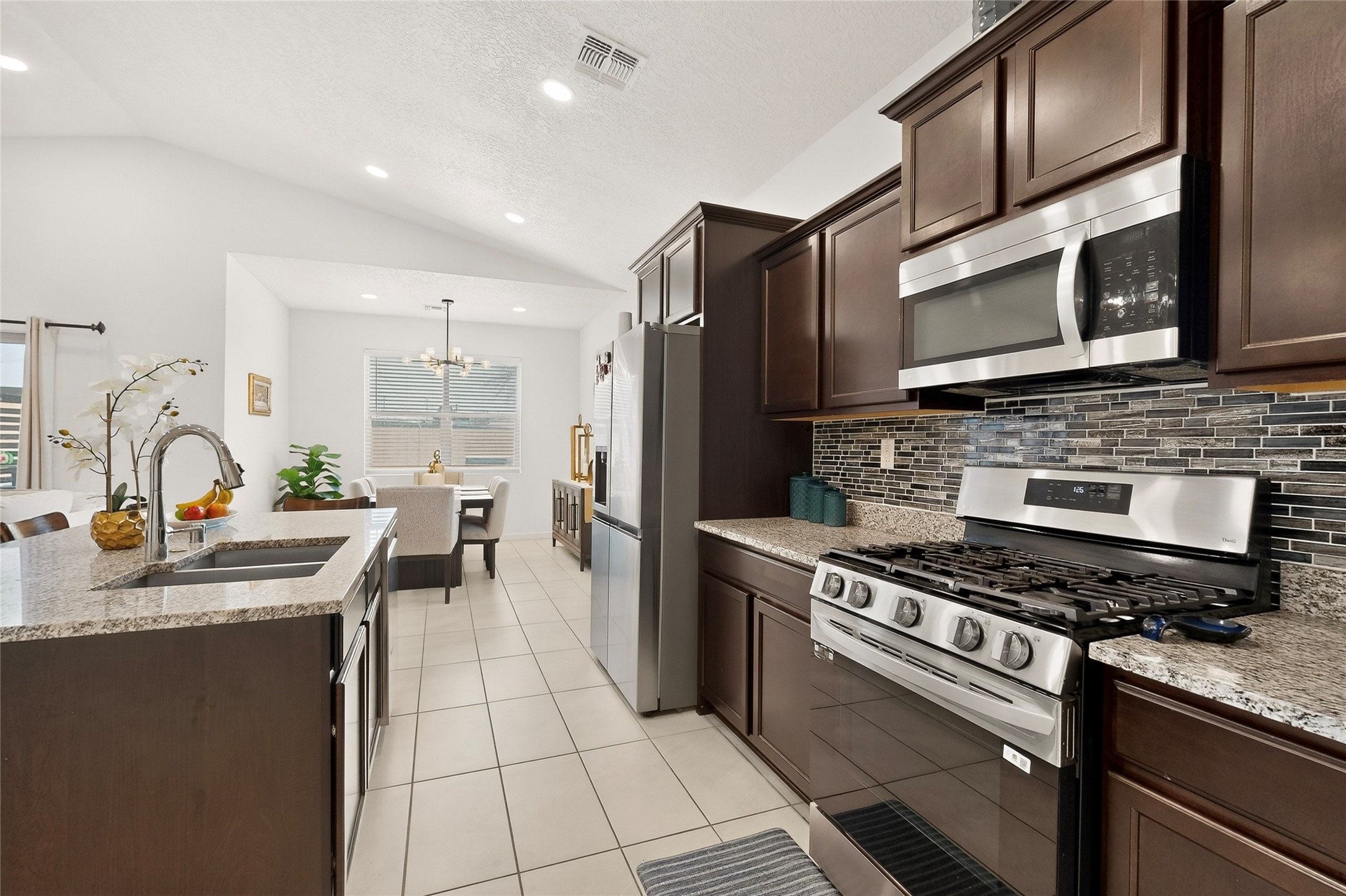 Almost-new, beautiful three-bedroom, two full-bath home featuring a gorgeous kitchen with an eye-catching backsplash and a spacious dining area perfect for gatherings. The primary suite offers a luxurious bathroom with both a soaking tub and a separate shower.This inviting home is tucked away on a cul-de-sac, making it an ideal family retreat. The living room showcases stunning stacked stone, ambient lighting, and a cozy fireplace, creating a warm and welcoming atmosphere. Enjoy a large laundry room and an open floor plan designed for modern living.Step outside to a concrete patio with gazebo and low-maintenance zero-scaped yard, perfect for relaxing or entertaining. Additional features include a tankless water heater and a finished garage.