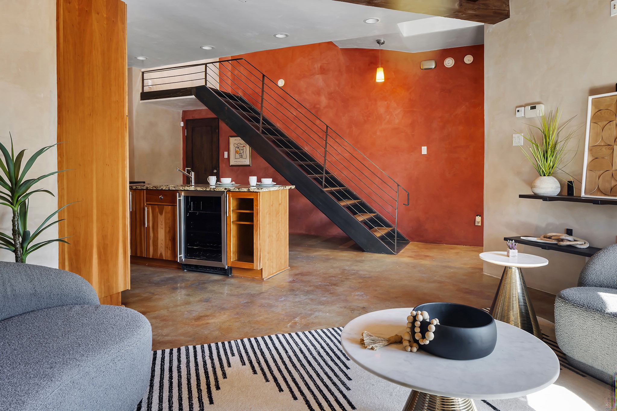 Rarely does a Downtown Santa Fe compound offer this level of versatility, character, and convenience. Just moments from the Historic Santa Fe Plaza, this exceptional property includes a 3-bedroom, 3-bath main residence, an attached 2-bedroom, 2-bath casita, and a coveted 2-car garage with oversized storage space -- a true luxury in the downtown area. The main residence offers a contemporary Pueblo feel with stained concrete floors, kiva fireplaces, and all bedrooms upstairs. A spacious, partially covered view deck with mountain vistas, city lights, sunset skies, and gardening beds creates an ideal setting for entertaining or unwinding. The separately metered casita, with high ceilings and generous space, is perfect for guests, extended family, or rental income. Close to renowned restaurants, art galleries, and boutique shopping, this rare in-town property is well suited as a primary residence, second home, or investment opportunity. Potential assumable financing with a 3.5% interest rate further enhances the offering.