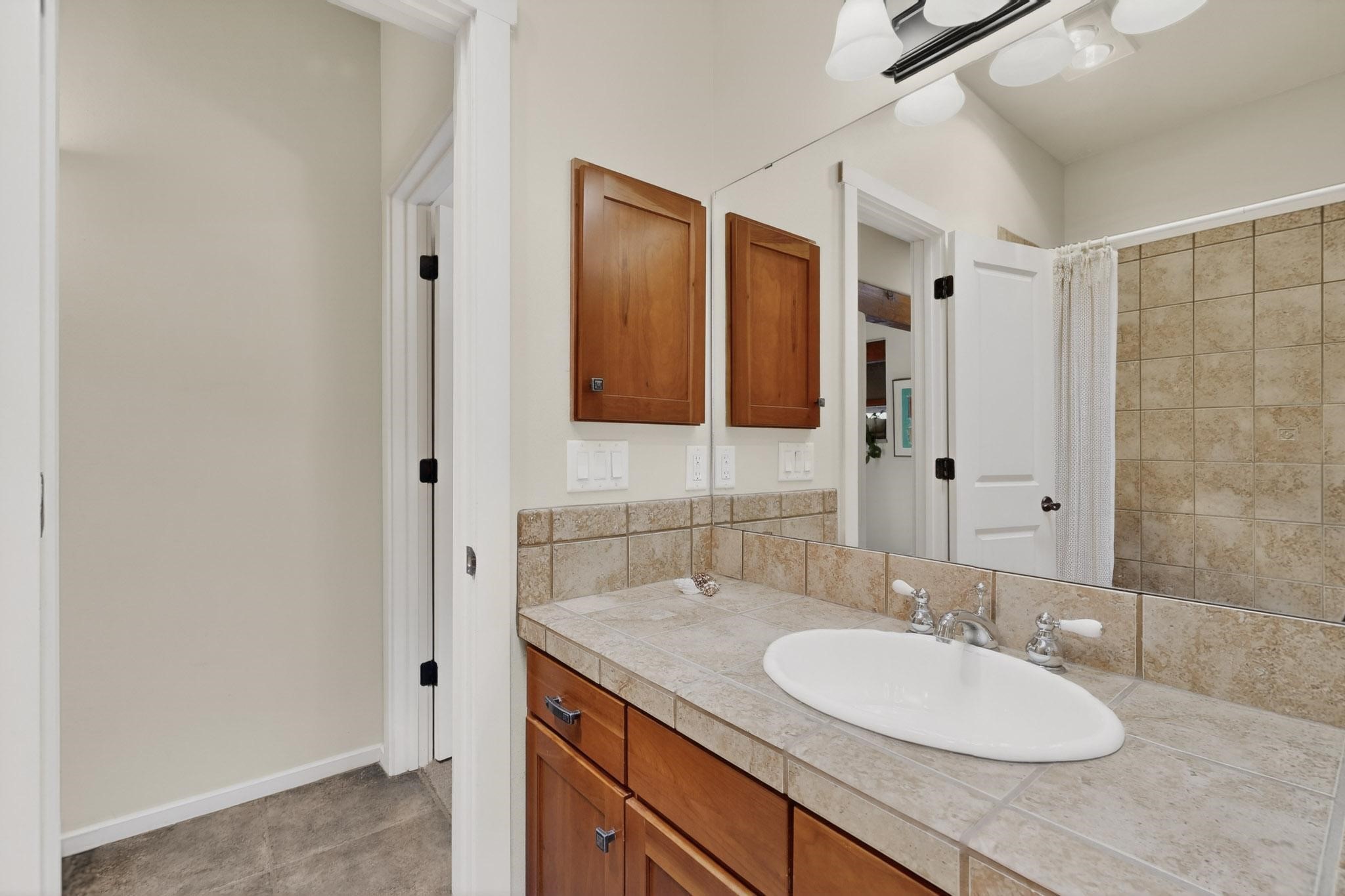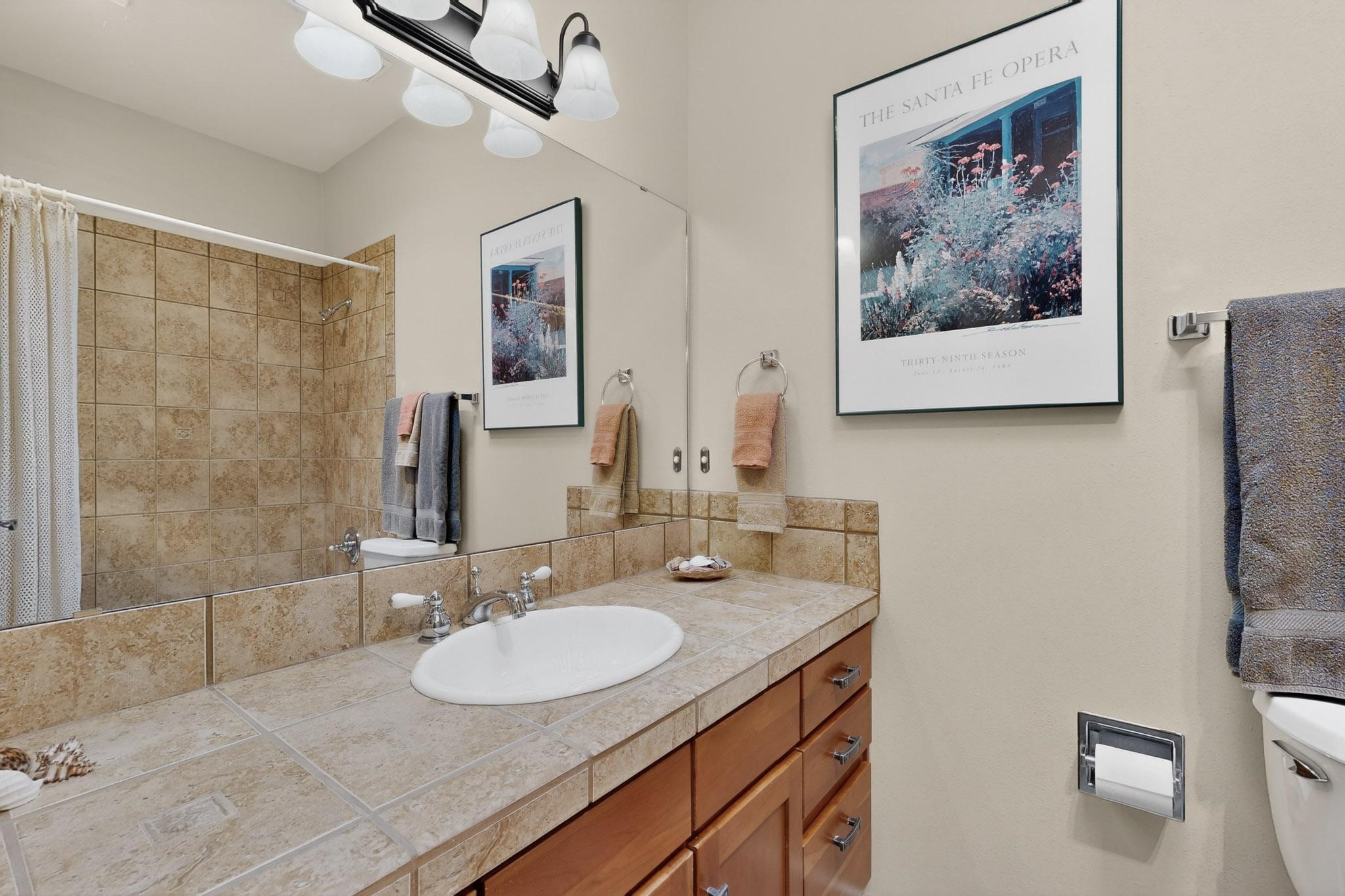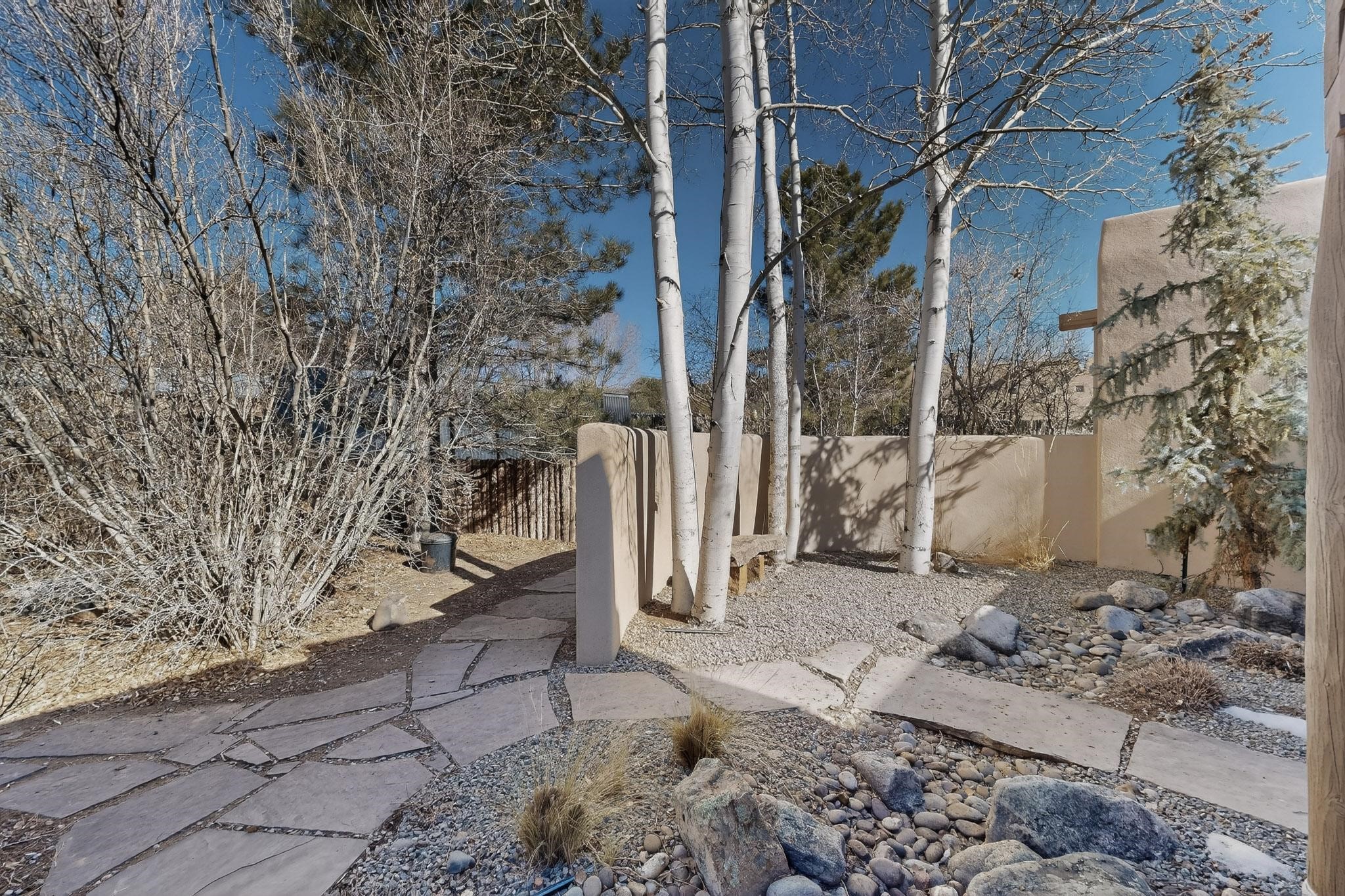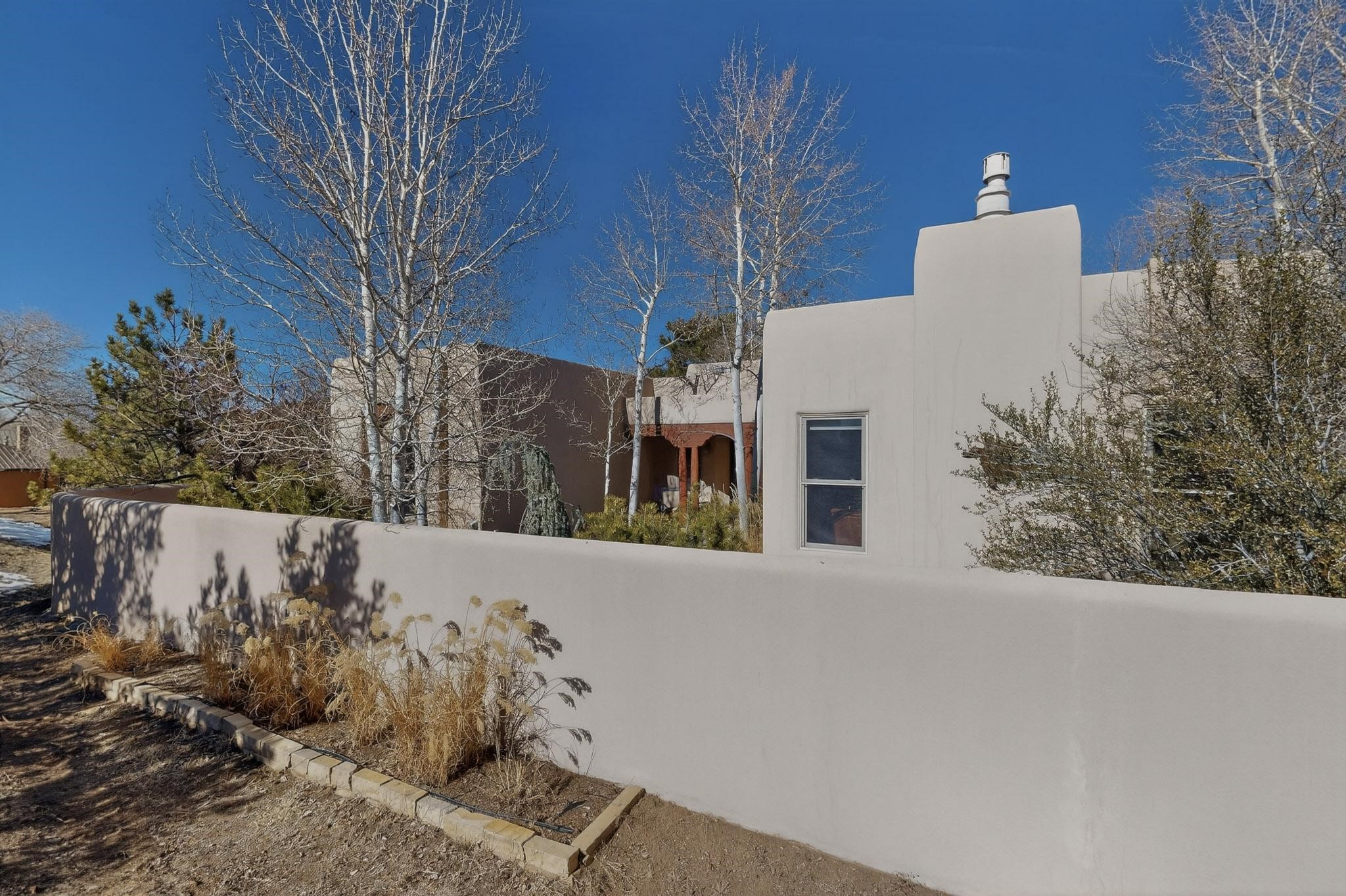 This 2003 Chapman built in City home has so many features to recommend! It is a balanced and lovely home set on 1.6 acres with open walkways and terracing on both south and north facades with stewarded irrigation and landscaping surrounds. City water as well as a cistern support gardening and a meaningful, open landscape. The solar footprint provides sustainable energy on a daily basis. This is an environmentally-friendly property that keeps utility bills to a minimum. The conforming style inside is a three bedroom, two bathroom home encompassing 2,508 sq feet. There are multiple closets throughout for storage needs. With an additional dining room off the Living Room, a large TV room and fireplace enhanced entertaining zone adjacent to the kitchen, a smaller breakfast/ lunch nook that opens to gardens and a fountain outside. The garage space at the east end addresses 2 car parking and has an additional work room for handyman tools, storage and craft considerations! Just wait until you see this abundance and the privacy it embraces, it is truly special. The exterior acreage is fenced in portions, wonderful for dog lovers, and the access to the Sol Y Lomas hiking roadways/trails is a big bonus too! The visible solar presence includes a 14 panel solar array to the west and eight standing vertical south facing solar panels attached to north fence which collectively are owned and service the house. Separate lists of pertinent house appliances as well as further details on the solar footprint can be reviewed in the associated docs of this Listing. The Listing price for this residence is $1 million which likely will celebrate affordability and possibly avoid today's High End Excise Tax!