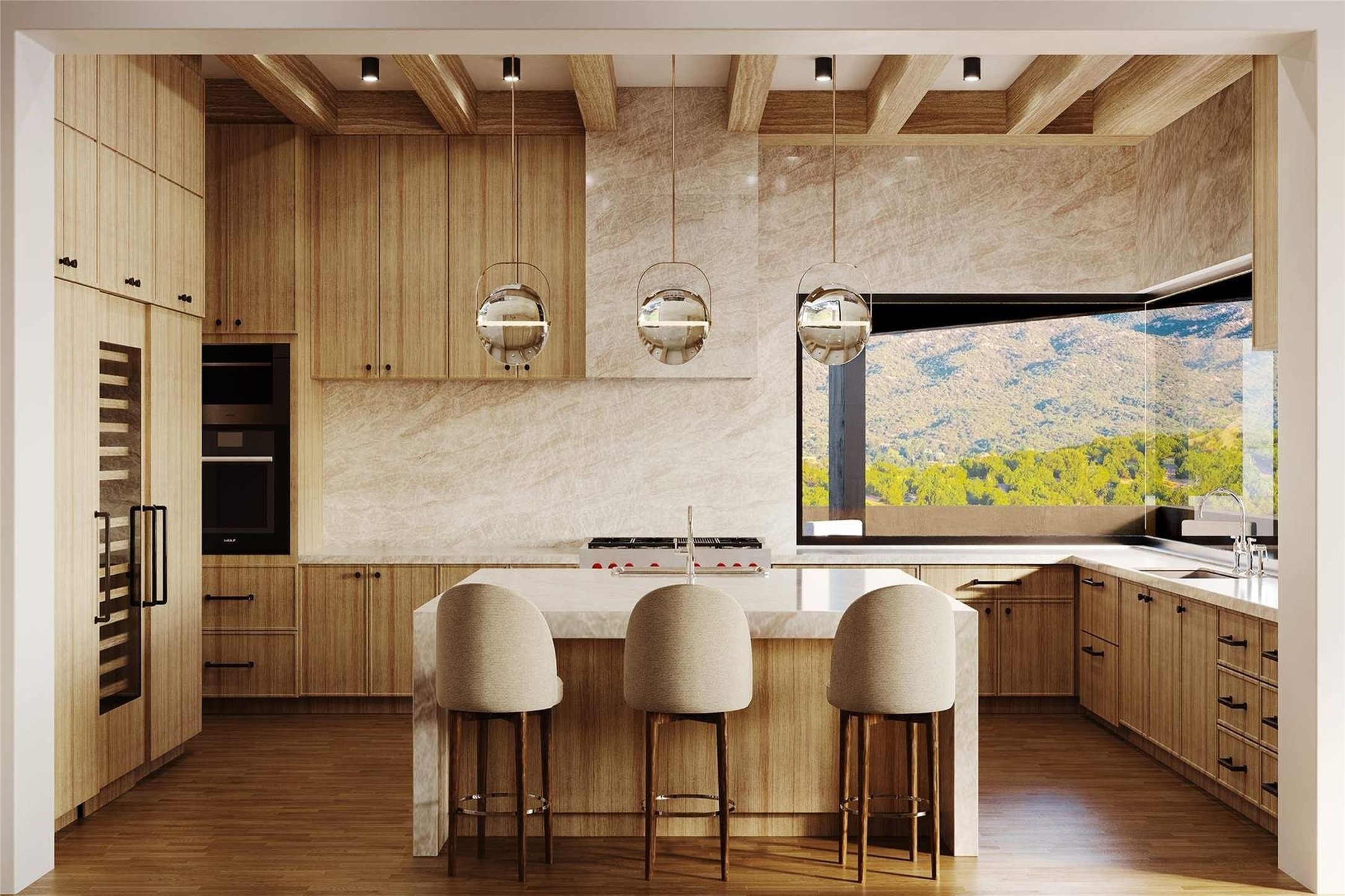 Experience the Ultimate Santa Fe lifestyle. Ready to build, with permit in hand, this To-Be-Built custom masterpiece by the award-winning Acacia Builders, excites with front row stunning views of the Sangre De Cristo Mountain. Located within the famed community of Monte Sereno, minutes to the Santa Fe Plaza and the world-renown Santa Fe Opera, this Monte Sereno home is one of the most captivating future residences in all of Santa Fe. Designed by renowned Santa Fe architect, Rad Acton, this stunning one-level home on a one-acre lot, offers an exquisite and rare four-bedroom floor plan tailored for indoor and outdoor living. The thoughtful design seamlessly flows and opens to over 1300 square feet of covered portals with a grilling station and an OPTIONAL pool, for both relaxation and the ultimate outdoor living experience. The walls of glass allow for the daily viewing of seasonal colors of the Aspen trees on the mountainside, the legendary sunsets and moonrises or step outside for stargazing under the dark skies of New Mexico. The smart design features a grand entertaining space with open dining and kitchen, a three-car garage, an office, four spacious bedroom suites and a second living room in the guest wing. The heart of the home is a gourmet kitchen with a corner window that Wows with a view! The chef in the household will be proud to host with a Wolf/Sub-Zero appliance package, a large island and full butler's pantry. The private primary retreat delights with expansive mountain views, a modern gas fireplace with concrete surround seating, and a sun-filled spa bathroom with a spacious walk-in closet. Additional exceptional features of this transitional style home with Santa Fe touches, include wood flooring, creamy plaster walls, wood beamed ceilings and multiple cozy fireplaces. With a building permit in place, the new owner can start construction quickly and save valuable time to focus on the fun of choosing colors & finishes on their dream home. All renderings are shown with furniture, art, lighting and rugs that can be purchased or modified for your lifestyle with the interior design team at Reverie3D who can offer a turn key move-in ready experience. The pool is not included in the listing price, though possible as an additional upgrade.