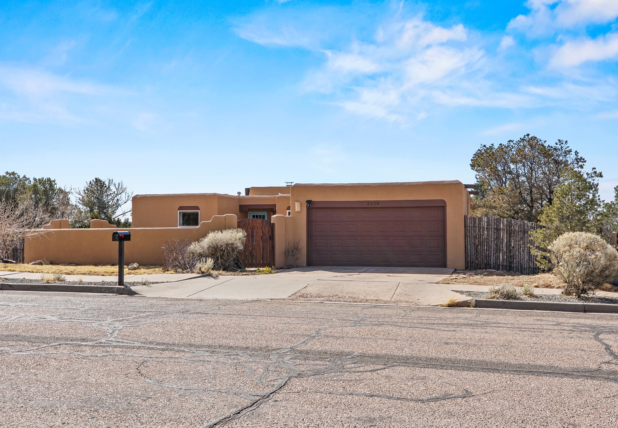 This beautifully renovated 2,025 sq. ft. home in Devargas Heights, just off Old Pecos Trail, is warm, inviting, and exceptionally versatile. Offering 2 bedrooms, 2 full baths, a dedicated office/bonus room within the main house, and a separate 140 sq. ft. detached studio currently used as an office, the layout supports today's flexible lifestyles with ease.The living room is filled with natural light, accented by classic vigas and a charming corner kiva fireplace. The kitchen features beautifully tiled countertops and white cabinetry, and the open-concept design seamlessly connects the kitchen, dining, and living areas. From the dining room, enjoy lovely views of Sun Mountain. An unexpected bonus is the approximately 300 sq. ft. west-facing secondary living area--bathed in light and perfect for relaxing, reading, or entertaining.The primary bath has been completely reimagined with double vanities, a glass-enclosed walk-in shower, and a sculptural vessel soaking tub. The guest bedroom and completely renovated guest bath are thoughtfully separated from the primary suite and reflect the same level of care and quality in the renovation. Outside, the large fenced backyard has beautifully manicured pions, an apricot tree, a large spruce tree and feels private and serene. A deep covered portal extends the living space outdoors, while a winding path leads to the detached studio, adding a touch of whimsy to this already special property.Located in the coveted Devargas Heights neighborhood and within the Wood Gormley school district, this renovated home offers comfort, flexibility, and exceptional value.