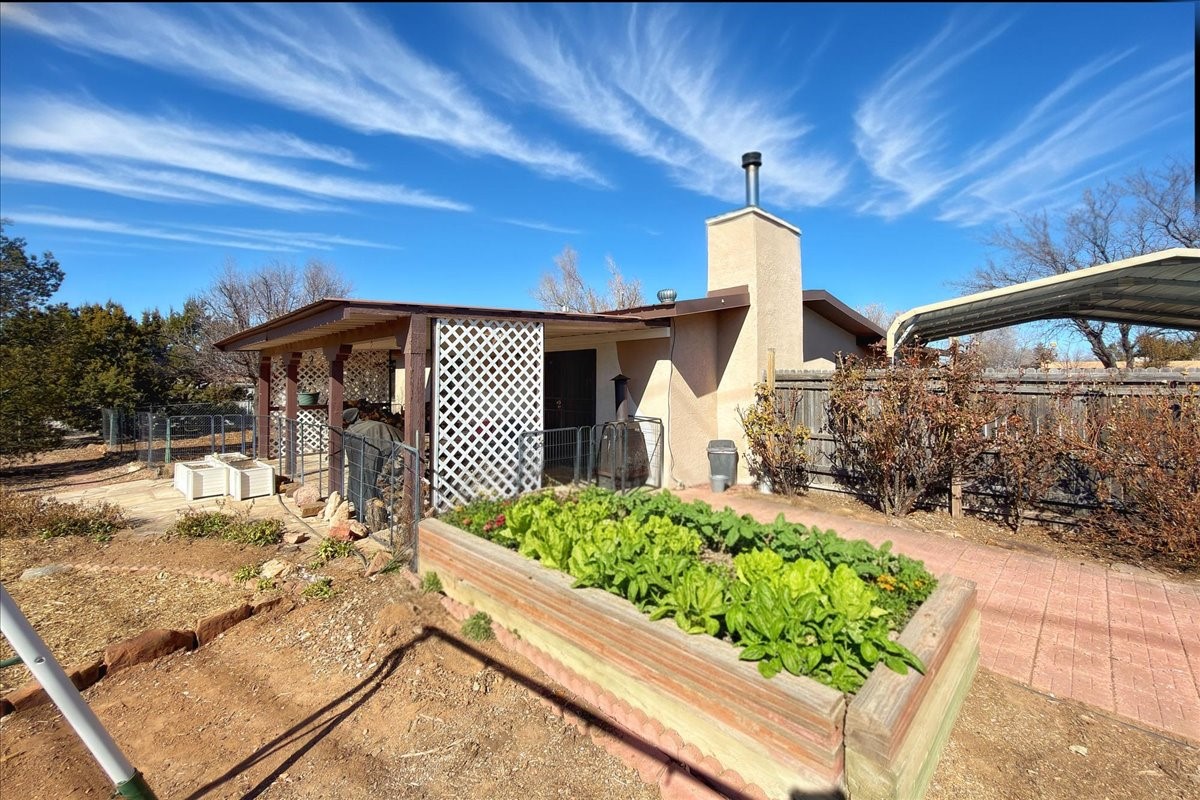 A rare value in Vista del Prado, this centrally located gem offers exceptional square footage on a generous in-town lot on a cul-de-sac. With three bedrooms, two baths, an office, and a versatile garage conversion currently used as a den, the flexible floor plan easily adapts to a variety of lifestyles--whether you envision a hobby room, art studio, library, or additional living space.The updated kitchen features granite countertops and solid-wood cabinetry, and the home has been well cared for with the comfort of central air conditioning and a durable propanel roof. Outdoors, the backyard includes a covered patio, ample space for an expansive garden, and two storage sheds for added convenience. There's also a lovely walled courtyard in the front that's perfect for pets or sitting an enjoying a cup of coffee.Ideally situated near shopping, the new Zia Rail Runner station, and the Genoveva Chavez Community Center, with the Santa Fe Plaza just a 15-minute drive away, this home offers an exceptional combination of space, location, and value. Central, spacious, and full of possibility--this is a special opportunity not to be missed.