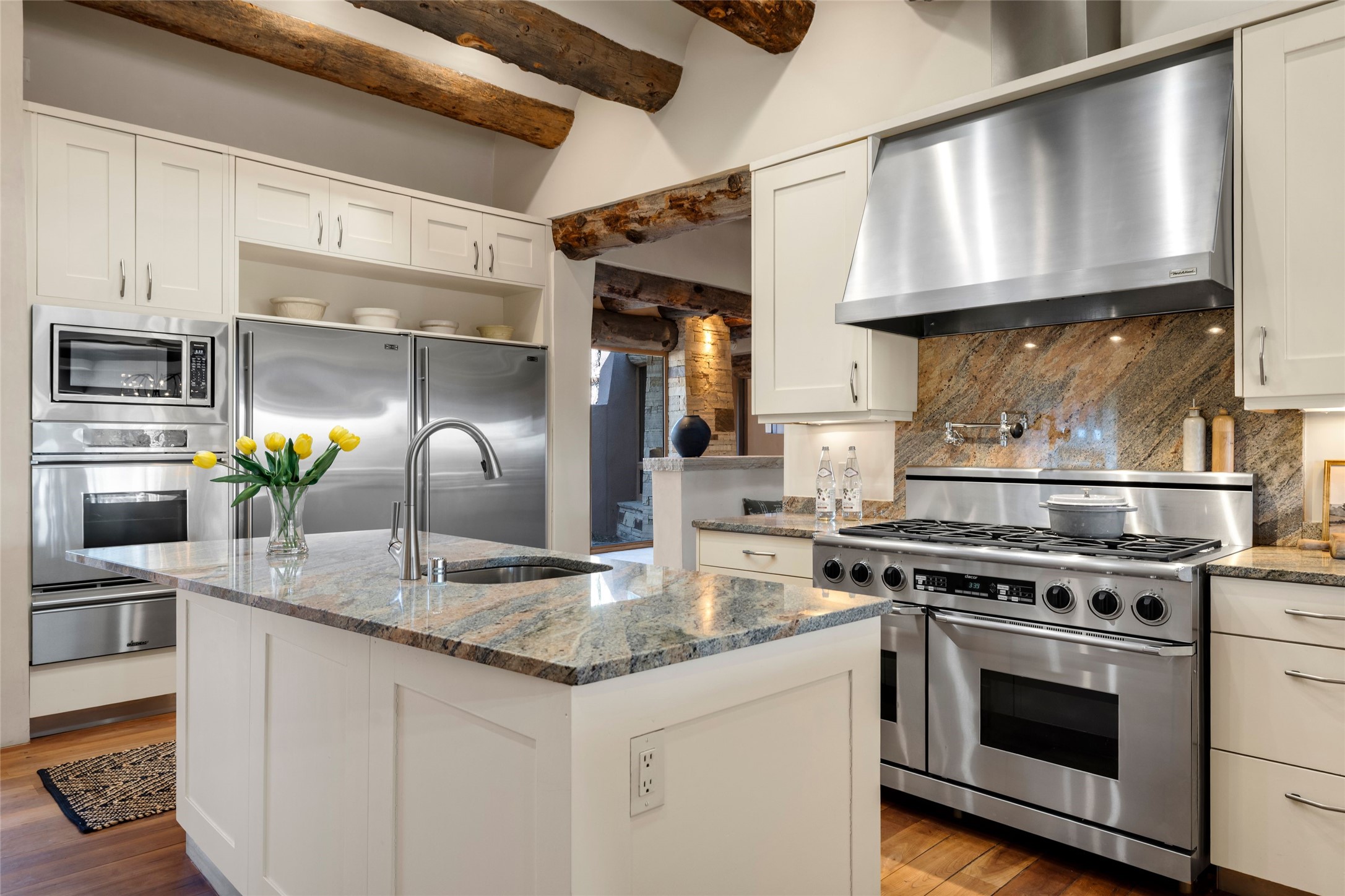 • Interior FeaturesBeamed Ceilings, Interior Steps, Central Vacuum