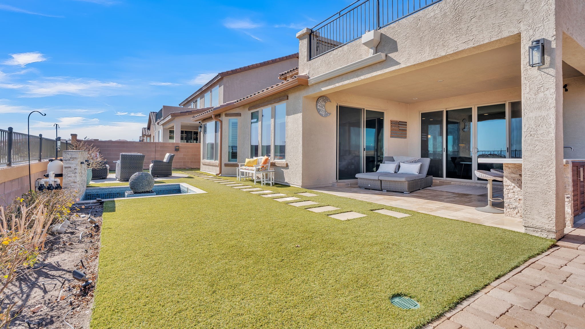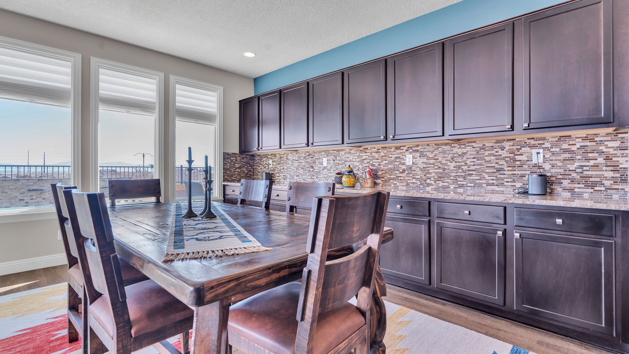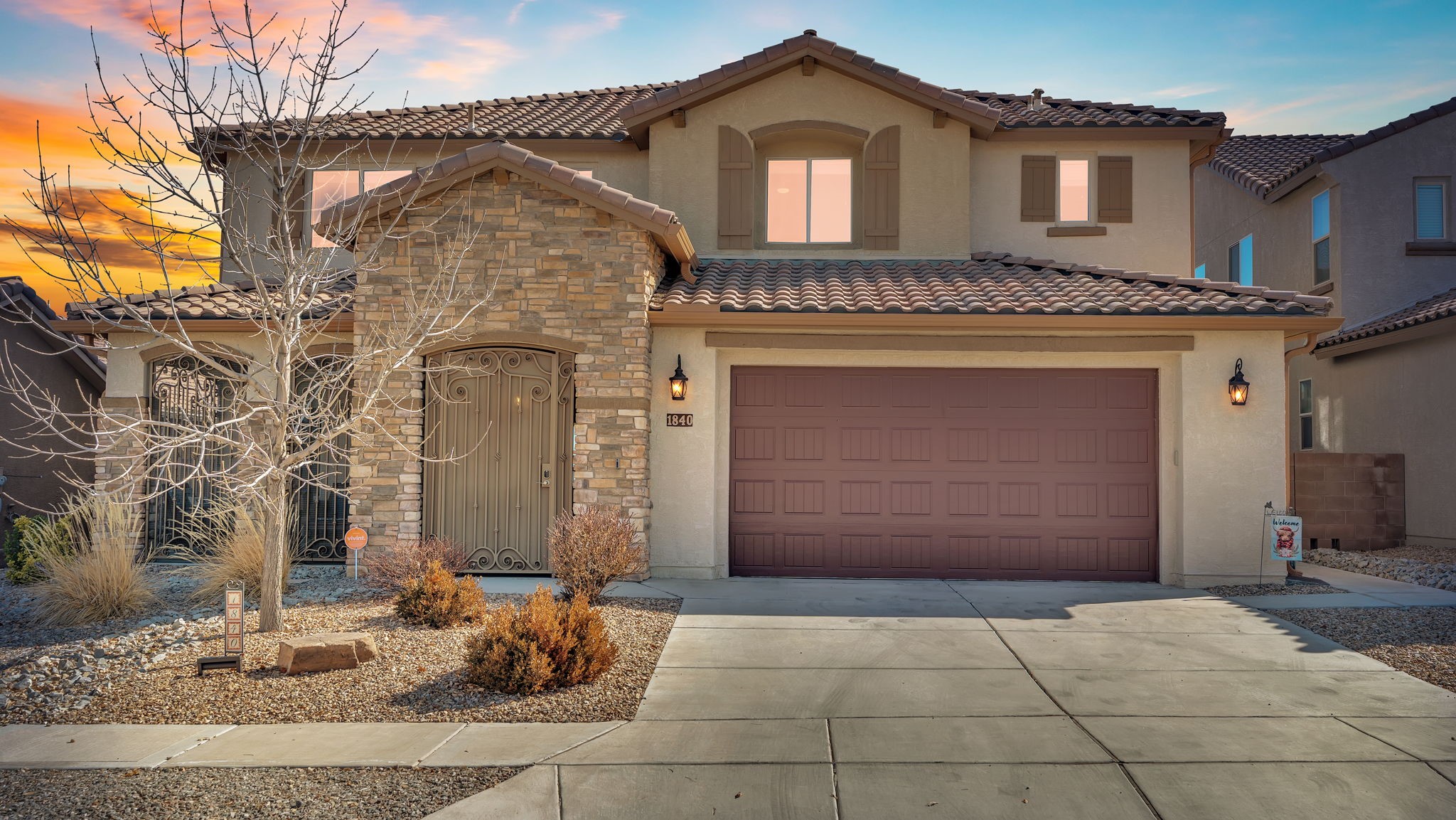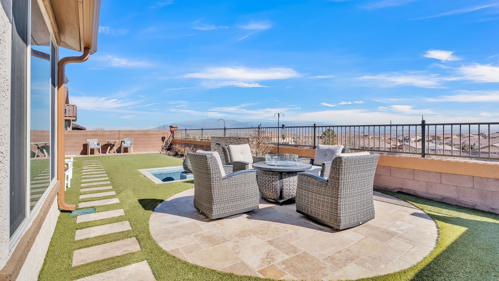 Located in the coveted Manors at Mirehaven community, this exceptional 5-bedroom, 4-bath home offers 4,249 sq ft of thoughtfully designed living space with sweeping views of both the Sandias and Manzanos. Designed for comfort and effortless entertaining, the layout features three large living areas, a private office/exercise flex room with French doors and an oversized tandem finished garage. At the heart of the home, the chef's kitchen showcases stainless steel appliances, gas cooktop, double ovens, microwave, dishwasher, large seating island, live-edge granite countertops, a gorgeous designer backsplash and a vented hood. Just off the kitchen, the formal dining room offers generous space for gatherings, beautiful views, and its own built-in buffet with additional cabinetry-ideal for hosting and extra storage. Also off the kitchen is a convenient planning nook with granite desk and more cabinetry.A mudroom with a boot bench, coat hooks and storage baskets sits next to the utility room including the large-capacity Maytag washer and steam dryer for everyday convenience.The main-level primary suite features plantation shutters, mountain views, a spacious spa-like tiled shower and an oversized walk-in closet. Upstairs, four bedrooms each include walk-in closets, two with a Jack-and-Jill bath, plus a second double-sink hall bath. Two additional living areas and a private viewing deck with electronic room-darkening patio door shades complete the second floor.Premium upgrades throughout include:" Sonos soundbars & wall-mounted speakers in 1st and 2nd floor TV rooms;" Vivint security system with smart temperature control, plus 3 indoor & 3 outdoor cameras;" Energy Star qualified with dual-zone heating/AC;" Under-cabinet lighting & abundant storage;" Owned Culligan water softener;" Newer front storm door and Navian on-demand water heater;" Covered patio with wet bar, tranquil water feature & professionally landscaped backyard;" Automated irrigation system for plants and flower pots.Enjoy walking entry to the trails at Petroglyph National Monument and easy access to Interstate 40, shopping, dining, and everyday amenities.Luxury, space, smart upgrades, and unforgettable views Mirehaven living at its finest.