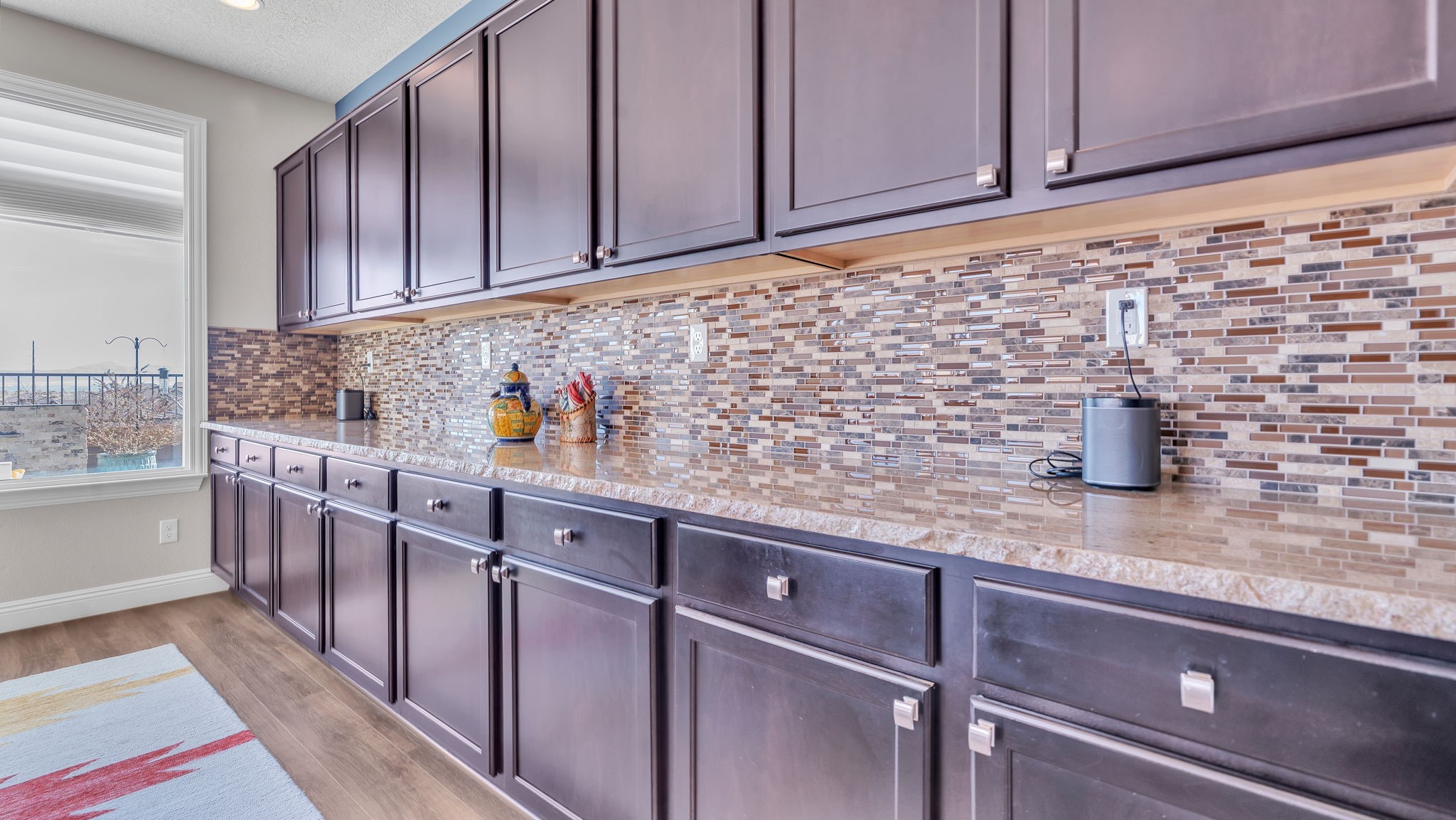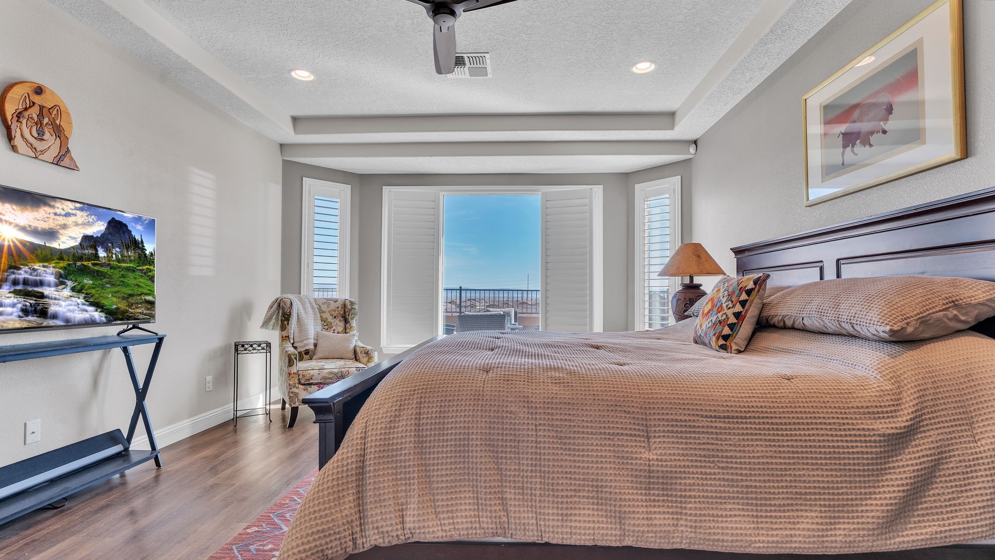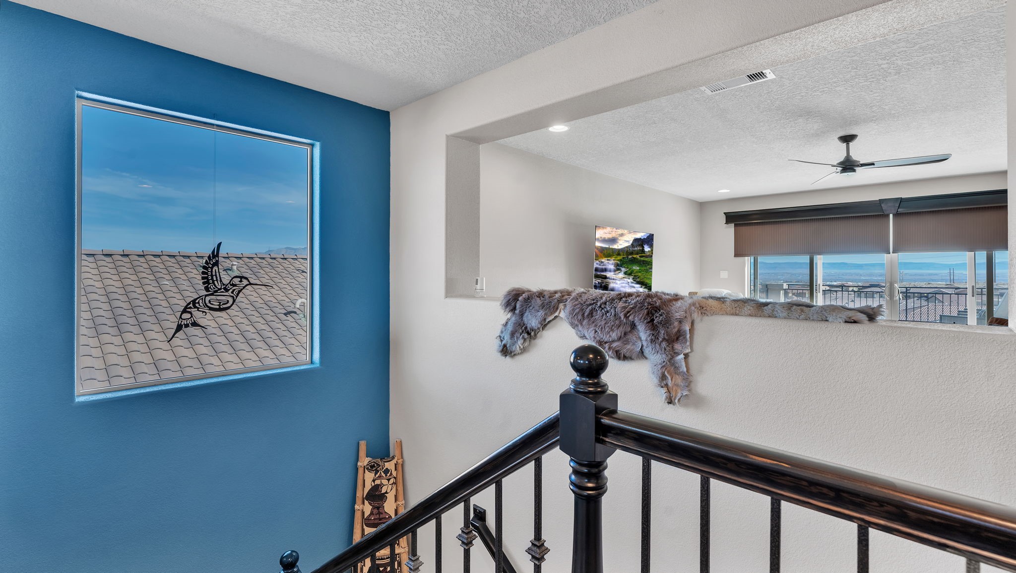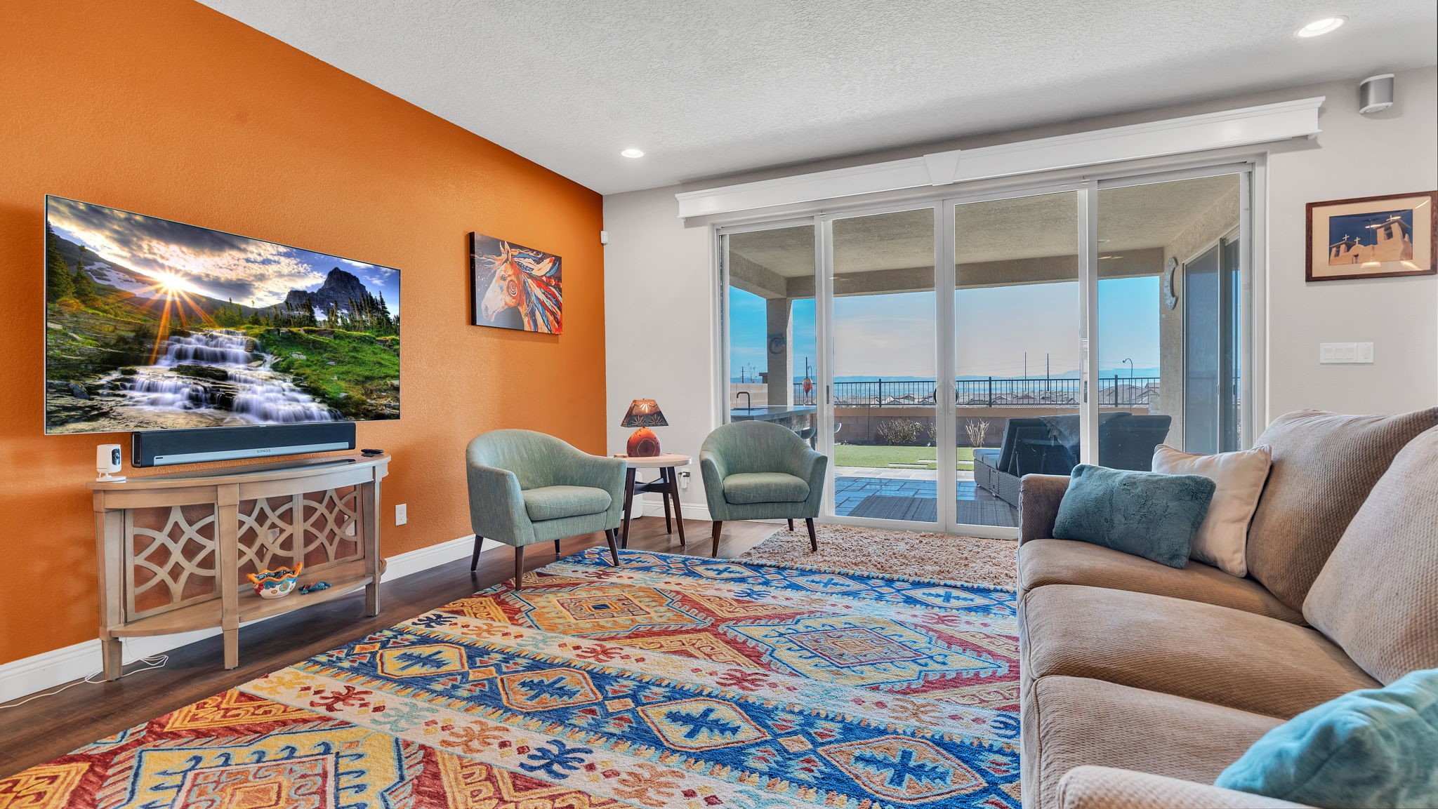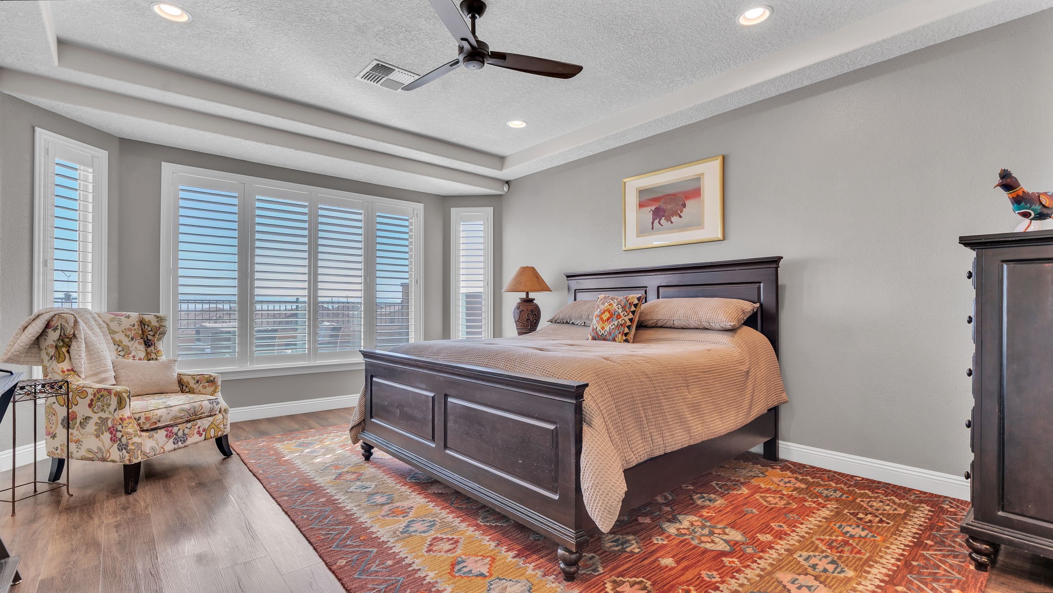 Located in the coveted Manors at Mirehaven community, this exceptional 5-bedroom, 4-bath home offers 4,249 sq ft of thoughtfully designed living space with sweeping views of both the Sandias and Manzanos. Designed for comfort and effortless entertaining, the layout features three large living areas, a private office/exercise flex room with French doors and an oversized tandem finished garage. At the heart of the home, the chef's kitchen showcases stainless steel appliances, gas cooktop, double ovens, microwave, dishwasher, large seating island, live-edge granite countertops, a gorgeous designer backsplash and a vented hood. Just off the kitchen, the formal dining room offers generous space for gatherings, beautiful views, and its own built-in buffet with additional cabinetry-ideal for hosting and extra storage. Also off the kitchen is a convenient planning nook with granite desk and more cabinetry.A mudroom with a boot bench, coat hooks and storage baskets sits next to the utility room including the large-capacity Maytag washer and steam dryer for everyday convenience.The main-level primary suite features plantation shutters, mountain views, a spacious spa-like tiled shower and an oversized walk-in closet. Upstairs, four bedrooms each include walk-in closets, two with a Jack-and-Jill bath, plus a second double-sink hall bath. Two additional living areas and a private viewing deck with electronic room-darkening patio door shades complete the second floor.Premium upgrades throughout include:" Sonos soundbars & wall-mounted speakers in 1st and 2nd floor TV rooms;" Vivint security system with smart temperature control, plus 3 indoor & 3 outdoor cameras;" Energy Star qualified with dual-zone heating/AC;" Under-cabinet lighting & abundant storage;" Owned Culligan water softener;" Newer front storm door and Navian on-demand water heater;" Covered patio with wet bar, tranquil water feature & professionally landscaped backyard;" Automated irrigation system for plants and flower pots.Enjoy walking entry to the trails at Petroglyph National Monument and easy access to Interstate 40, shopping, dining, and everyday amenities.Luxury, space, smart upgrades, and unforgettable views Mirehaven living at its finest.