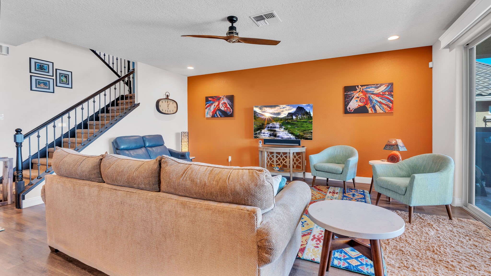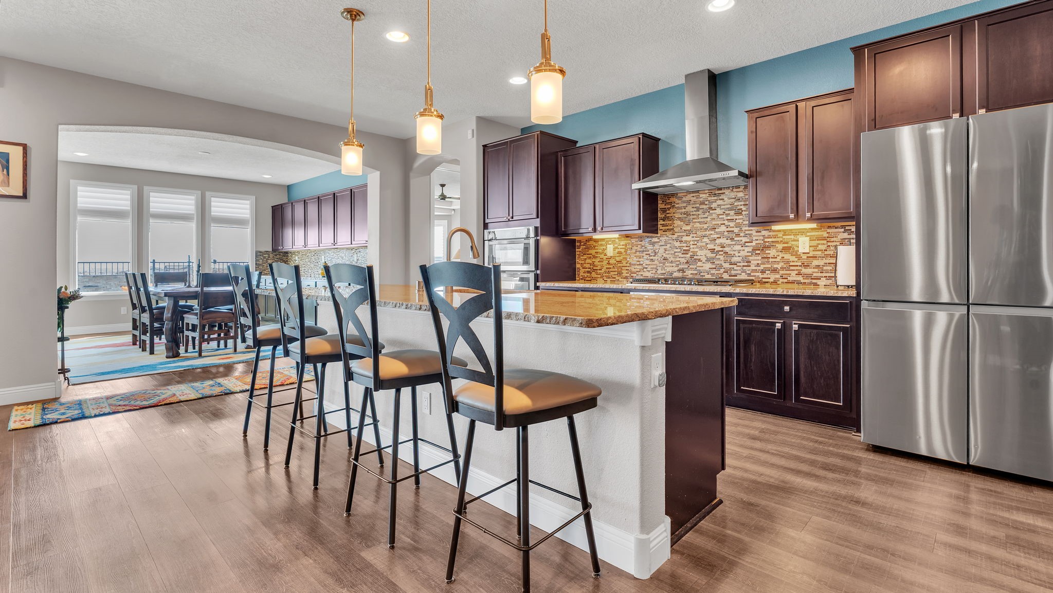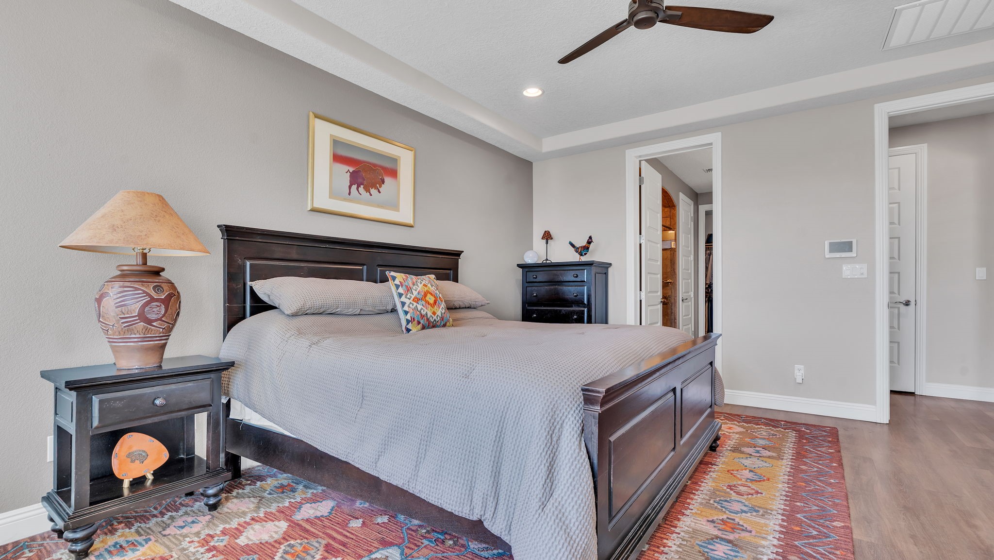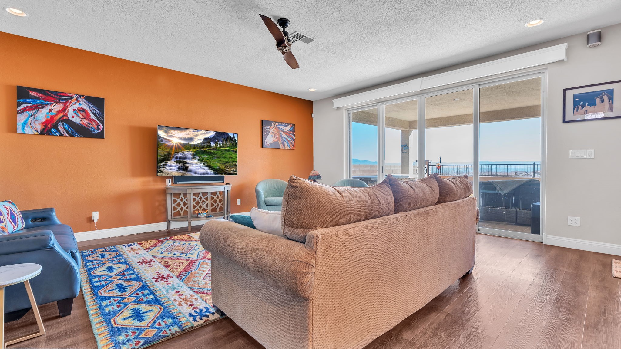 Located in the coveted Manors at Mirehaven community, this exceptional 5-bedroom, 4-bath home offers 4,249 sq ft of thoughtfully designed living space with sweeping views of both the Sandias and Manzanos. Designed for comfort and effortless entertaining, the layout features three large living areas, a private office/exercise flex room with French doors and an oversized tandem finished garage. At the heart of the home, the chef's kitchen showcases stainless steel appliances, gas cooktop, double ovens, microwave, dishwasher, large seating island, live-edge granite countertops, a gorgeous designer backsplash and a vented hood. Just off the kitchen, the formal dining room offers generous space for gatherings, beautiful views, and its own built-in buffet with additional cabinetry-ideal for hosting and extra storage. Also off the kitchen is a convenient planning nook with granite desk and more cabinetry.A mudroom with a boot bench, coat hooks and storage baskets sits next to the utility room including the large-capacity Maytag washer and steam dryer for everyday convenience.The main-level primary suite features plantation shutters, mountain views, a spacious spa-like tiled shower and an oversized walk-in closet. Upstairs, four bedrooms each include walk-in closets, two with a Jack-and-Jill bath, plus a second double-sink hall bath. Two additional living areas and a private viewing deck with electronic room-darkening patio door shades complete the second floor.Premium upgrades throughout include:" Sonos soundbars & wall-mounted speakers in 1st and 2nd floor TV rooms;" Vivint security system with smart temperature control, plus 3 indoor & 3 outdoor cameras;" Energy Star qualified with dual-zone heating/AC;" Under-cabinet lighting & abundant storage;" Owned Culligan water softener;" Newer front storm door and Navian on-demand water heater;" Covered patio with wet bar, tranquil water feature & professionally landscaped backyard;" Automated irrigation system for plants and flower pots.Enjoy walking entry to the trails at Petroglyph National Monument and easy access to Interstate 40, shopping, dining, and everyday amenities.Luxury, space, smart upgrades, and unforgettable views Mirehaven living at its finest.