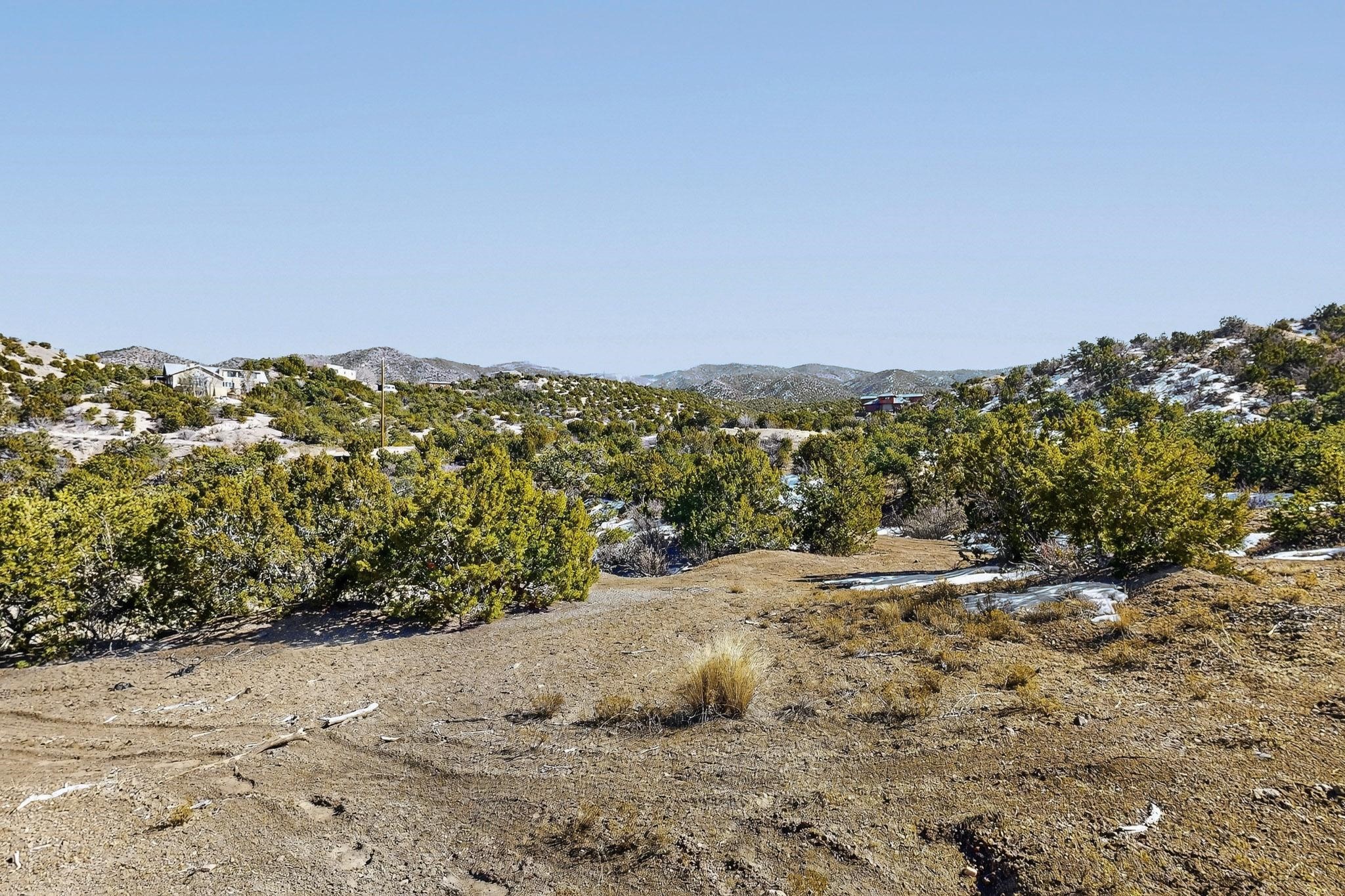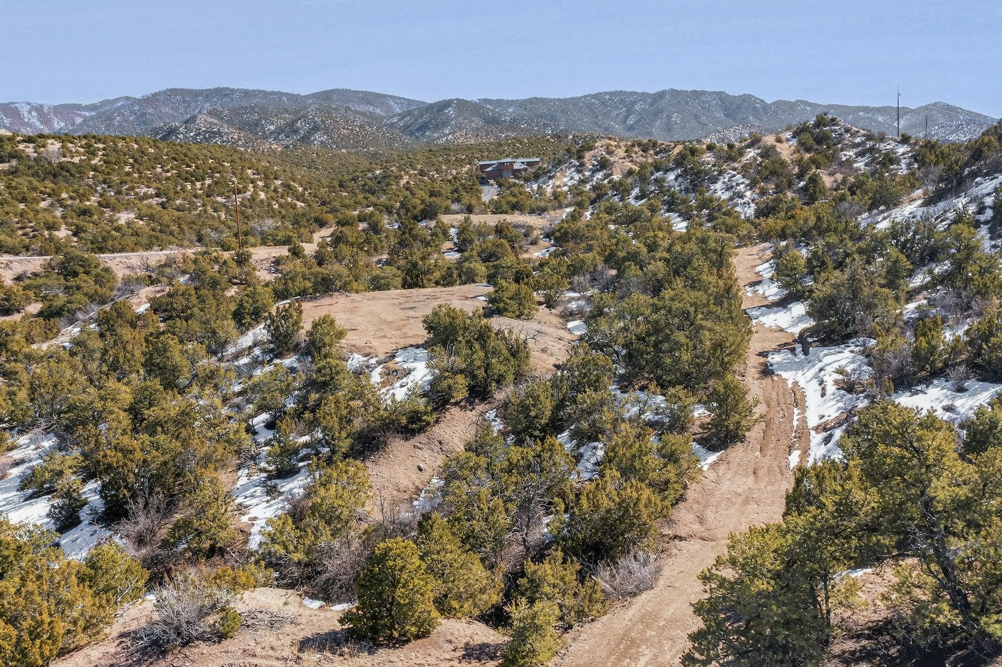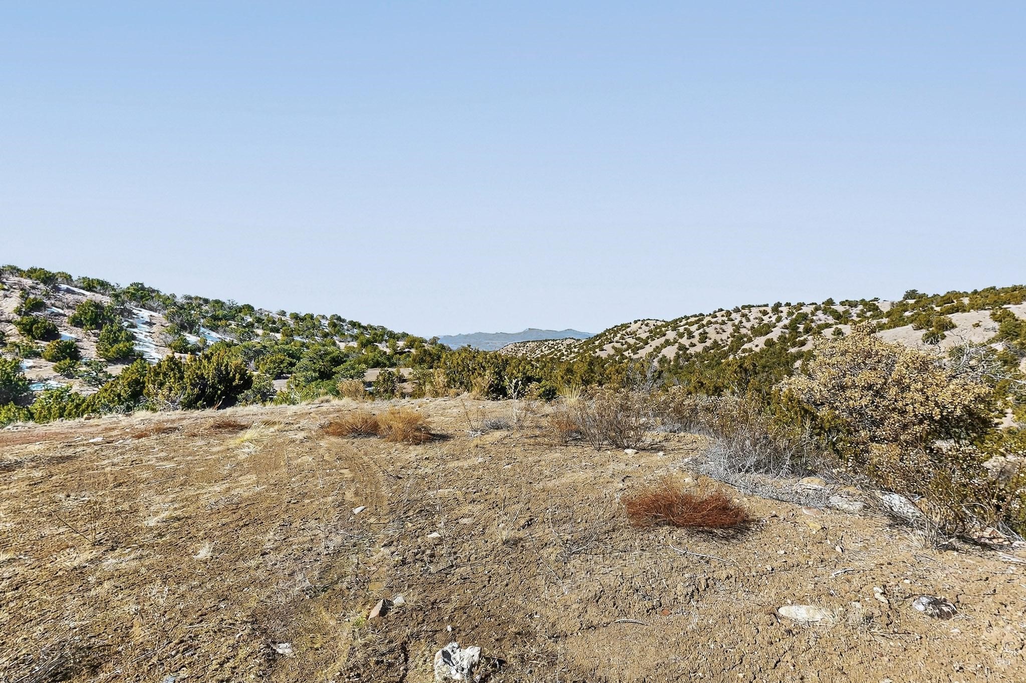 Easy build 15 acre lot with an expansive view through the steep sided canyon to the Jemez mountains to the west. Easy access off State Rd 592 and just a couple of minutes from the village of Rio En Medio, which has access to a trail head into the mountains of the National Forest and a nearby waterfall. 3 easy and flat building sites. Private well and power available. Minimal CC&Rs. All 5 lots can be purchased as a package. Approximately 10 minutes/10 miles to Santa Fe to reach this sheltered and privately situated lot. Minutes to fine dining at the Four Seasons Encantado Resort.