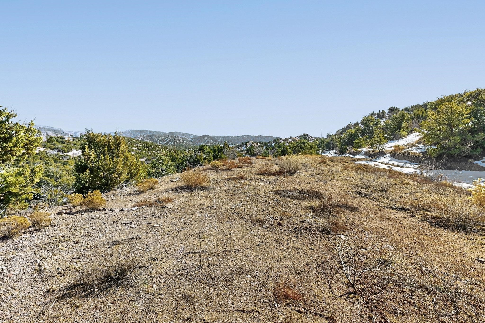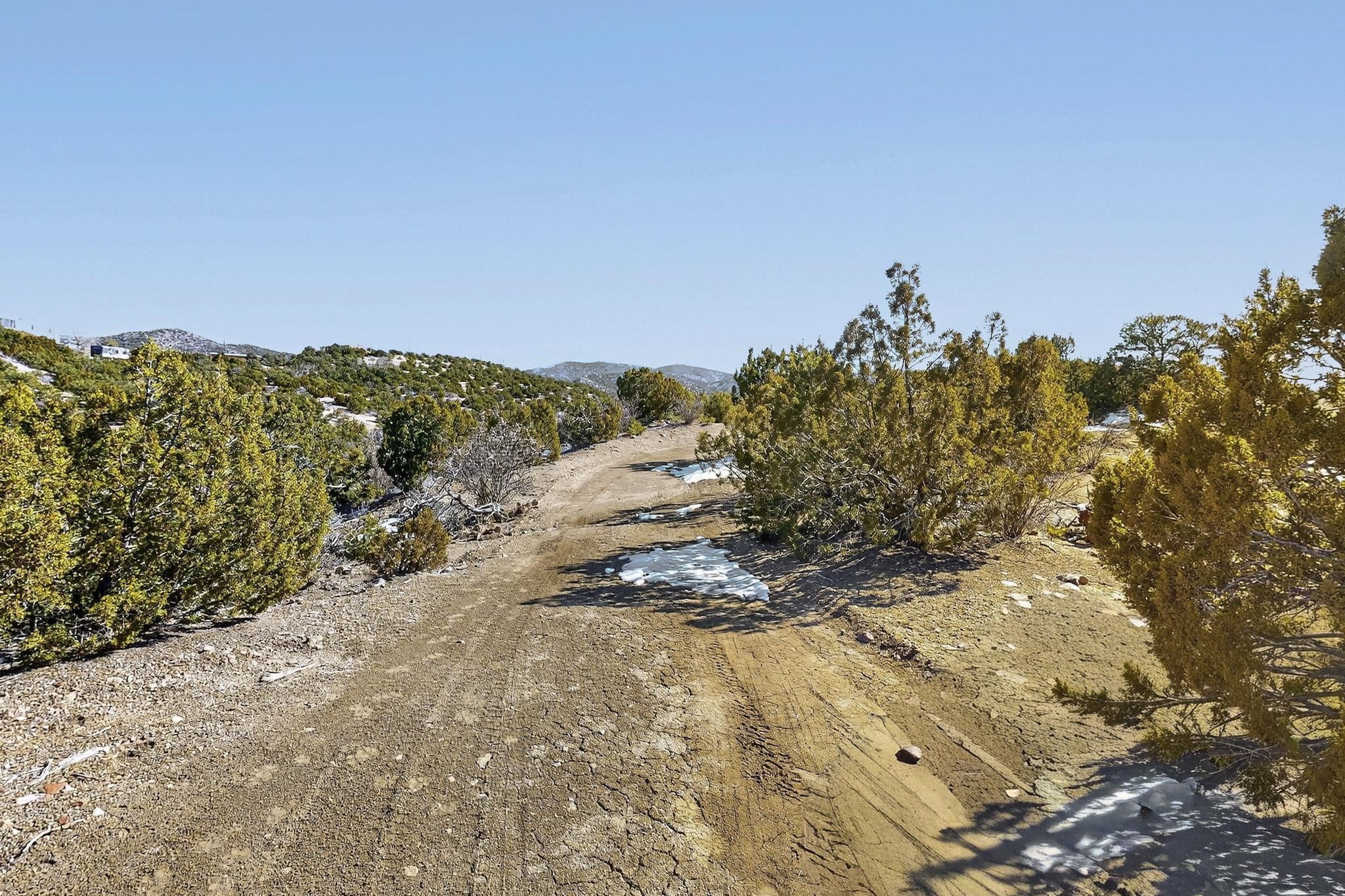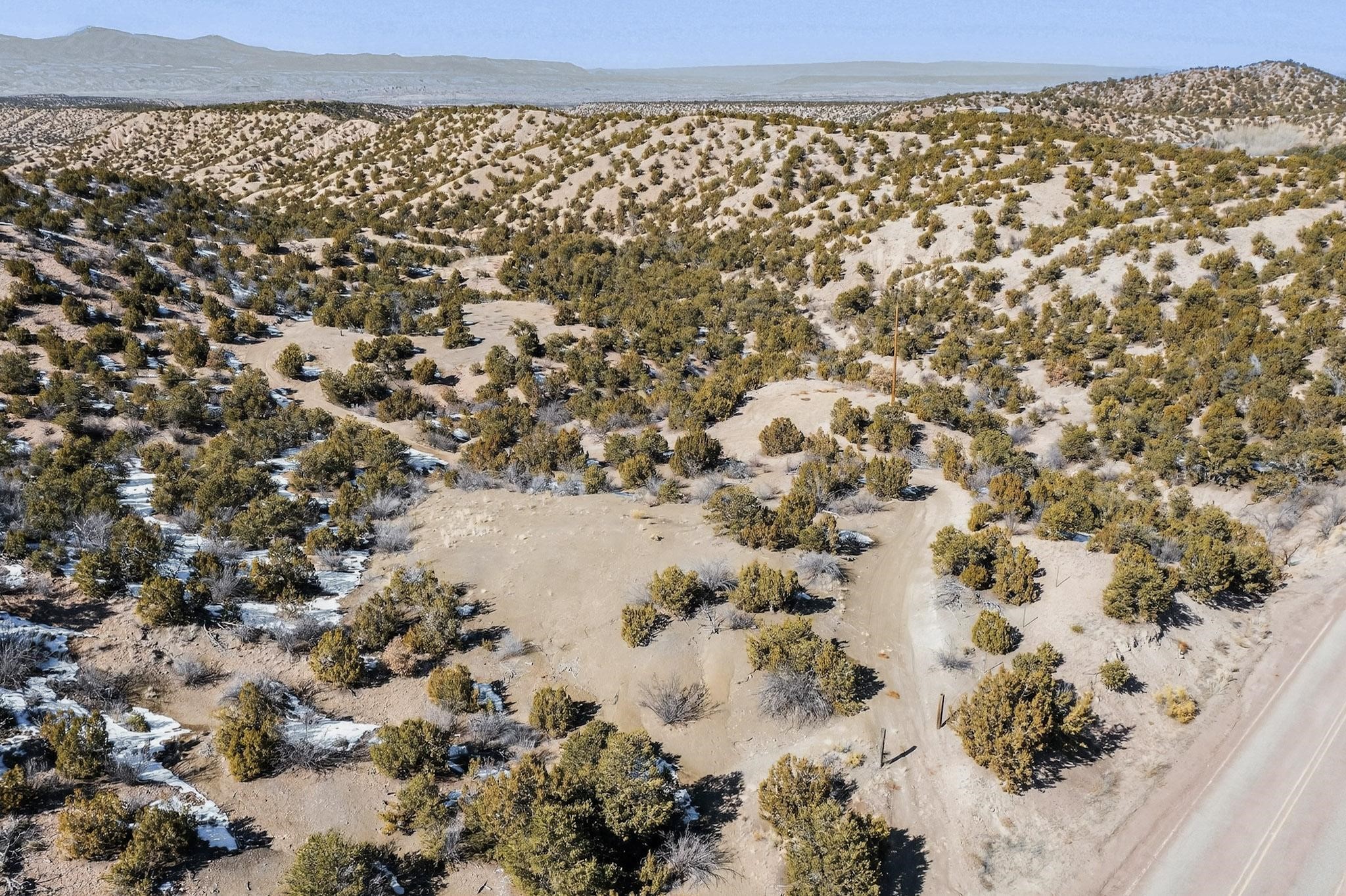 Easy build 15 acre lot with an expansive view through the steep sided canyon to the Jemez mountains to the west. Easy access off State Rd 592 and just a couple of minutes from the village of Rio En Medio, which has access to a trail head into the mountains of the National Forest and a nearby waterfall. 3 easy and flat building sites. Private well and power available. Minimal CC&Rs. All 5 lots can be purchased as a package. Approximately 10 minutes/10 miles to Santa Fe to reach this sheltered and privately situated lot. Minutes to fine dining at the Four Seasons Encantado Resort.
