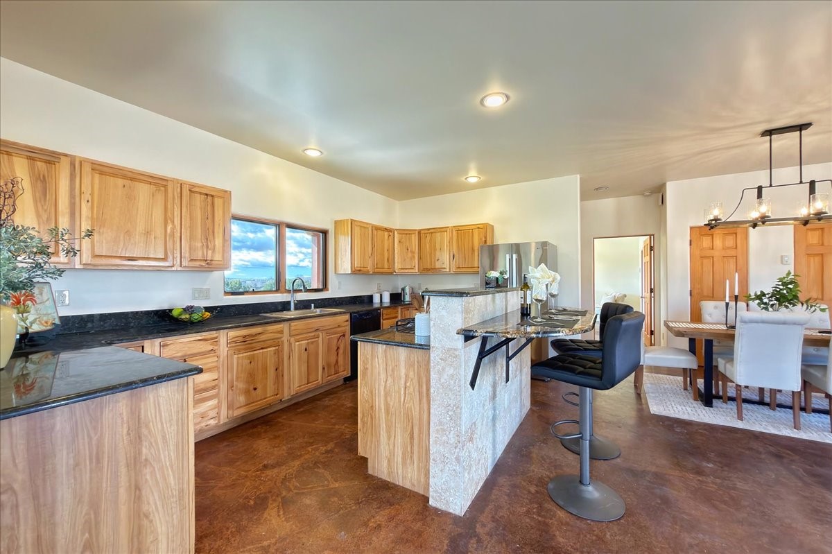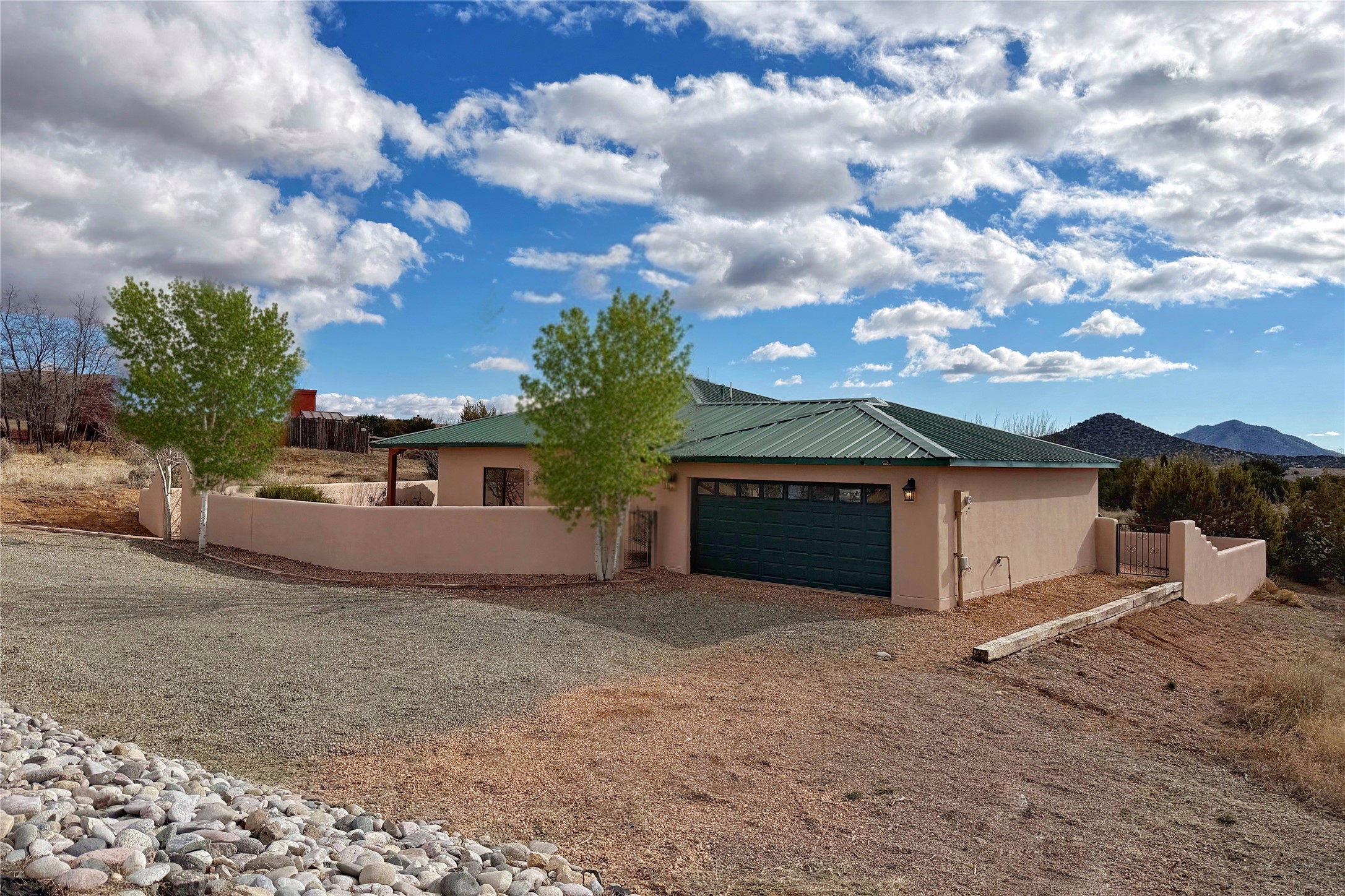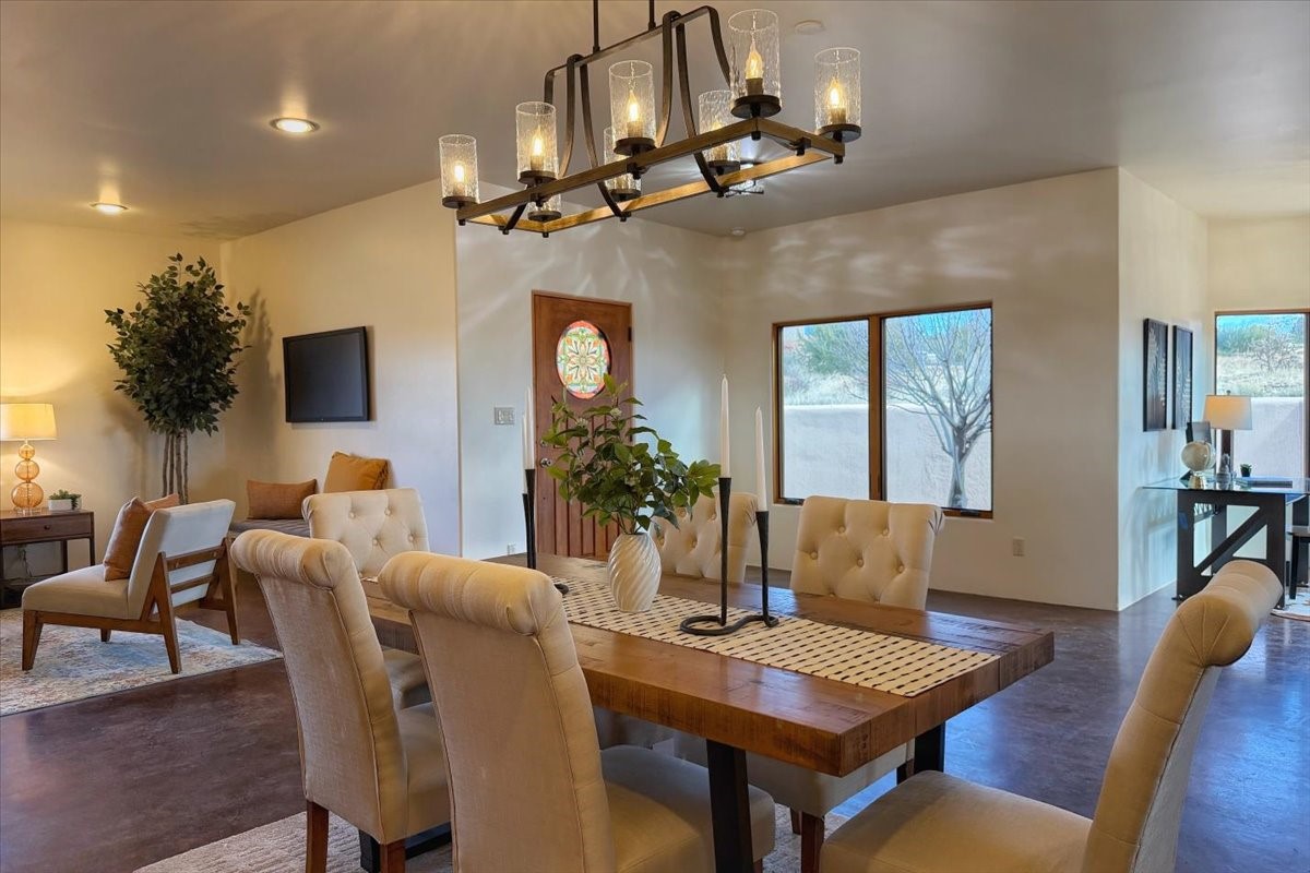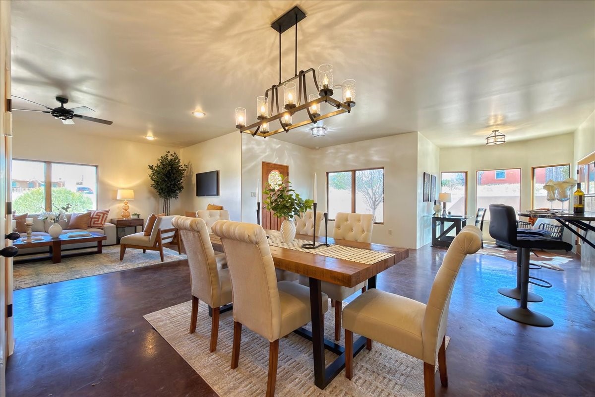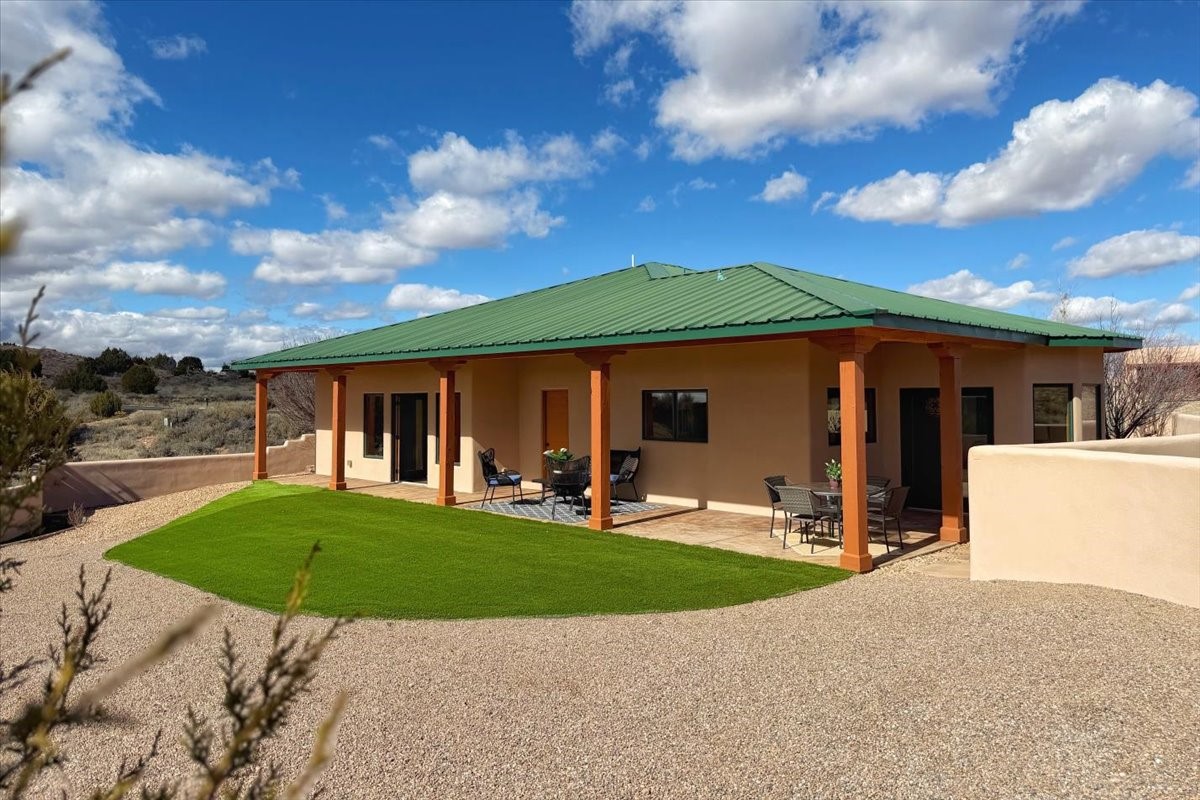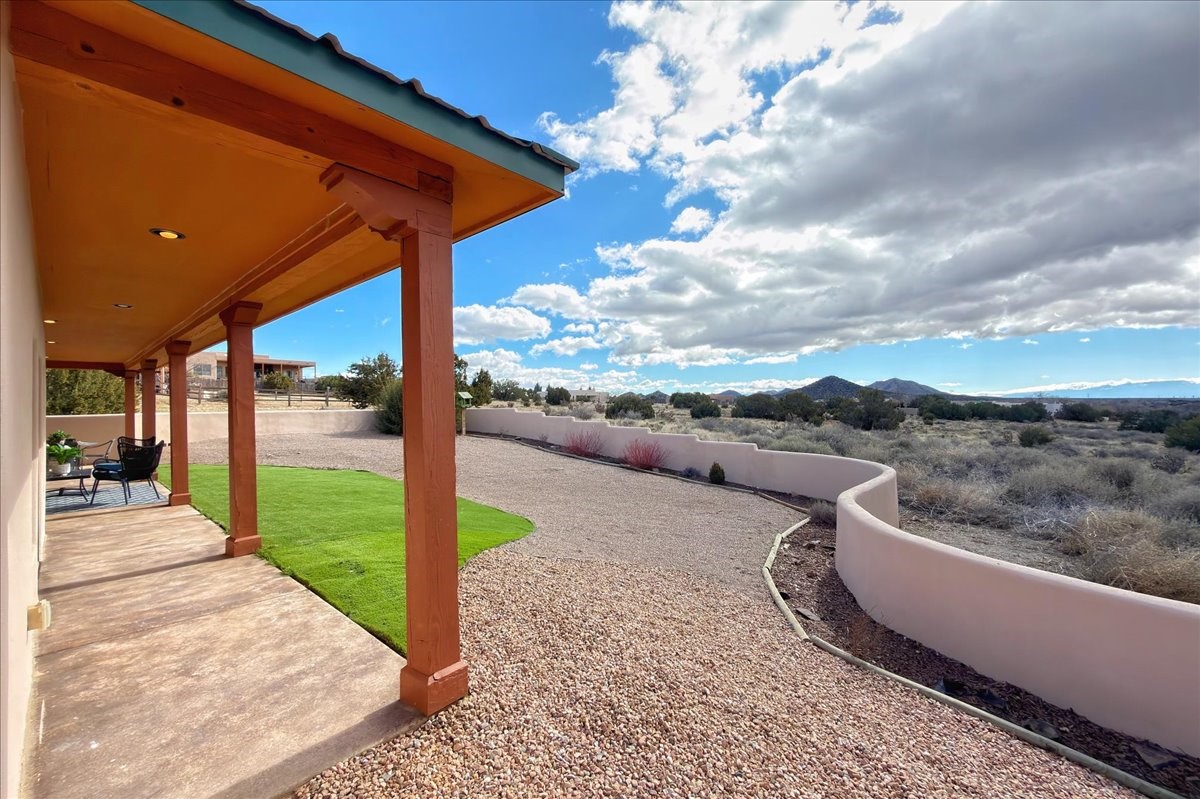 Nestled in the gated community of Las Lagunitas is this beautiful 2-bedroom, 2-full-bath, single-level home with an oversized 2 car garage nestled on 1.42 acres. Freshly painted and move-in ready! Open-concept living, dining, and kitchen featuring granite counters. Abundant natural light throughout. Primary bedroom and kitchen offer unobstructed, far-reaching views. Secondary bedroom flexible as a studio or office space. Landscaped backyard with a full privacy wall and ample space for pets to roam. A lovely patio invites you to enjoy the beautiful New Mexico sunsets. This home combines comfort, style, and convenience! Easy access to I-25 & NM-599.