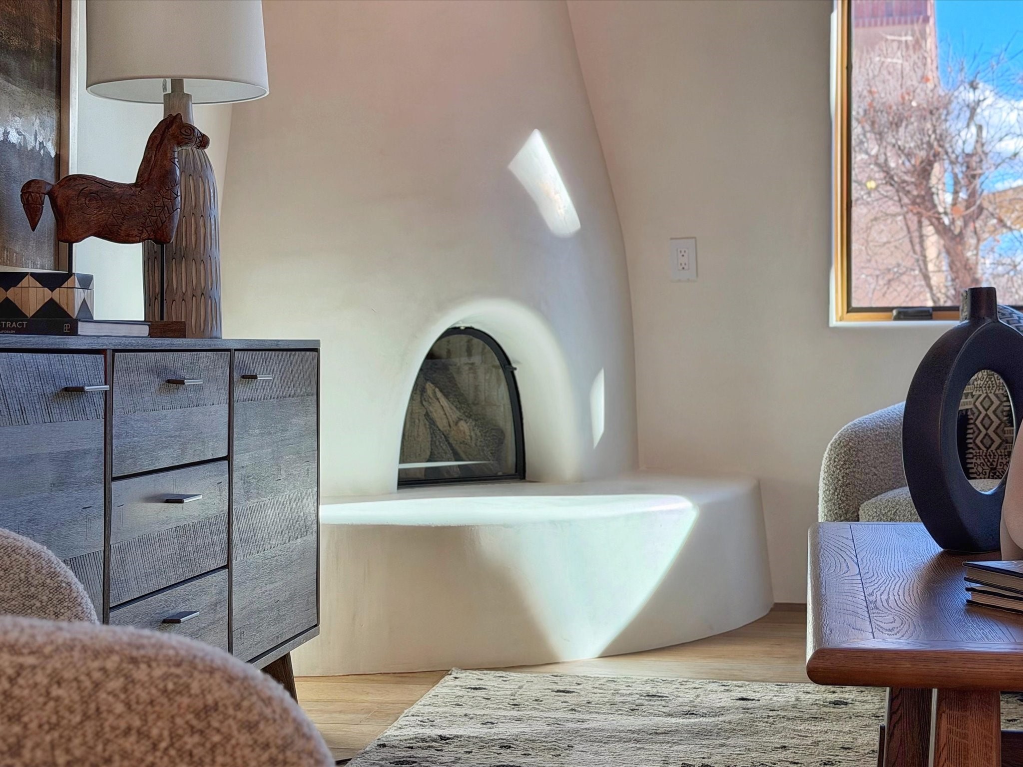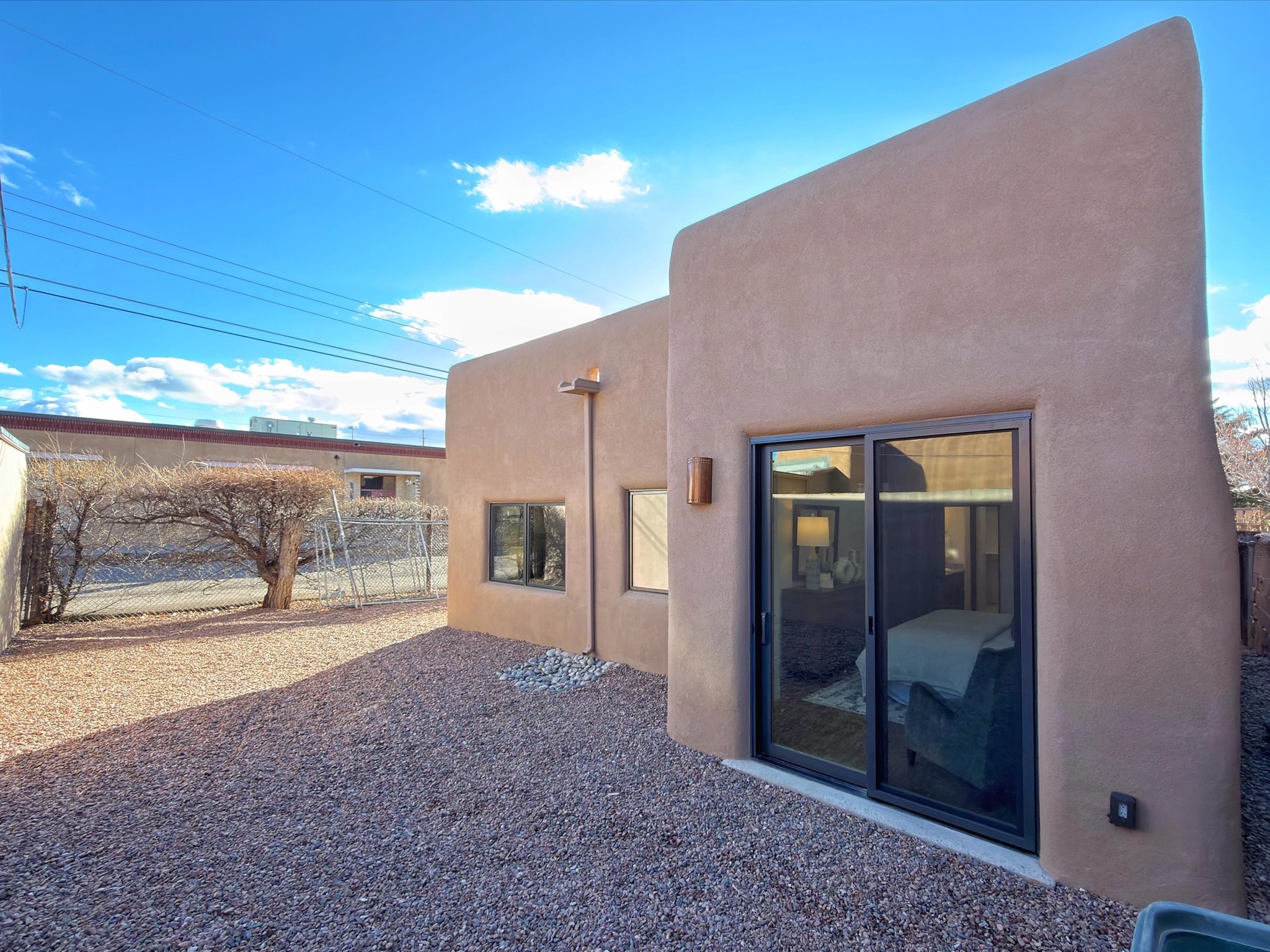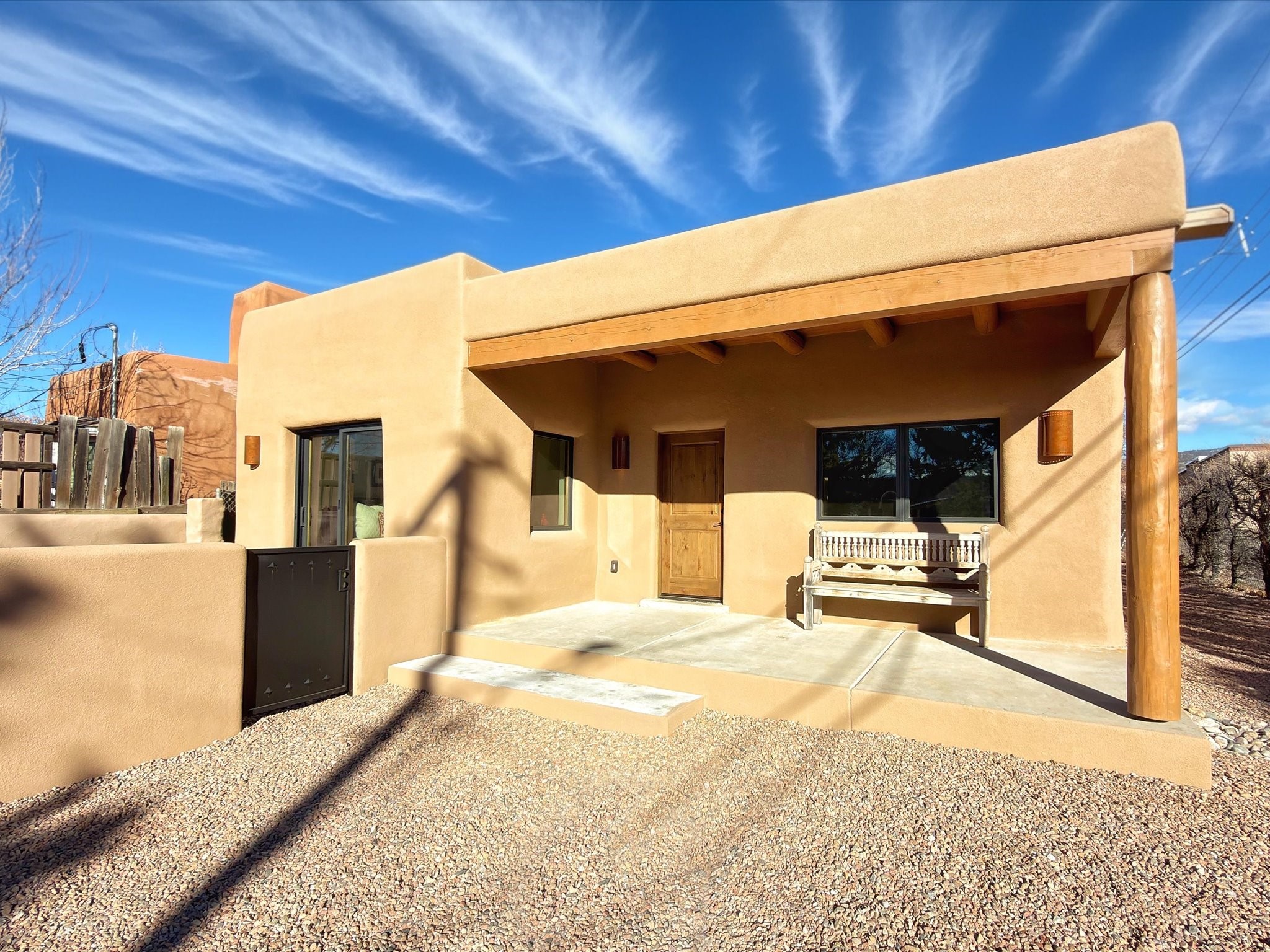 NEW CONSTRUCTION ADOBE HOME just minutes from the Railyard and downtown Santa Fe. This beautifully crafted 3-bedroom, 2-bath residence offers approximately 1,845 sq ft of authentic Southwestern style paired with modern comfort.Inside, warm wood floors, hand-applied diamond plaster walls, and striking viga-and-beam wood ceilings create a timeless Santa Fe aesthetic. The open living area features a classic kiva fireplace, perfect for cozy evenings and entertaining.The home is designed for year-round comfort with radiant in-floor heating and efficient mini-split systems for heating and air conditioning. Bathrooms showcase custom tile showers, and quality finishes are found throughout.Enjoy multiple outdoor living areas ideal for relaxing, dining, or soaking up Santa Fe's beautiful climate.Located just minutes from the Railyard's farmers market, galleries, restaurants, and entertainment -- with easy access to downtown and the Plaza -- this home offers the perfect blend of charm, convenience, and modern construction.