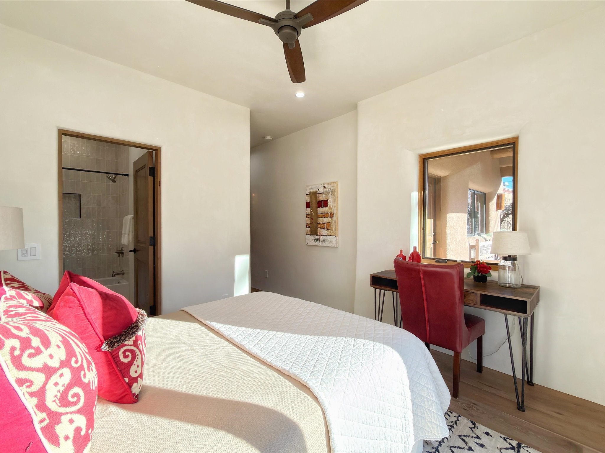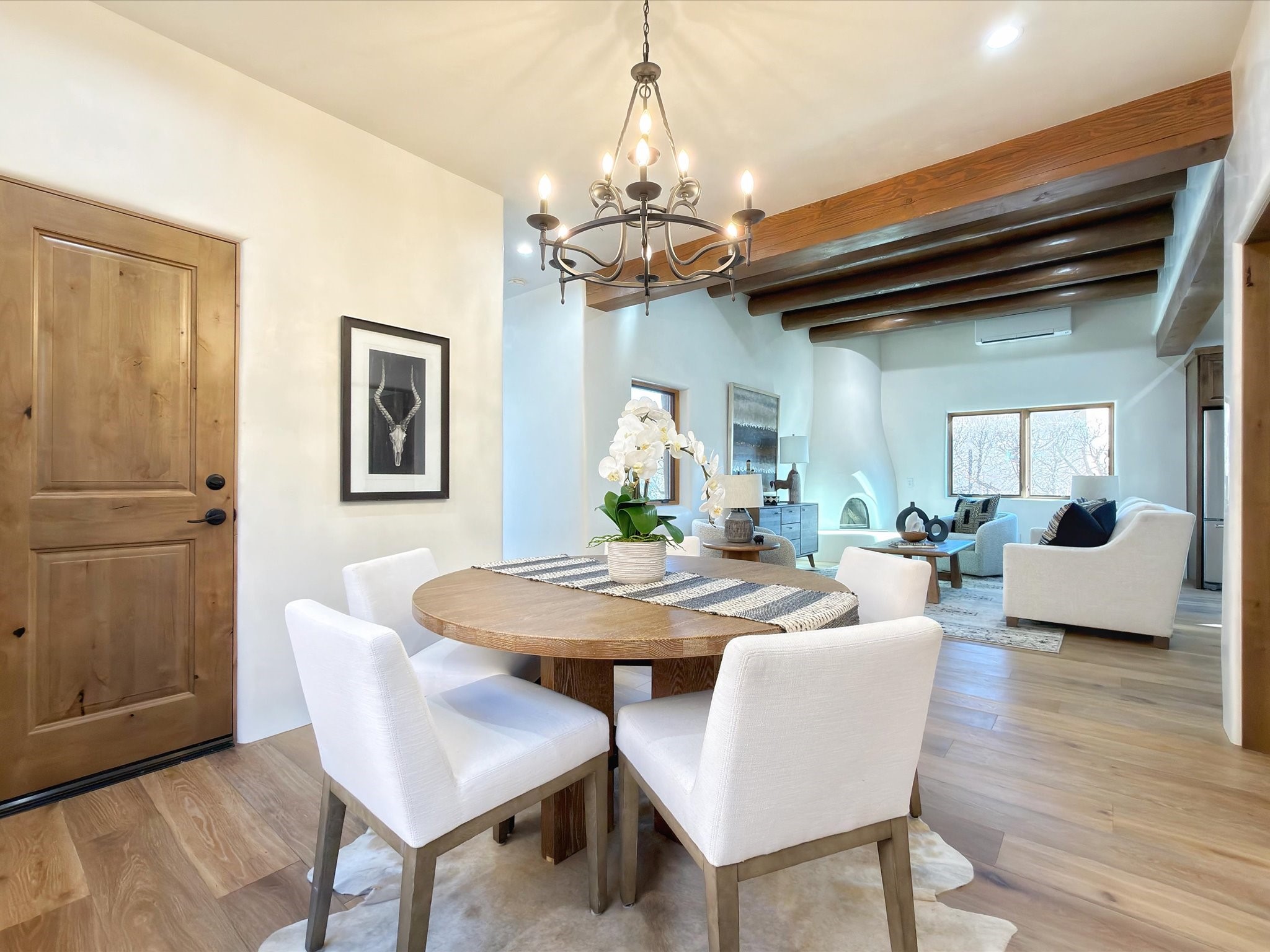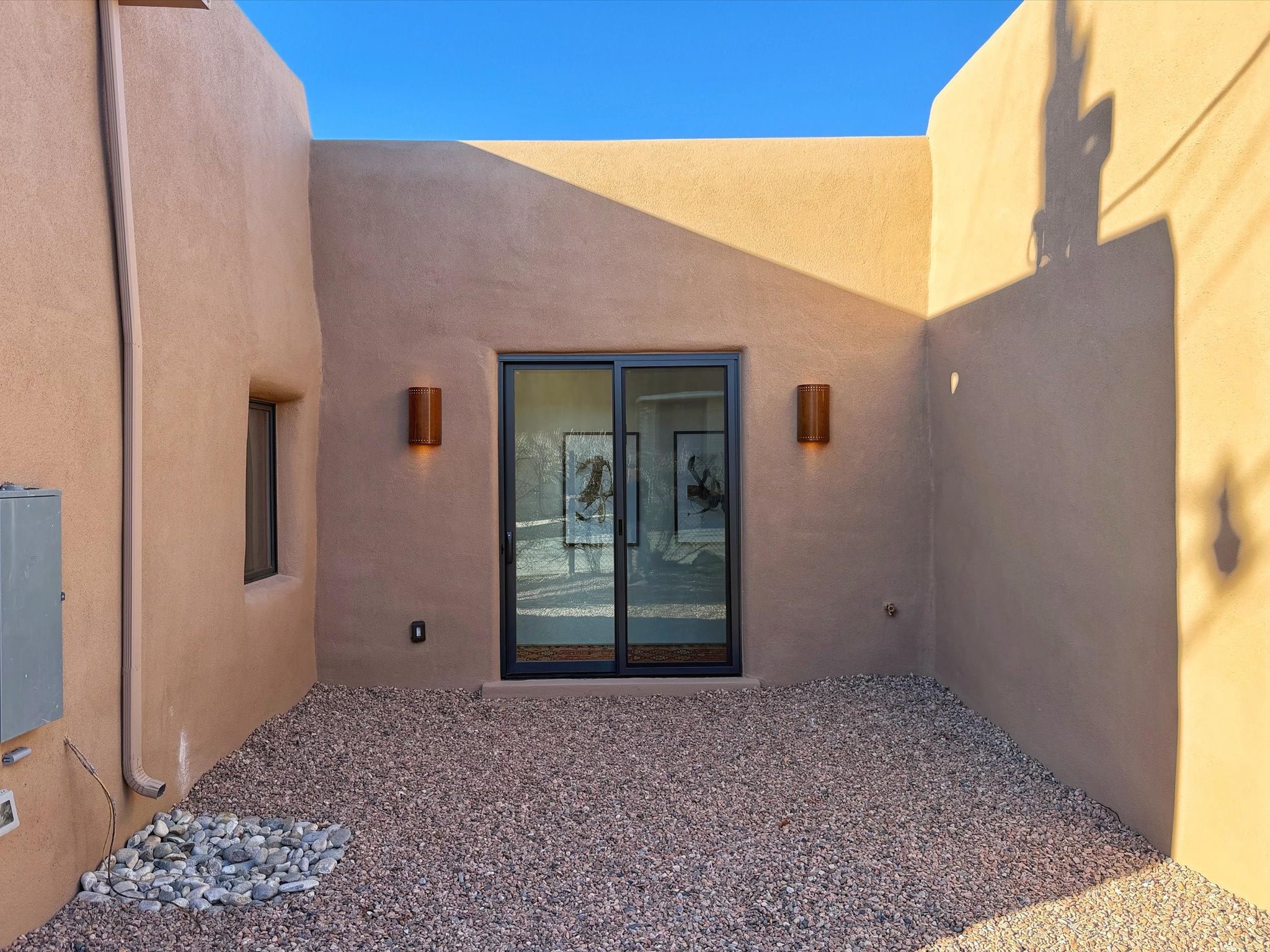 NEW CONSTRUCTION ADOBE HOME just minutes from the Railyard and downtown Santa Fe. This beautifully crafted 3-bedroom, 2-bath residence offers approximately 1,845 sq ft of authentic Southwestern style paired with modern comfort.Inside, warm wood floors, hand-applied diamond plaster walls, and striking viga-and-beam wood ceilings create a timeless Santa Fe aesthetic. The open living area features a classic kiva fireplace, perfect for cozy evenings and entertaining.The home is designed for year-round comfort with radiant in-floor heating and efficient mini-split systems for heating and air conditioning. Bathrooms showcase custom tile showers, and quality finishes are found throughout.Enjoy multiple outdoor living areas ideal for relaxing, dining, or soaking up Santa Fe's beautiful climate.Located just minutes from the Railyard's farmers market, galleries, restaurants, and entertainment -- with easy access to downtown and the Plaza -- this home offers the perfect blend of charm, convenience, and modern construction.