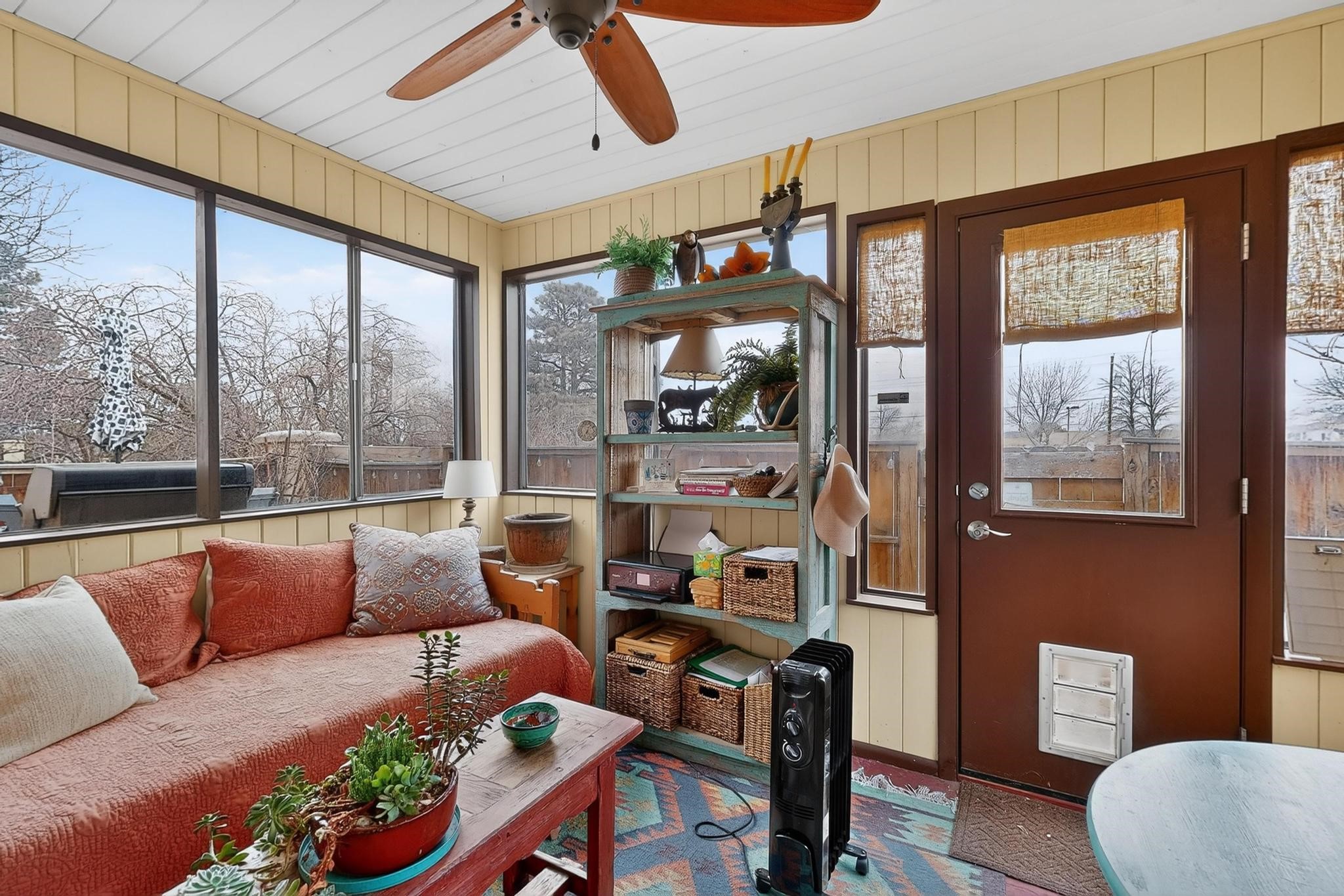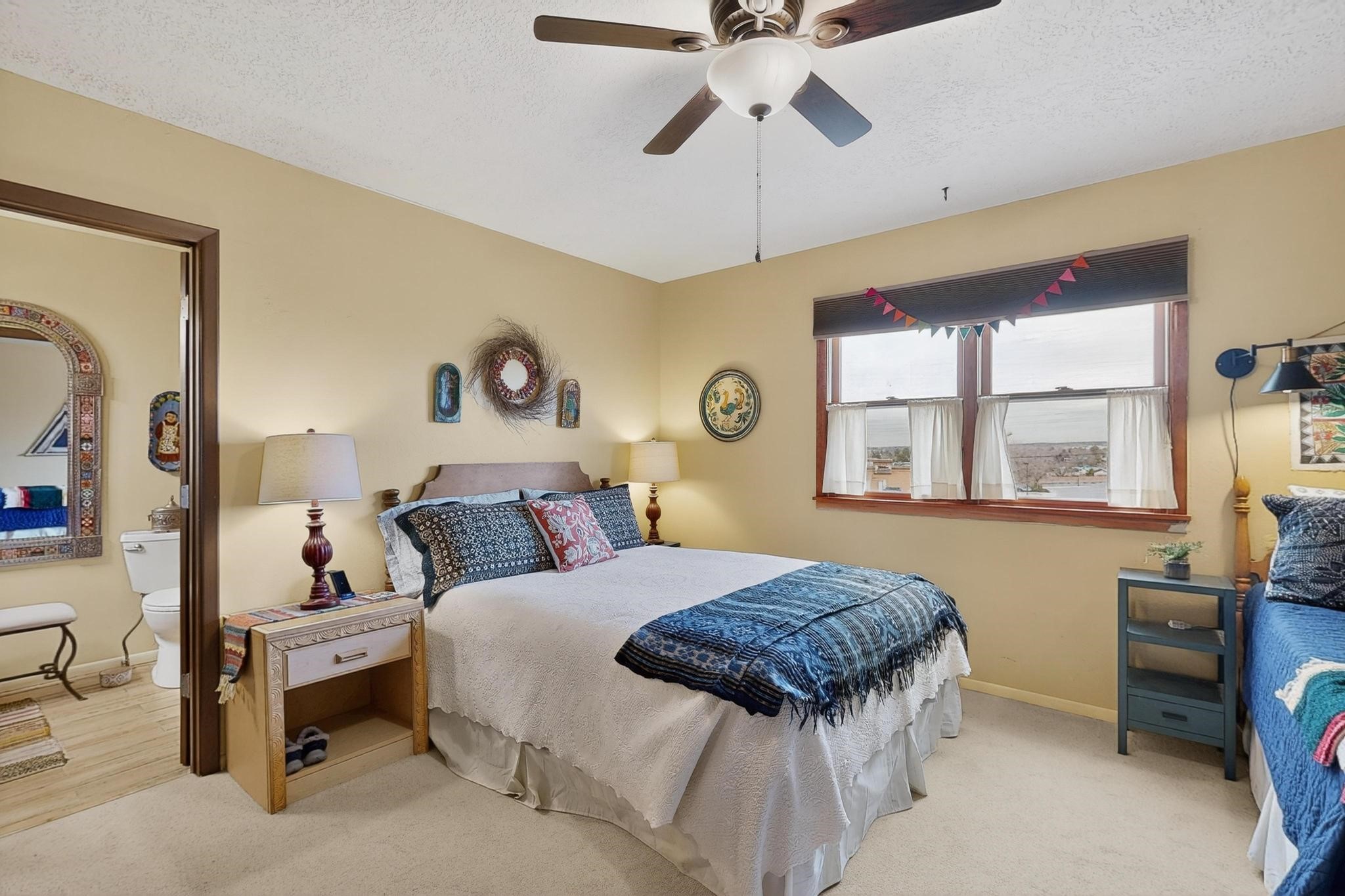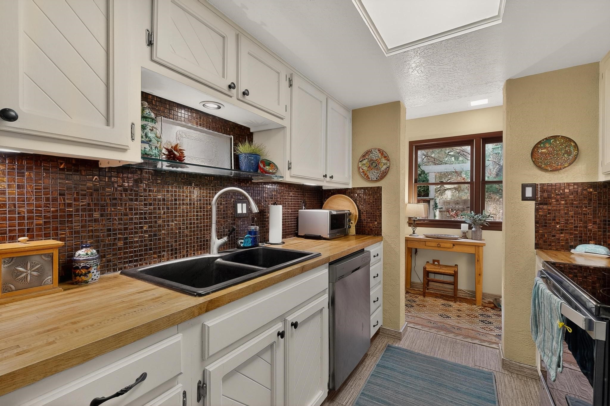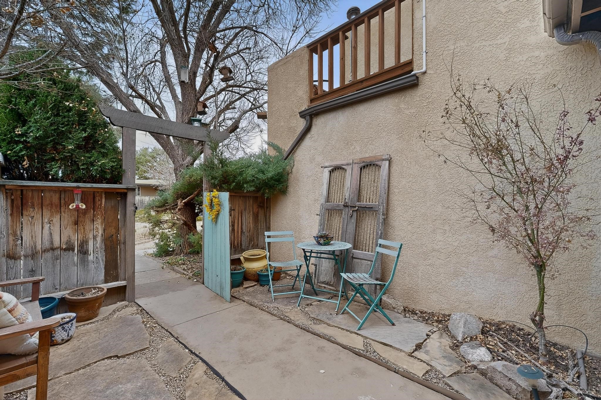 Charming townhome, located in the desirable Park Plazas neighborhood! 2 bedrooms, 2.5 baths (one is a 3/4), about 1330 square feet and many wonderful upgrades! Downstairs you will enjoy a lovely living room with an electric, kiva fireplace, a beautiful galley kitchen and dining room area, a spacious laundry room with storage and an enclosed, unheated sunroom where you can sit and enjoy your morning coffee! Upstairs is the 2 bedrooms, both with bathrooms, one with a new closet, the other with a wood burning, kiva fireplace, and wonderful views. The cute backyard has a sitting area where you can enjoy the Santa Fe sun, the Rose of Sharon on the right hand side and the amazing grapevines that are on the fence. as well as storage for your landscaping tools. This home is perfect if you are downsizing or are looking for a second home. Feel the love, once you step into the front door...