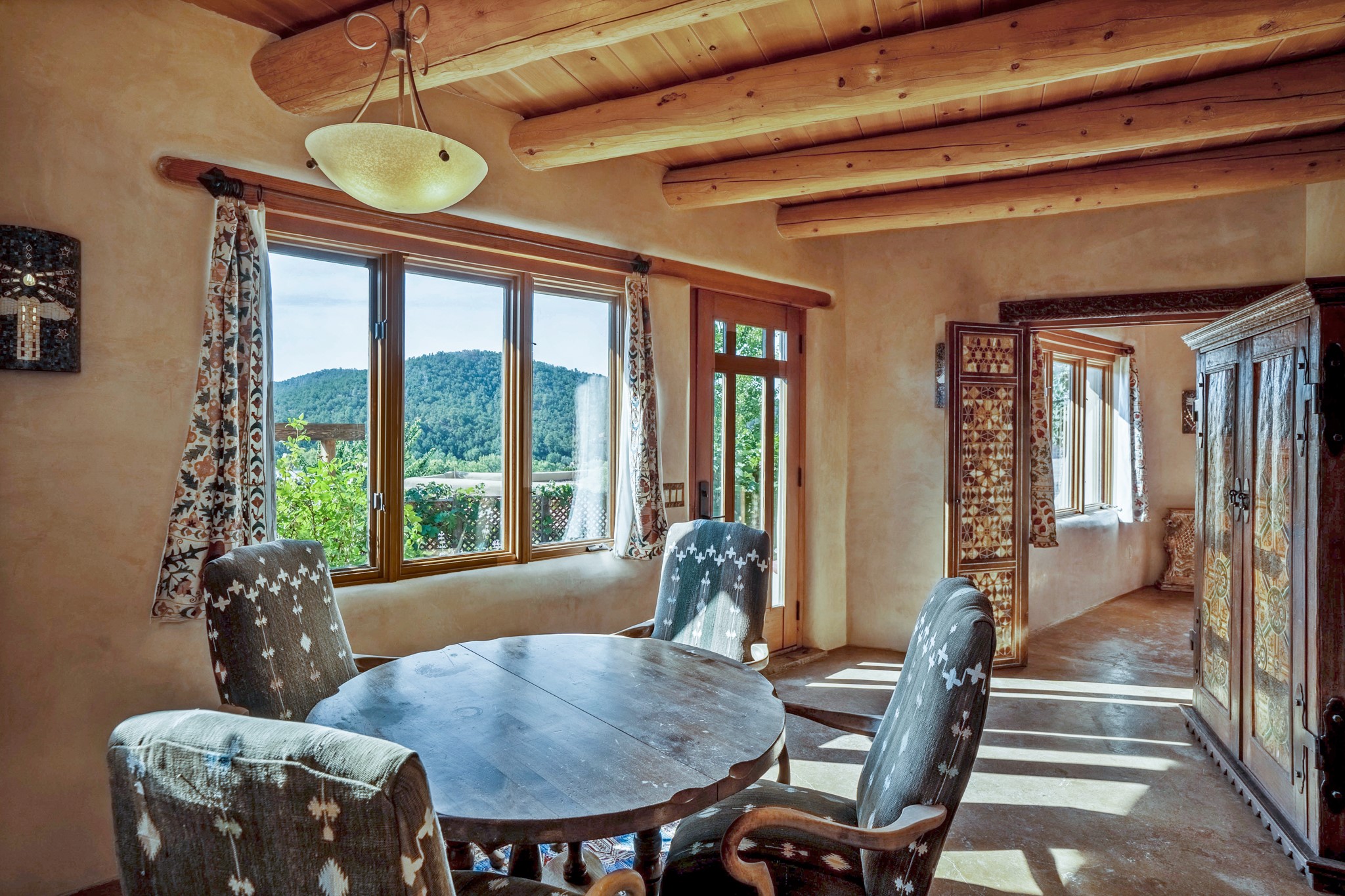 1564 Cerro Gordo Road is a Seret family legacy property, the legendary designers whose vision have shaped Santa Fe style for over five decades. This isn't simply a beautifully appointed 5-bedroom, 5-bathroom compound spanning 5,398 square feet across three distinct structures on 1.5 lush acres. It's a living testament to a remarkable journey that began in the mountains of Afghanistan in 1968 and transformed the way the world thinks about textiles, furniture, and global design.This estate carries the Seret signature, having been curated with the same discerning eye that created The Inn of the Five Graces, and other well-known properties around the world, with authentic architectural treasures. An East meets West aesthetic, where ancient craftsmanship meets contemporary living, and every detail invites you to experience a feast for the senses. The compound is surrounded by the best of Santa Fe's natural beauty, with stunning views of Picacho Peak, and the Dorothy Stewart Trail. Enjoy ultimate serenity and unwind to the sounds of the Santa Fe river running just behind the property. This is more than a home. It's a piece of Santa Fe history, and a rare opportunity to own a property that tells the story of creativity, global adventure, and the very spirit that defines our city.
