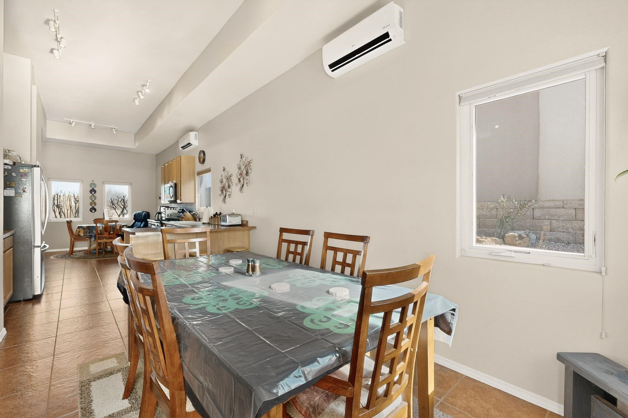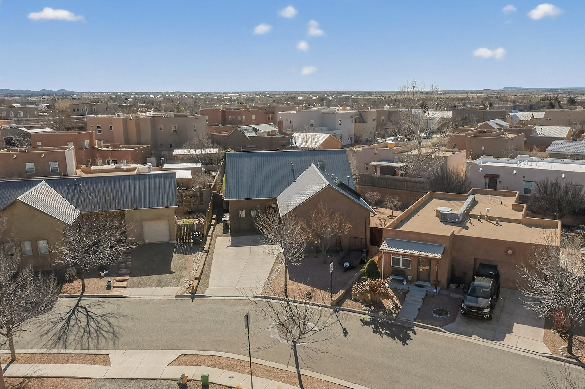 Welcome to this beautifully maintained 4-bedroom, 2-bath residence in the heart of Santa Fe. Built in 2010, this thoughtfully designed home offers comfort, quality craftsmanship, and timeless appeal, featuring high ceilings throughout that enhance the spacious, open feel of the home.Enjoy radiant heat throughout and high-quality Anderson windows paired with matching glass screen doors that fill the home with natural light. Inside, solid wood interior doors and a functional, flowing layout create an inviting space ideal for everyday living and entertaining. Recent upgrades include newly replaced appliances and energy-efficient mini-split systems for year-round comfort.The fully insulated and finished 2-car garage provides excellent flexibility for storage, hobbies, or workspace needs. Outdoors, the property truly shines with exceptional landscaping: mature aspen trees, rose bushes, and lilacs create a serene setting, complemented by a large turf area and an expansive flagstone rear patio perfect for gatherings. A charming stone entryway and custom gates welcome you home, while the fully enclosed wall enhances privacy and security.Offered at $535,000 -- priced to sell.