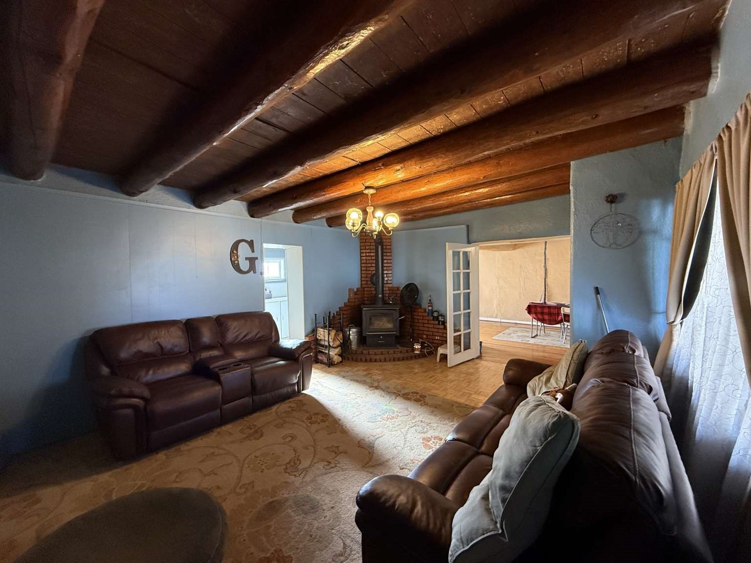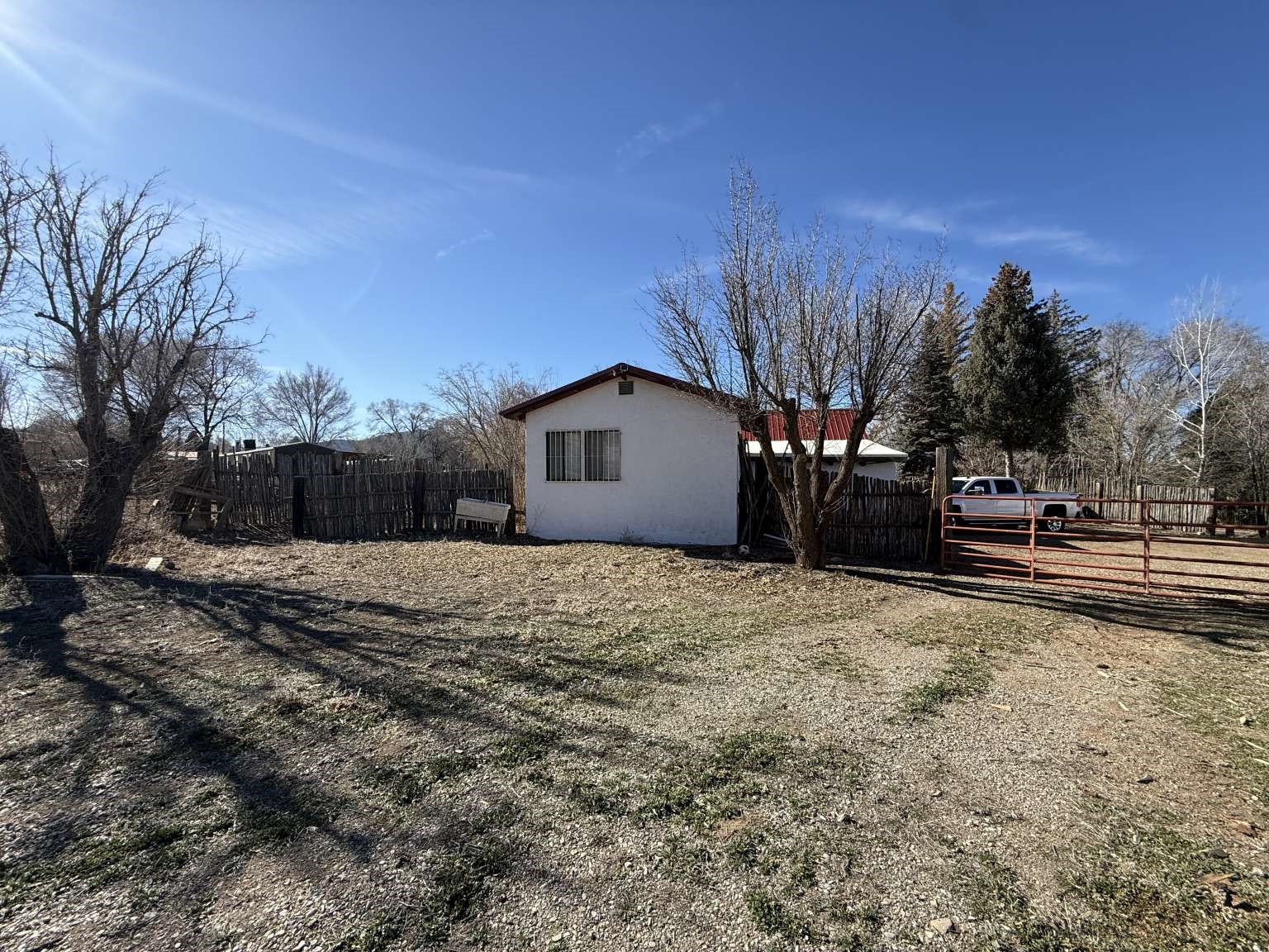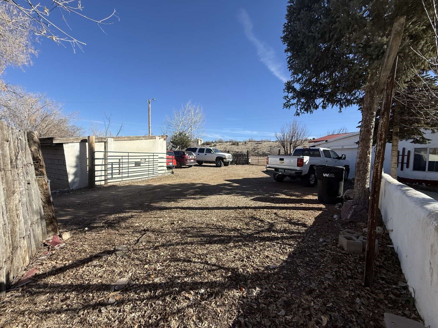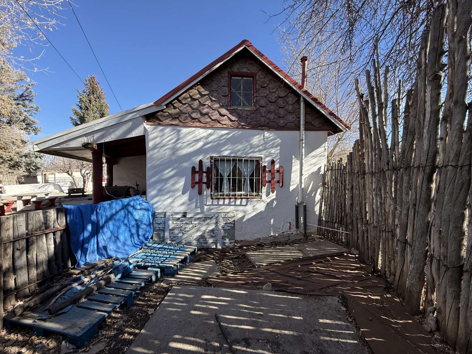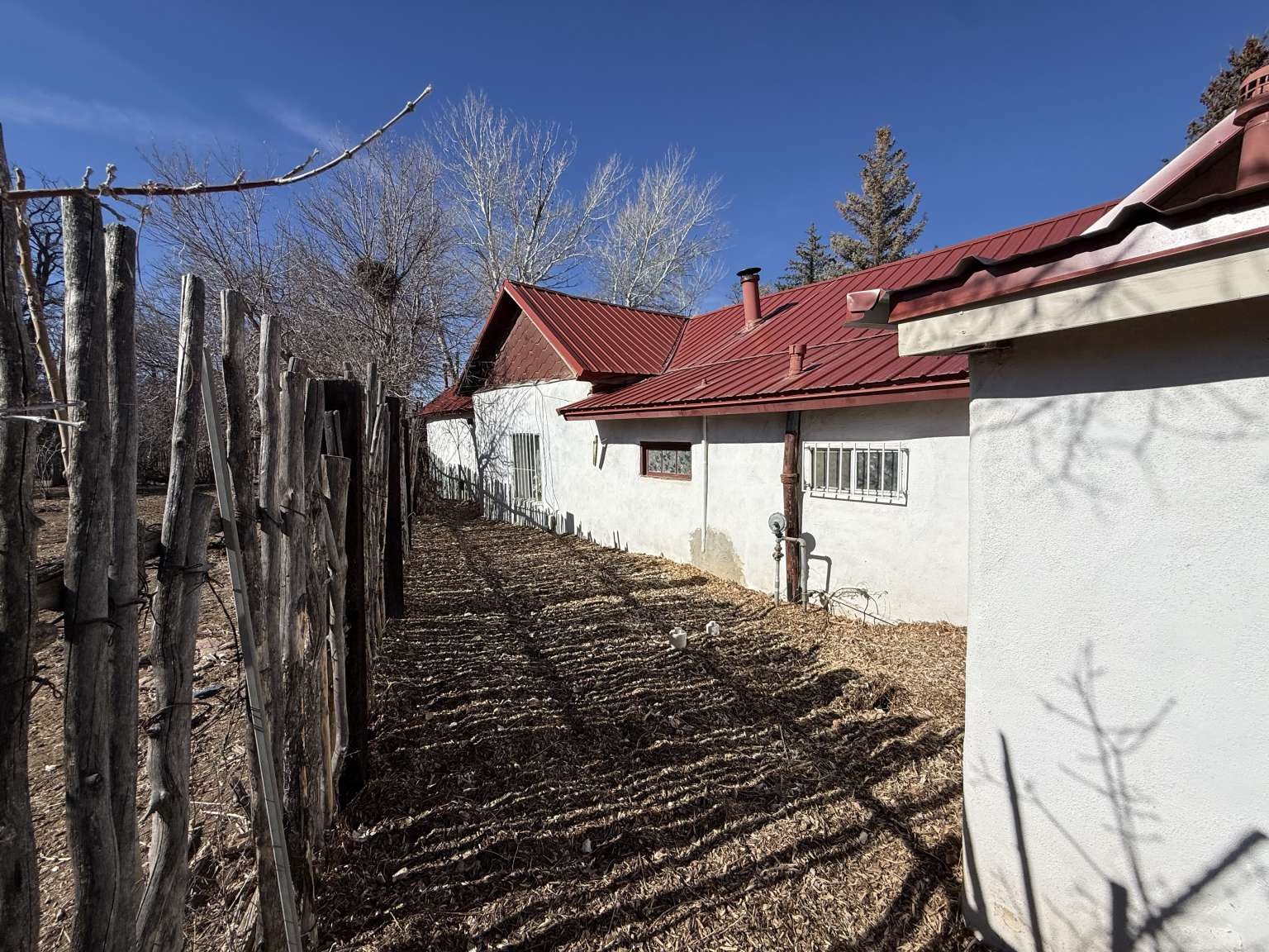 Nestled in Ranchos de Taos, this 2,268-square-foot adobe-style residence offers a unique opportunity on a lush one-acre lot. The exterior features a durable, newly installed metal roof. Inside, find a spacious layout with a full attic and the comfort of a wood stove, heaters, and HVAC. A valuable addition to the property is the inclusion of water rights. This site is ideal for those looking to finalize a vision, as electrical updates are currently in progress. Enjoy a peaceful setting with a courtyard and fruit trees in a sought-after neighborhood.