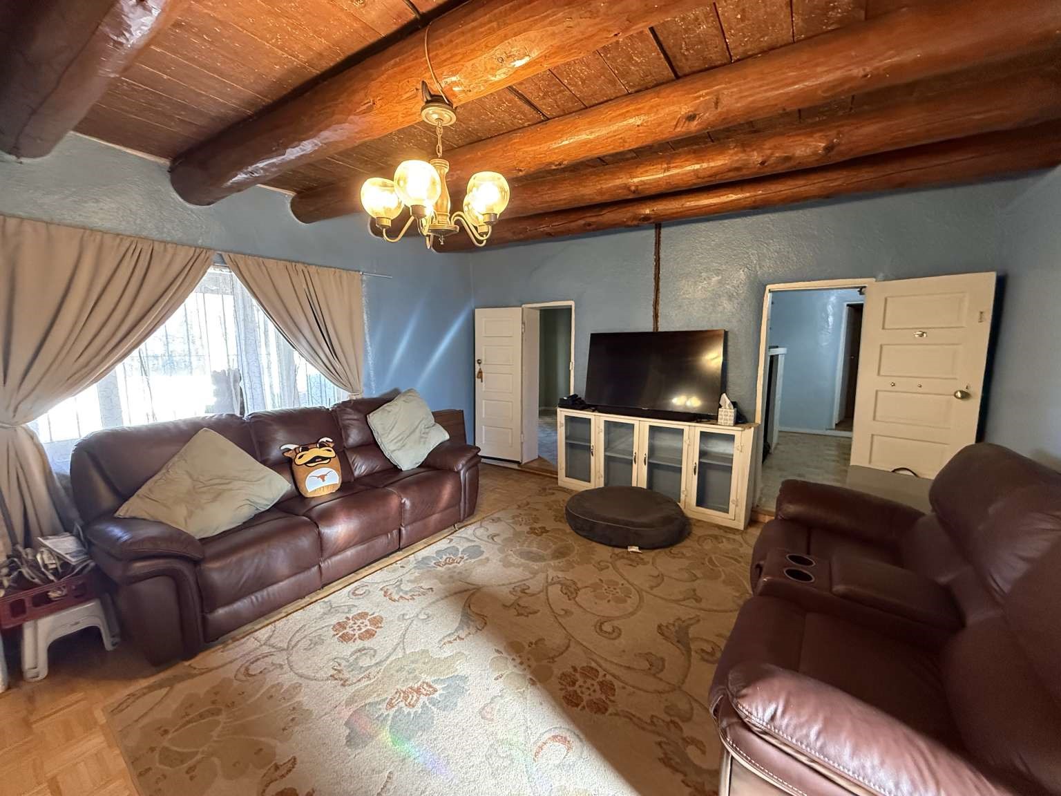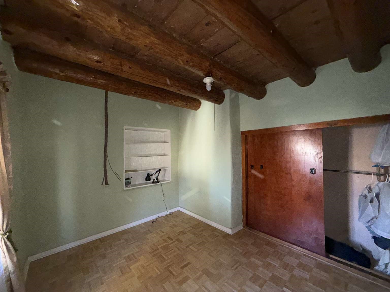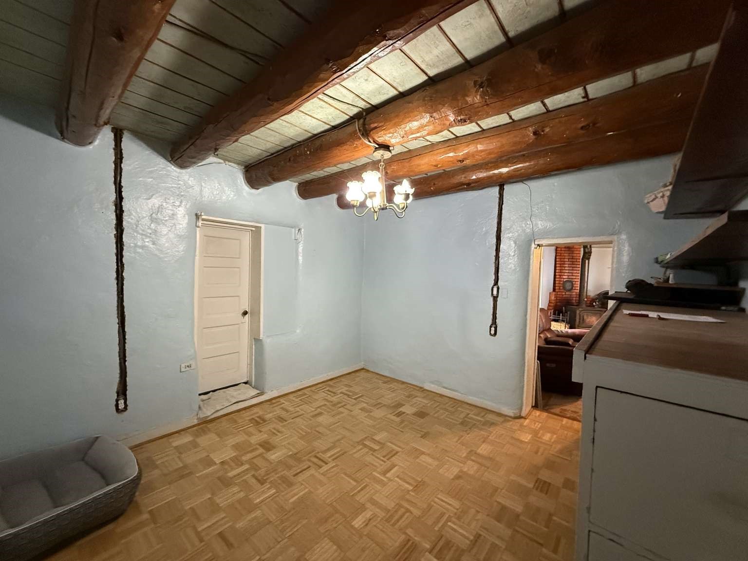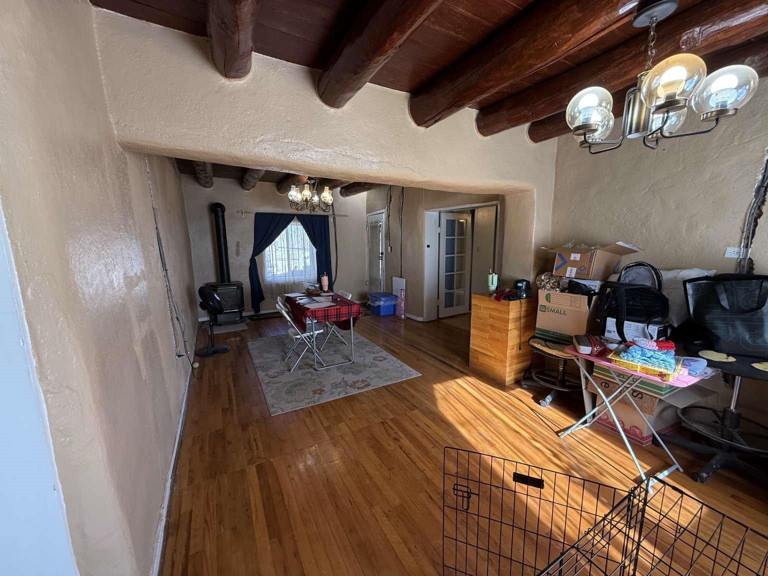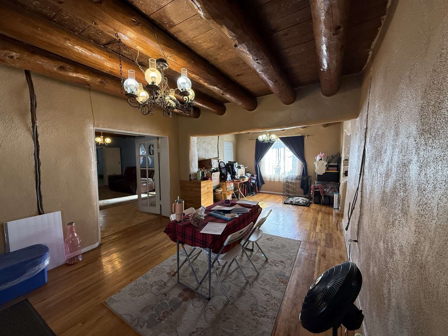 Nestled in Ranchos de Taos, this 2,268-square-foot adobe-style residence offers a unique opportunity on a lush one-acre lot. The exterior features a durable, newly installed metal roof. Inside, find a spacious layout with a full attic and the comfort of a wood stove, heaters, and HVAC. A valuable addition to the property is the inclusion of water rights. This site is ideal for those looking to finalize a vision, as electrical updates are currently in progress. Enjoy a peaceful setting with a courtyard and fruit trees in a sought-after neighborhood.