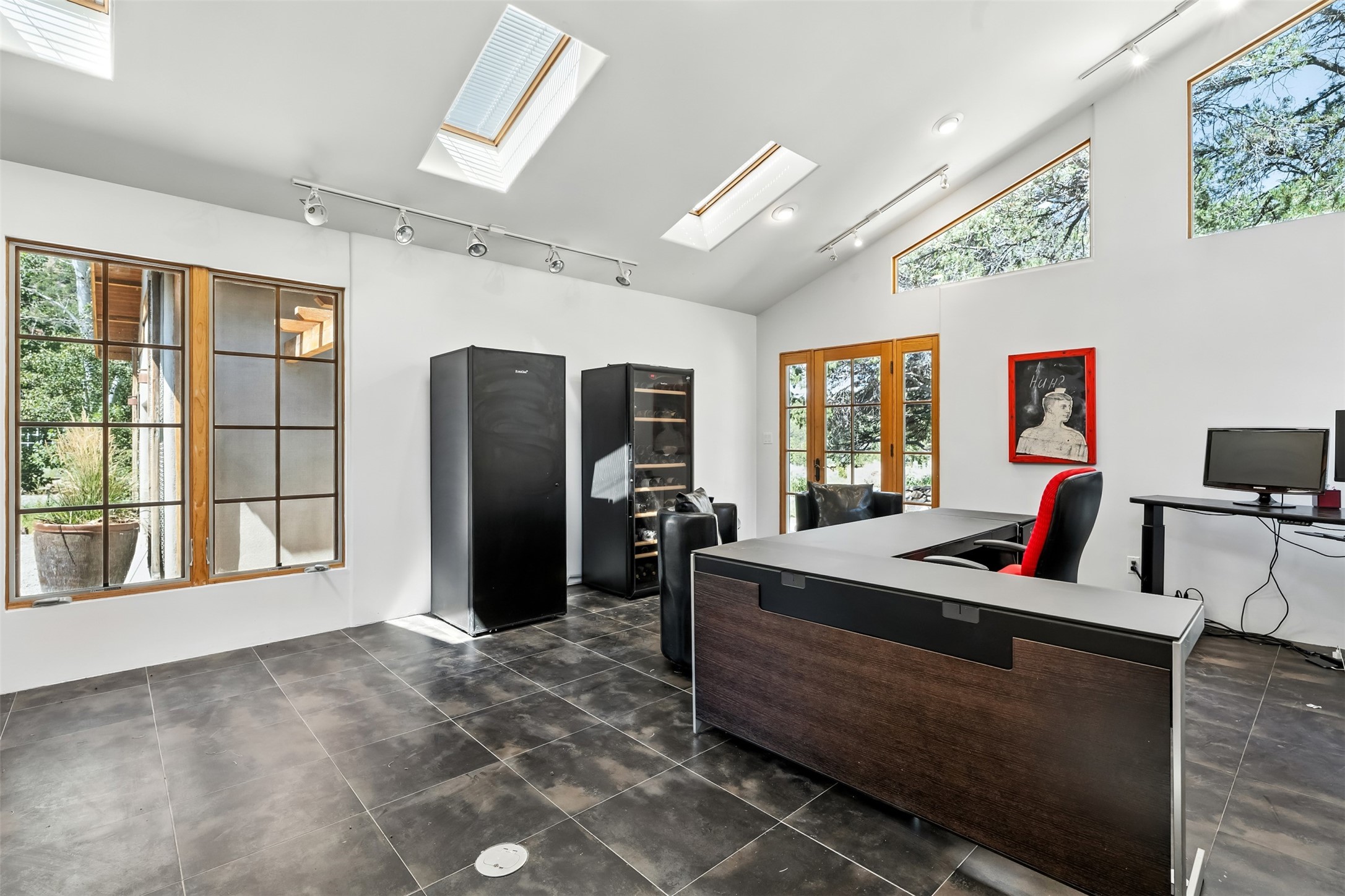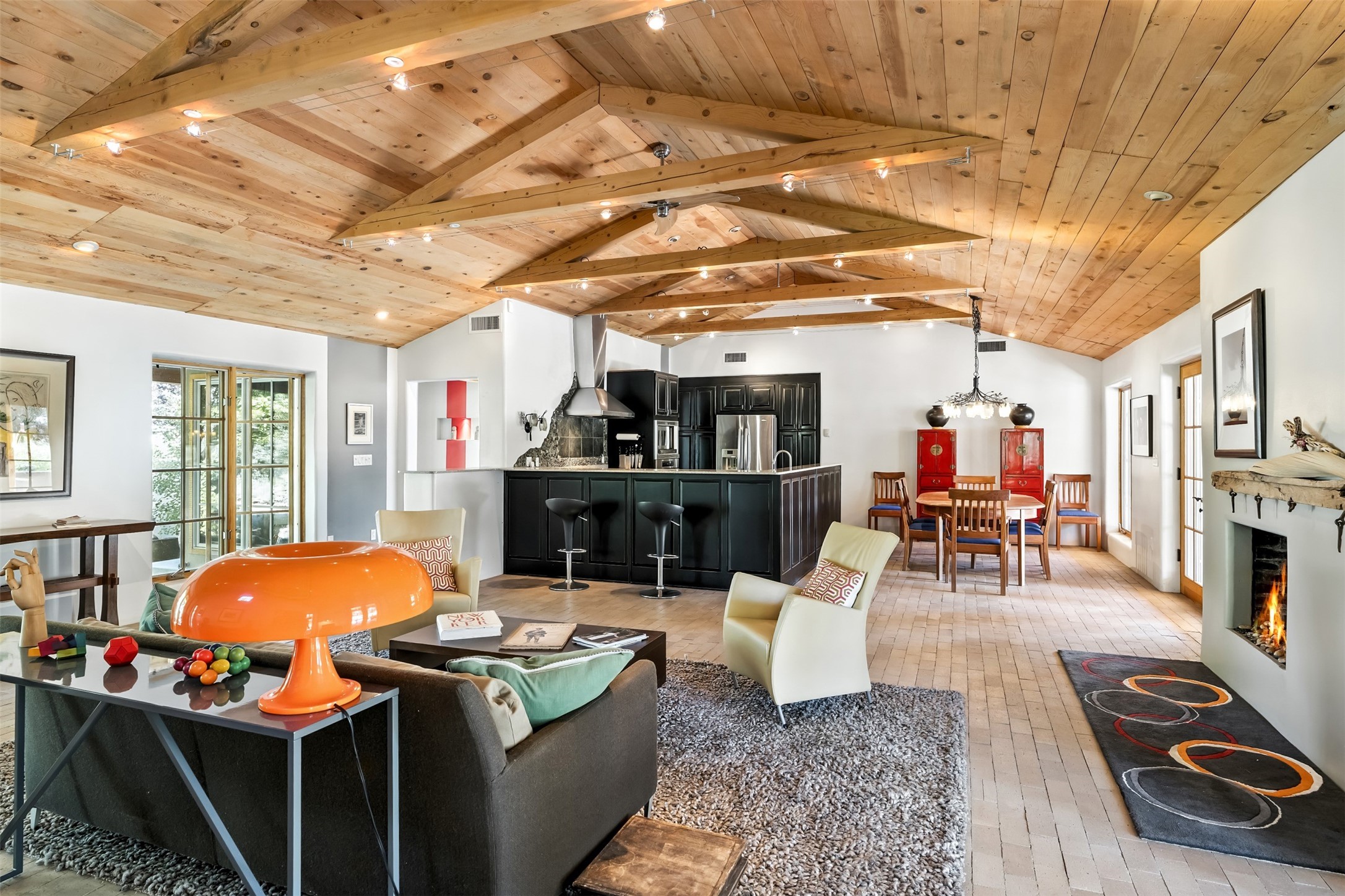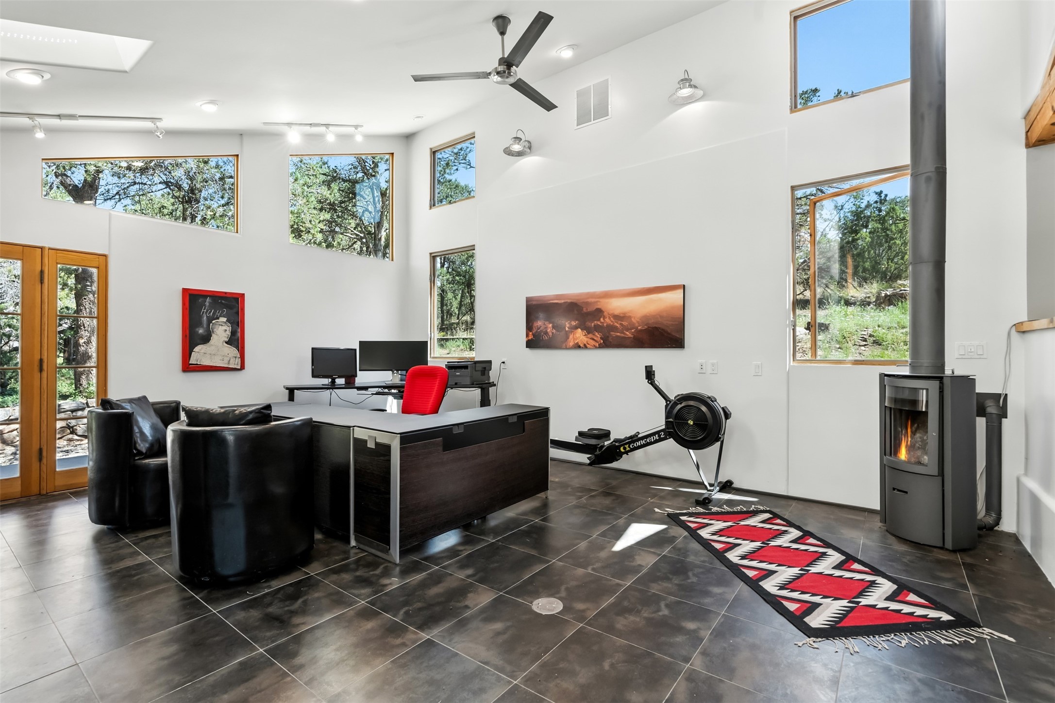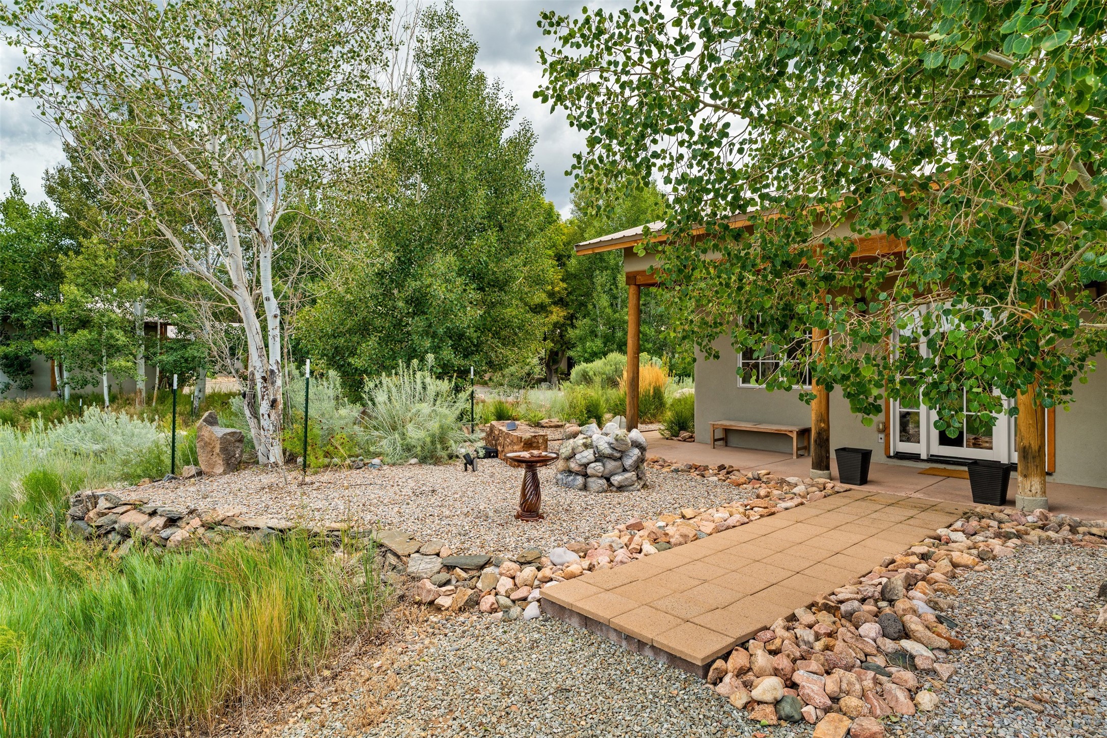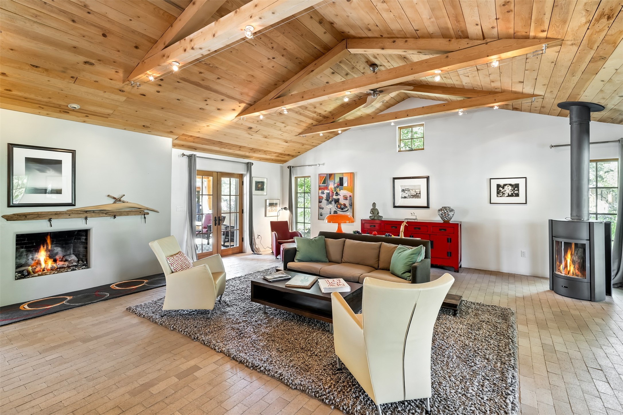 LIVE, WORK, ENTERTAIN, in your own secluded sanctuary located on 7.08 Sunlit Hills acres. 10 Sabina Lane is a sophisticated & contemporary COMPOUND offering a wide variety of living & working spaces in a stunning pastoral setting, 15 minutes from Santa Fe. MAIN HOUSE - 2,187sqft open concept Great Room w/beamed cathedral ceiling, fireplace, Chef's kitchen w/granite counters, high end appliances, 2 spacious bedrooms w/en suite bathrooms, laundry area, 5 sets of French door leading to 58 foot long covered portal. GUEST SUITE - 530sqft is steps from the main house & offers an inviting bedroom, spa inspired bathroom, custom tiles, soaking tub, is adjoined by a private tranquil terrace. STUDIO/OFFICE - 994sqft amazing work space with vaulted ceiling, view windows, areas for an office, art or other work related spaces, powder room & covered portal entry. One would never need to leave the property to conduct all their business or artistic work. CASITA - 683sqft Set apart from the main house, the casita has a full kitchen w/stone counters, kiva fireplace, covered portal, stackable washer/dryer. The casita has produced additional income as an Air B&B GARAGE - 60 sqft Fully finished, 2car capacity, storage areas. GAZEBO -196sqft An inviting space away from the home for meditation & relaxation. PAVILION -241sqft Wonderful retreat area w/fireplace, banco seating, ceiling fan, designer lighting. The property is accessed through a gated entry, a graveled driveway w/recently added retaining wall. Many additional aspects - electric convection stove top, extensive & significant landscaping,10 zone irrigation system,2 owned propane tanks (500 and 250 gallons), 5 fireplaces, an amazing flower filled meadow, healthy pinon, aspen and juniper trees, eclectic river rock pylons, antique wooden bathroom cabinet, a wealth of ceiling fans & mini split in the primary bedroom. For folks seeking a destination, full time live/work situation, please consider 10 Sabina Lane.