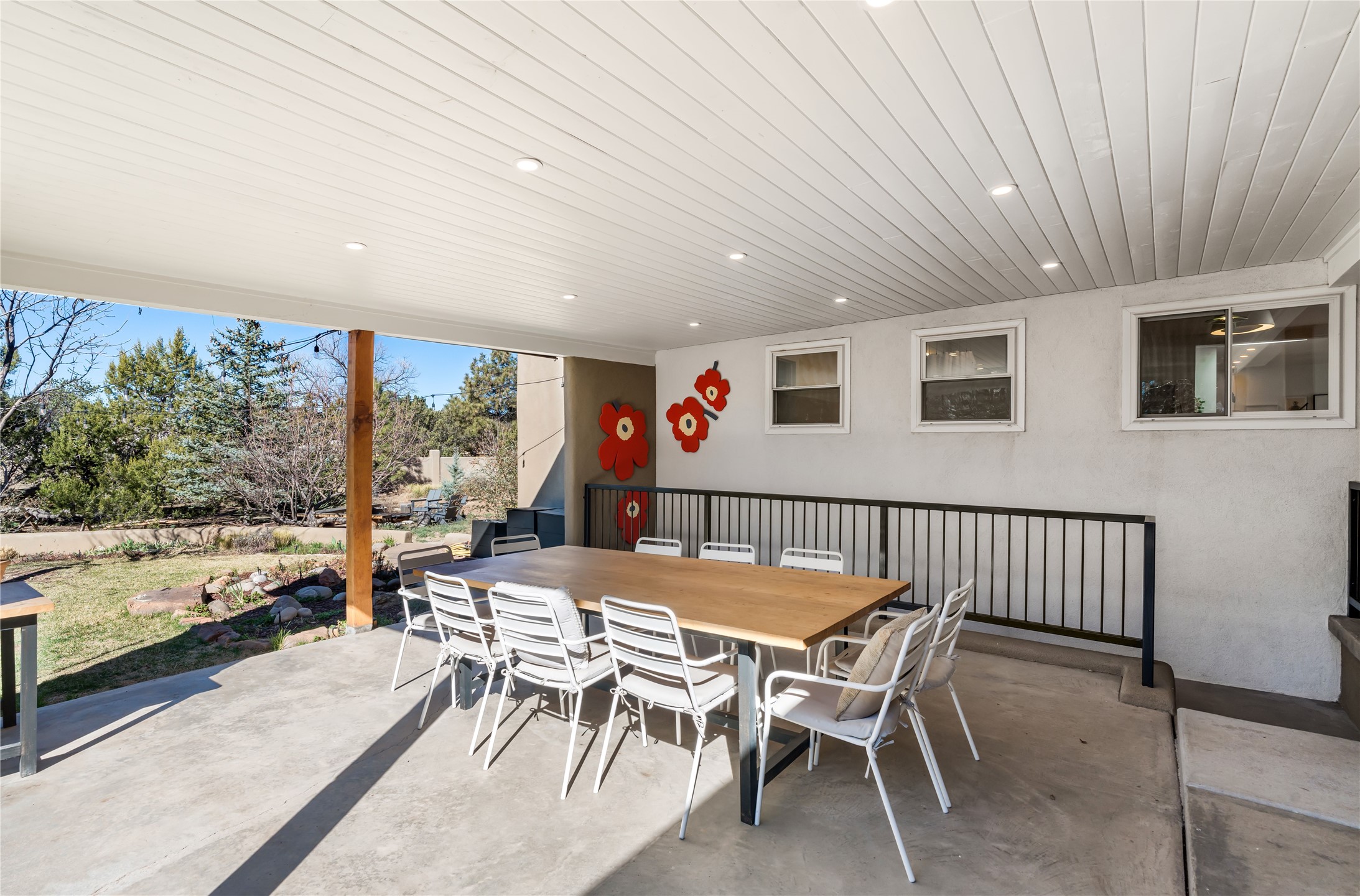 Beautifully remodeled home with conscientious design choices, in the desirable DEVARGAS HEIGHTS neighborhood, just a short stroll to Museum Hill. Located within the sought-after WOOD GORMLEY SCHOOL DISTRICT on a quiet street, this property offers convenient single-level living plus a versatile lower level--perfect for guests, a home office, additional thoughtfully renovated living space for family, recreation or converting into a rental unit. This home has been remodeled with numerous recent upgrades, including ROOF, HEATING and COOLING, SEWER line, STUCCO, WINDOWS, and SOLAR system. Interior improvements feature RENOVATED BATHROOMS and UPDATED KITCHEN, FLOORING, PAINT, BUILT IN ORGANIZATION SYSTEMS and many more. The exterior gardens are perfect for entertaining and have been enhanced with professional landscaping, lighting, a drip irrigation system, and a new custom storage shed. A great home in an ideal location with walking trails nearby, only a five minute drive to the plaza and easy access to the foothills trails, I-25, shopping and Christus St. Vincent Hospital. 4 BEDROOMS 3 BATHROOMS 2 CAR GARAGE
