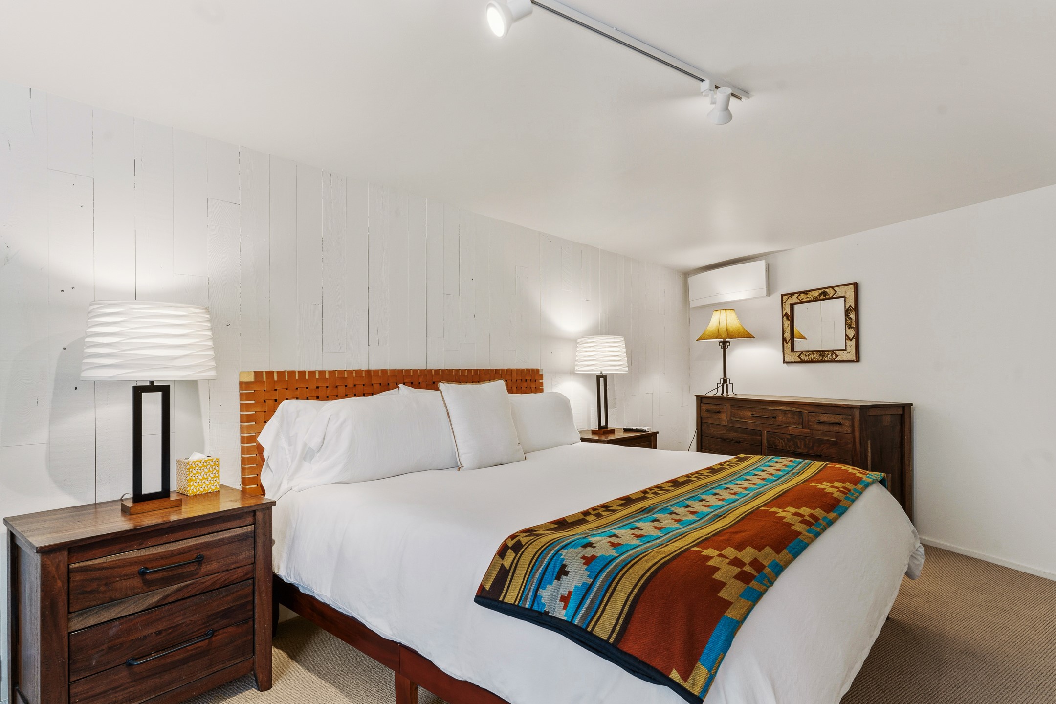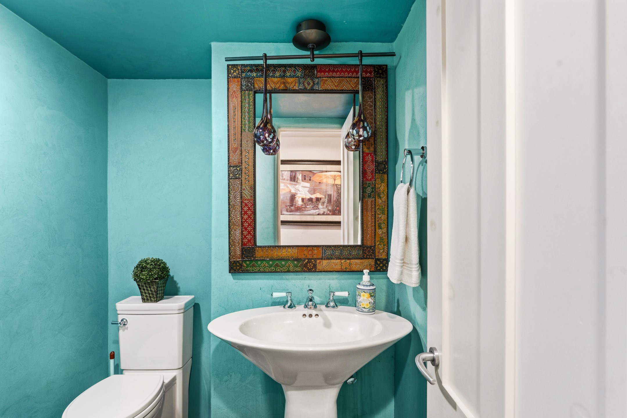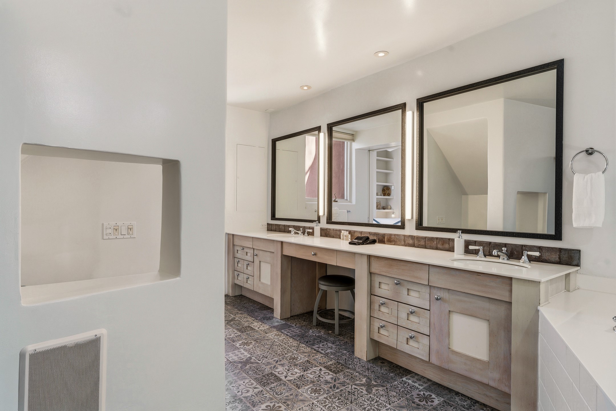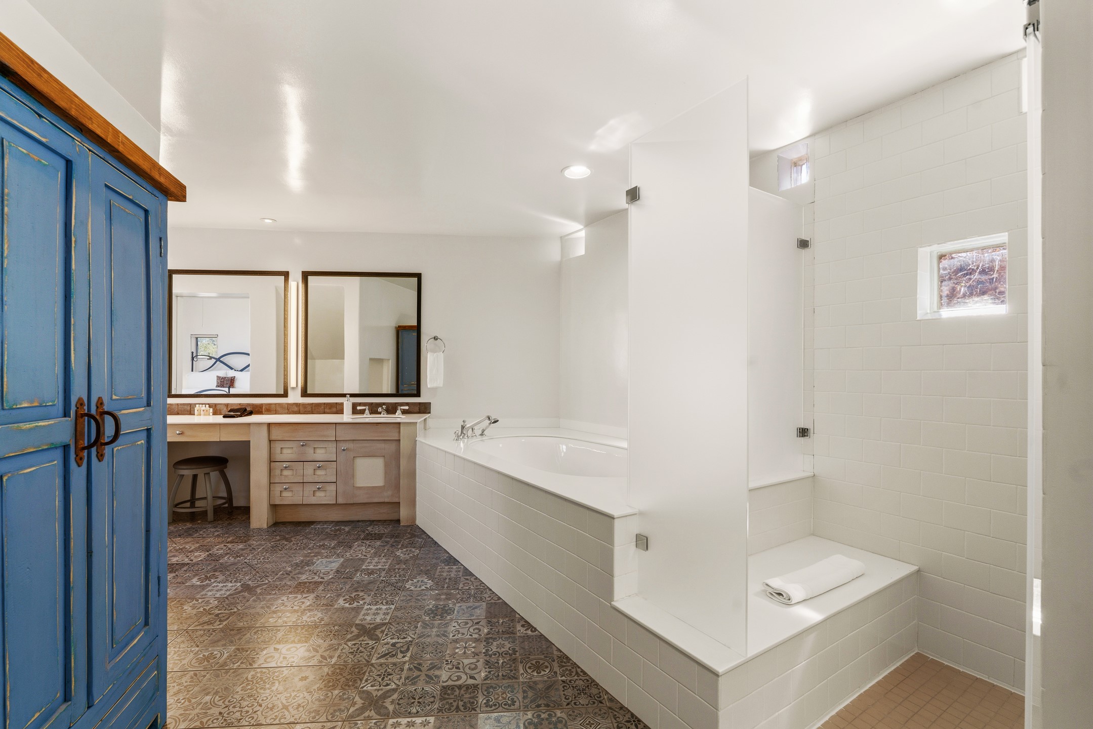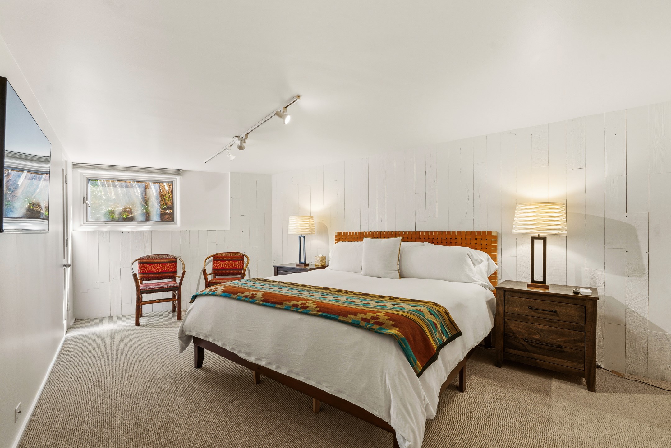 An exceptional offering on Santa Fe's coveted Eastside, moments from Canyon Road, this refined residence on Camino del Monte Sol embodies contemporary design and timeless Santa Fe style. Designed by the award-winning Texas based Lake Flato Architects, the home is a study in light, form, and seamless indoor-outdoor living. The interiors unfold with effortless elegance, with soaring wood-beamed ceilings, a striking modern fireplace, and an artful circular den anchored by a built-in banco beneath a dramatic skylight that draws the sky inward. Expansive glass doors bathe the open living space in natural light, framing tranquil views of the surrounding landscape. The thoughtfully designed kitchen is both light-filled and inviting, with generous windows that connect you to the serenity of the outdoors. Three well-appointed bedrooms and two and a half baths offer comfort and privacy, including a serene primary suite with a spa-inspired bath, soaking tub, and oversized shower. Outdoors, a private sanctuary awaits with lush mature juniper and pion, a gently cascading fountain over river rock, and a peaceful pond that invites quiet reflection. A rooftop terrace, complete with a traditional kiva fireplace, captures sweeping views of the Sangre de Cristo Mountains and the surrounding historic neighborhood. Currently operating as a successful short-term rental, this extraordinary property presents a rare opportunity to own an artful retreat in one of Santa Fe's most treasured locations.