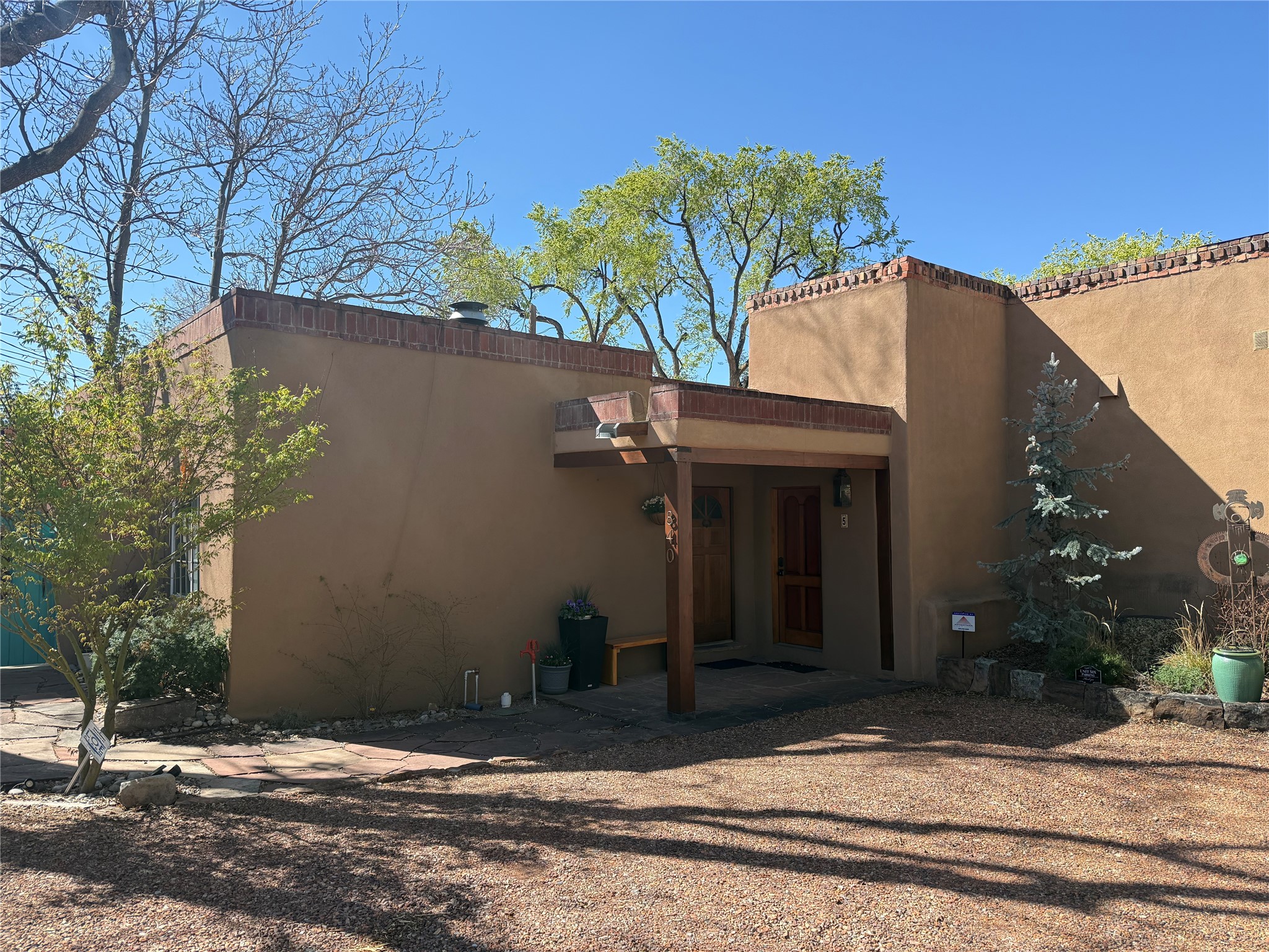 Casita De La Reina! A Perfectly positioned pied--terre in Santa Fe's coveted Historic Eastside, this charming 1-bedroom adobe condo is quite literally a stone's throw from bustling Canyon Road, the Plaza, the River Walk, and Patrick Smith Park. Enjoy effortless access to world-renowned galleries, museums, fine dining, and the vibrant cultural life that defines Santa Fe. This single-level adobe home offers classic Santa Fe style and true lock-and-leave convenience. Step inside to warm, inviting living spaces highlighted by coved ceilings and authentic vigas. Two wood burning fireplaces create a cozy ambiance ideal for relaxing evenings or intimate gatherings. The well-appointed gourmet kitchen features modern appliances, generous counter space, and an eat-in kitchen. French doors open to a spacious private courtyard--perfect for alfresco dining, entertaining guests, or enjoying peaceful mornings with coffee under the iconic New Mexico sky. Framed by river rock walls and flagstone, the courtyard is a secluded oasis designed for both beauty and privacy. Retreat to the serene bedroom, where natural light and thoughtful design elements create a calming, restorative atmosphere. Additional highlights include 2 designated off street parking spaces directly outside Unit #6--an exceptional amenity in this prime Eastside location. Santa Fe's distinctive adobe architecture, rich history, and thriving arts scene make it a city like no other. Immerse yourself in its cultural heritage, savor renowned Southwestern cuisine, and experience the warmth of a community that makes this extraordinary property not just a home, but a lifestyle.