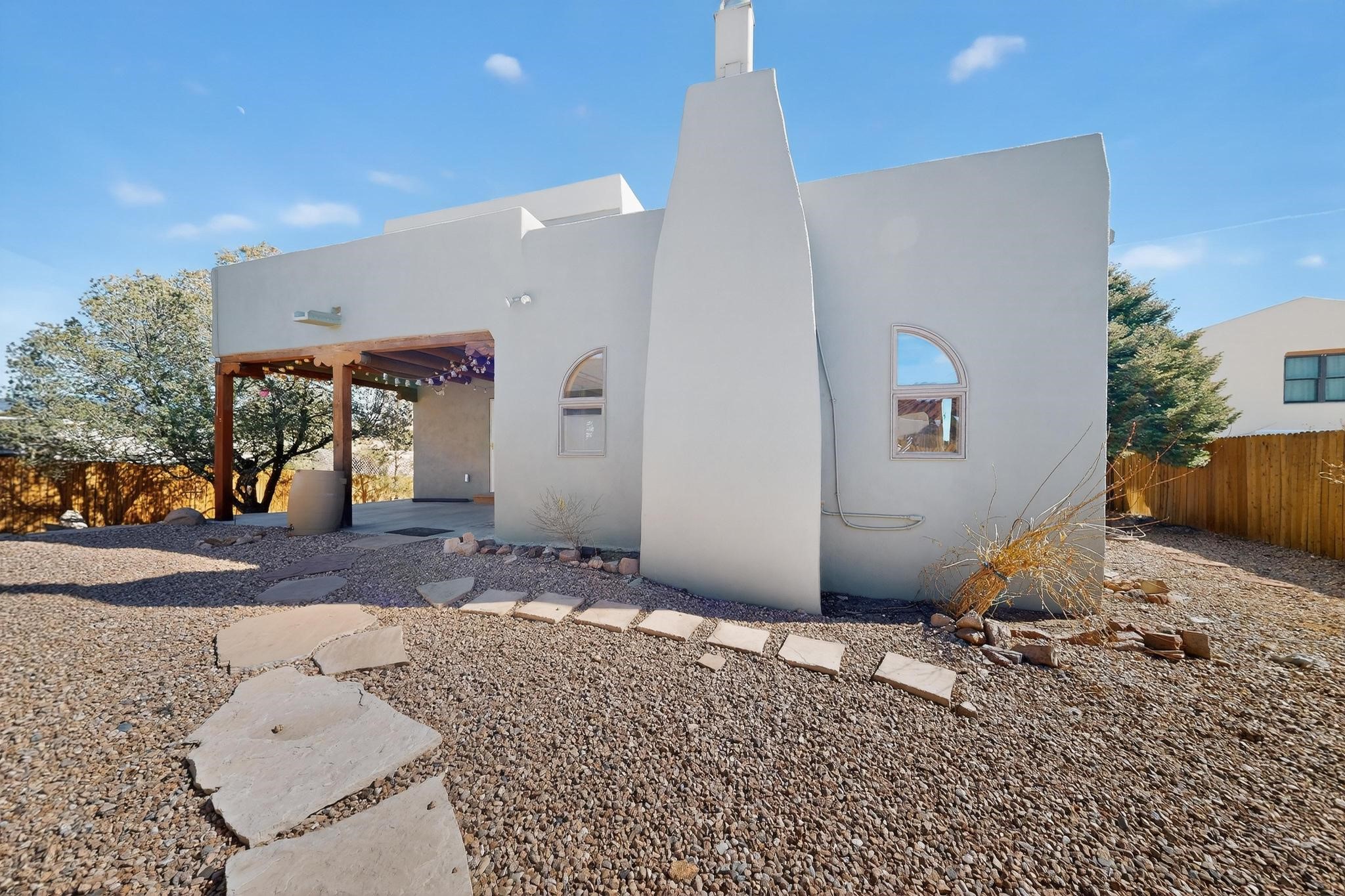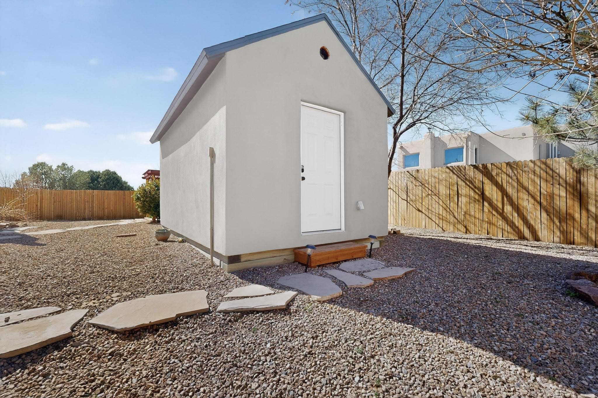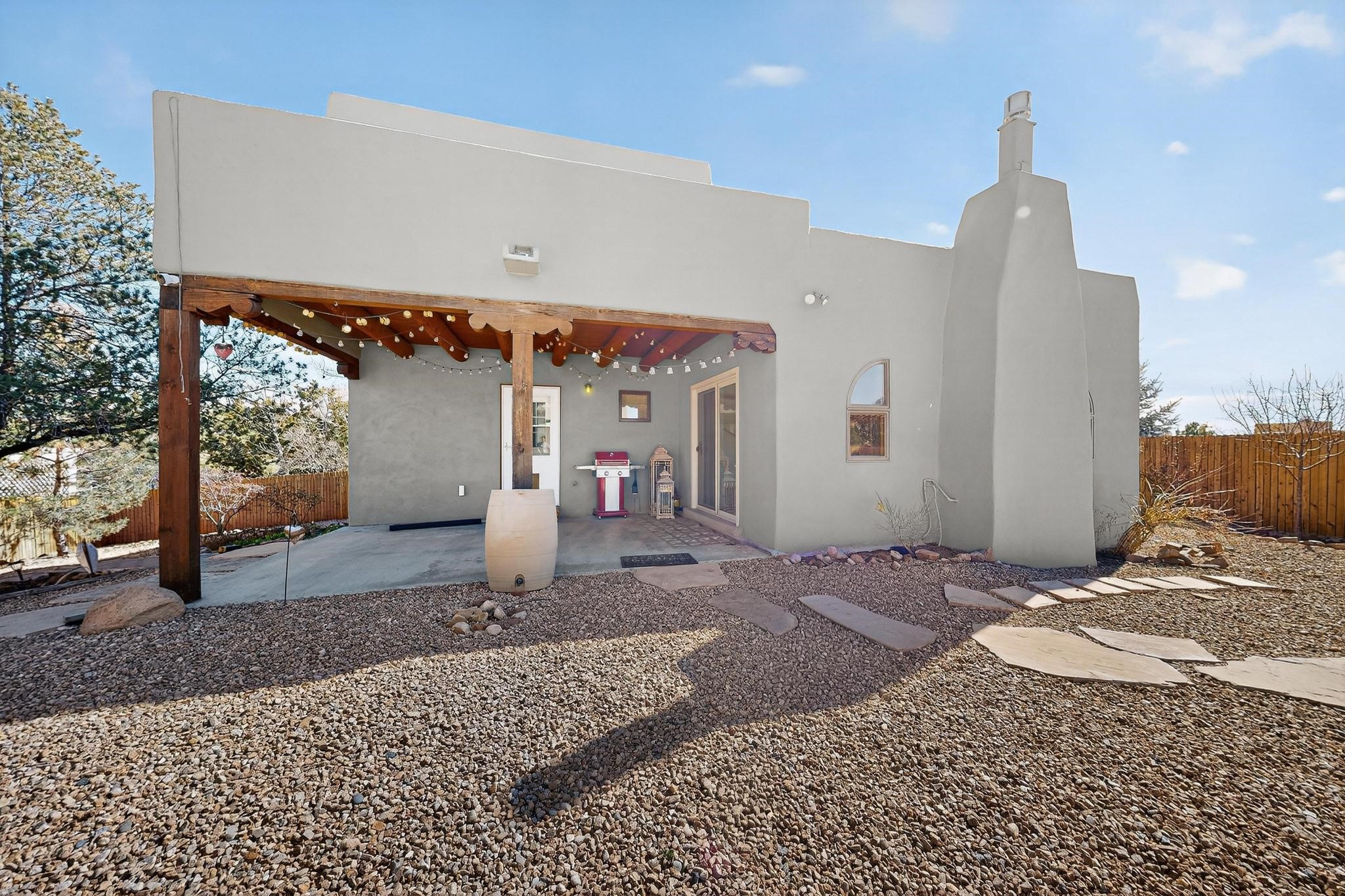 Elegantly renovated and designed with both style and efficiency in mind, this beautifully updated Santa Fe residence offers refined living with a full suite of high-quality upgrades. The home has been thoughtfully improved with a newly refinished roof featuring durable Gaco sealant, fresh stucco exterior, upgraded heating and cooling systems, solar panels, and a new water heater--providing comfort, energy efficiency, and lasting peace of mind.Inside, the home showcases sophisticated finishes and inviting living spaces, including rich hardwood flooring, refinished cabinetry, and stunning quartz countertops. The fully remodeled bathrooms offer a spa-inspired feel, blending modern design with the timeless character that defines Santa Fe living. Every detail has been carefully curated to create a home that is both functional and visually striking. Enhancing the property's appeal is a detached studio complete with its own heating and cooling system--an exceptional bonus space ideal for a private office, art studio, guest suite, or creative retreat. This versatile addition adds both lifestyle flexibility and long-term value. Note: Pictures with furniture are virtually staged photos.