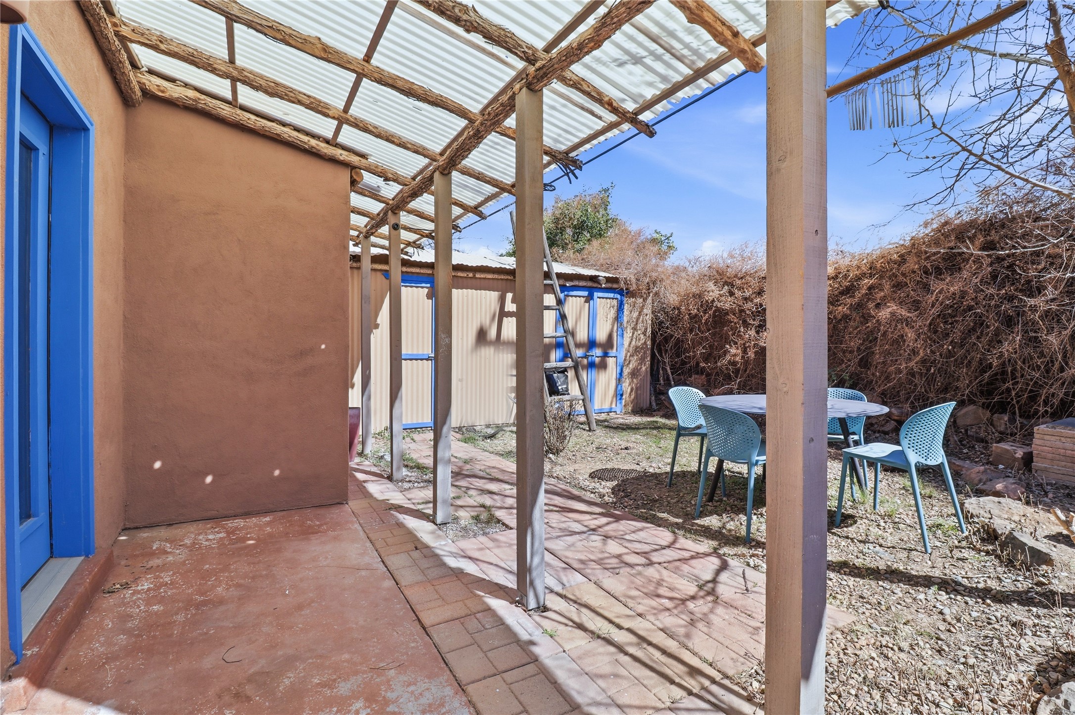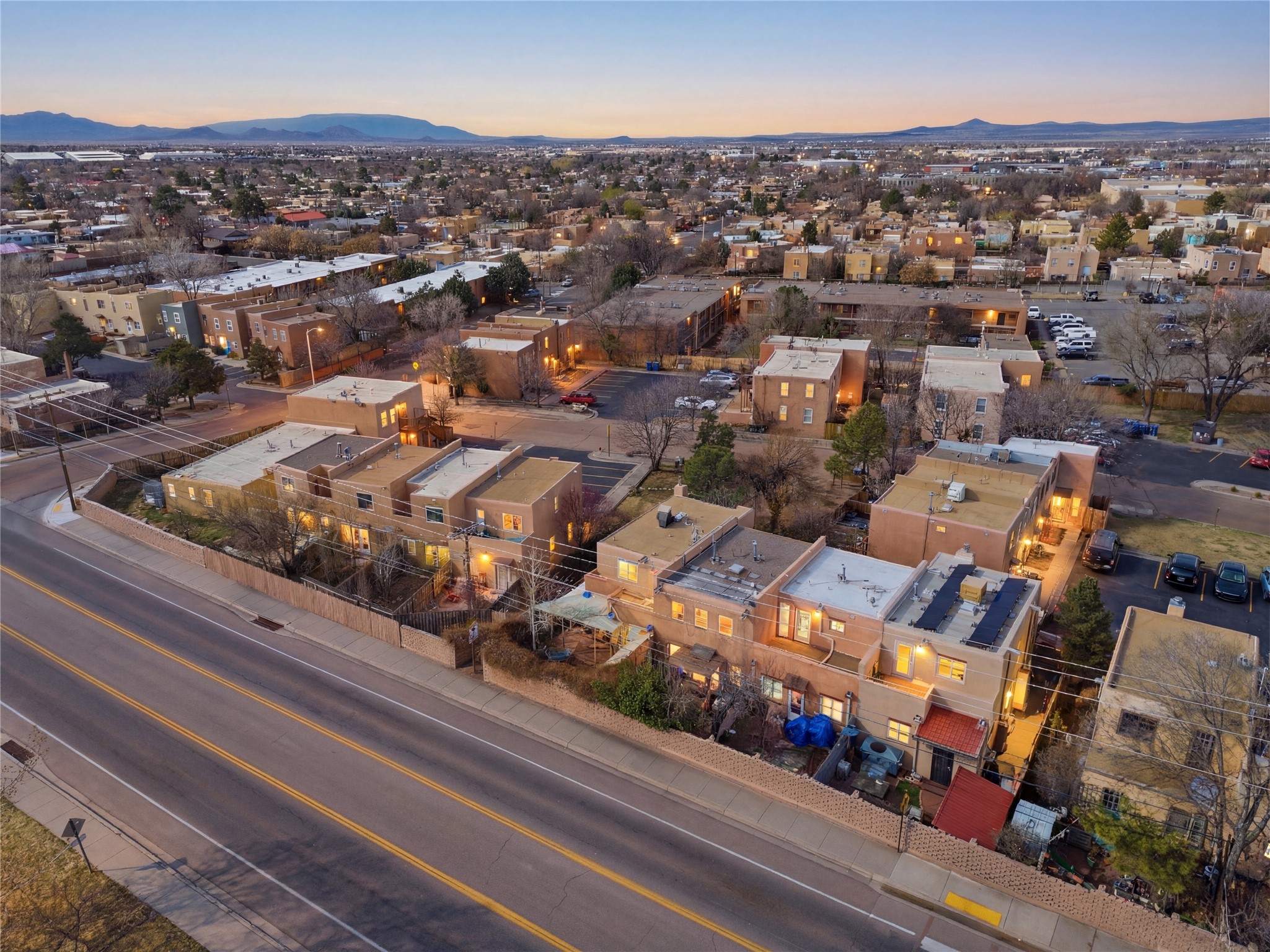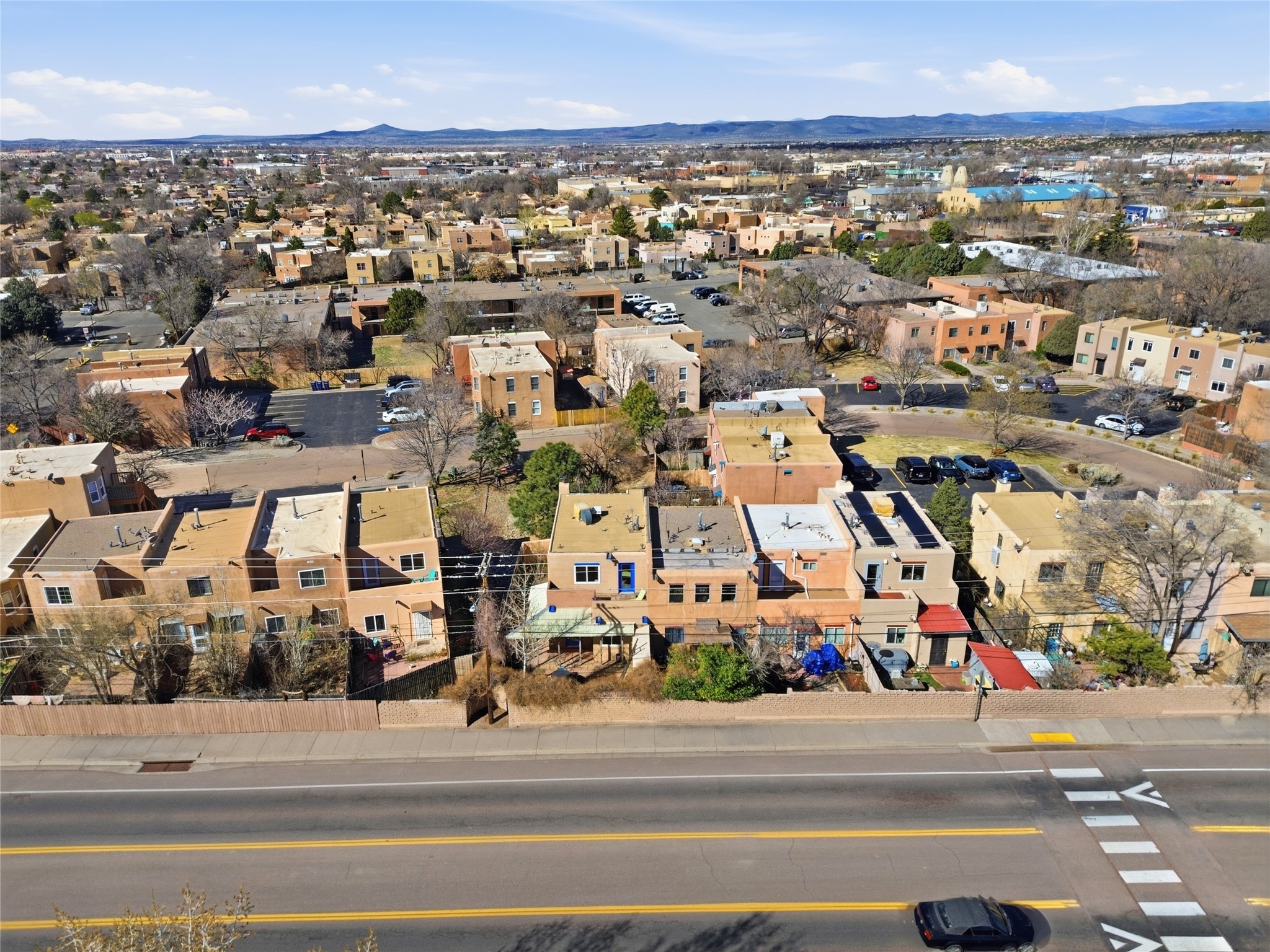 Super sweet townhome in Casas Carlos Rey! This rare 3-bedroom, 2-full-bath corner unit offers exceptional privacy and charm in a central Santa Fe location. As an end unit, it features a fully enclosed, wrap-around outdoor space--including a private backyard with storage shed, side yard, and front yard--perfect for relaxation and gardening. Layout highlights include a modern kitchen updated kitchen, one bedroom and one full bath downstairs for easy accessibility, plus two bedrooms and one full bath upstairs. Upstairs bedrooms offer large closets, and one features a private balcony/deck with mountain views of the Sangre de Cristo range and open space at nearby Francis X. Nava Park. Prime proximity to shopping, parks, restaurants, schools, and downtown Santa Fe. This extremely rare find combines Santa Fe style, modern comfort, convenience and affordability--ideal as a primary residence, starter home, second home or smart investment property.