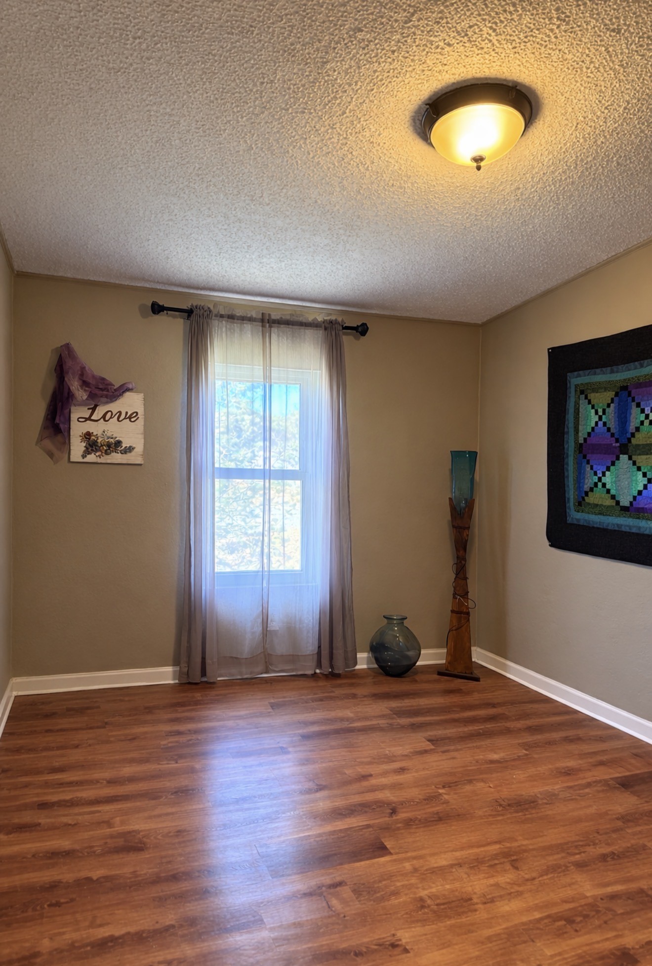 On a spacious one-acre lot with beautiful mountain views. This Manufactured Home features an inviting open floor plan with a cozy wood-burning fireplace, vinyl wood flooring, and ceramic tile throughout, creating a warm and welcoming living space. Recent updates provide peace of mind, including new stucco and windows installed in 2020, along with a new furnace installed in August 2024. Tranquil outdoor setting; A flagstone walkway connects the side parking area to the home's entrance and leads to a relaxing outdoor spa, surrounded by coyote fencing and beautiful wisteria. The property offers fruit trees,stunning mountain views from the front porch, and plenty of space to enjoy the outdoors, making it perfect for gardening, entertaining, or simply relaxing in nature. Close proximity to the La Tierra Trail System and Buckman MX Track. Convenient access to Highways 599 and 285 allows for an easy commute, while shopping, dining, and amenities at DeVargas Mall are just about 12 minutes away.