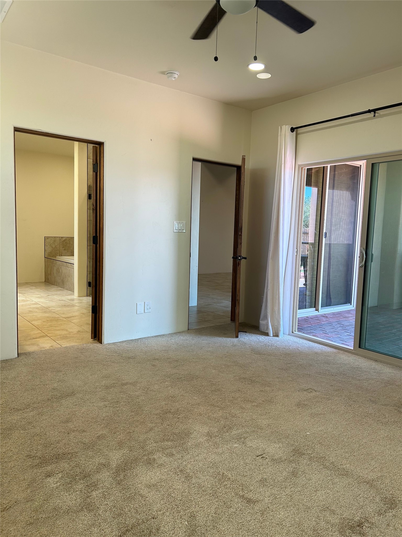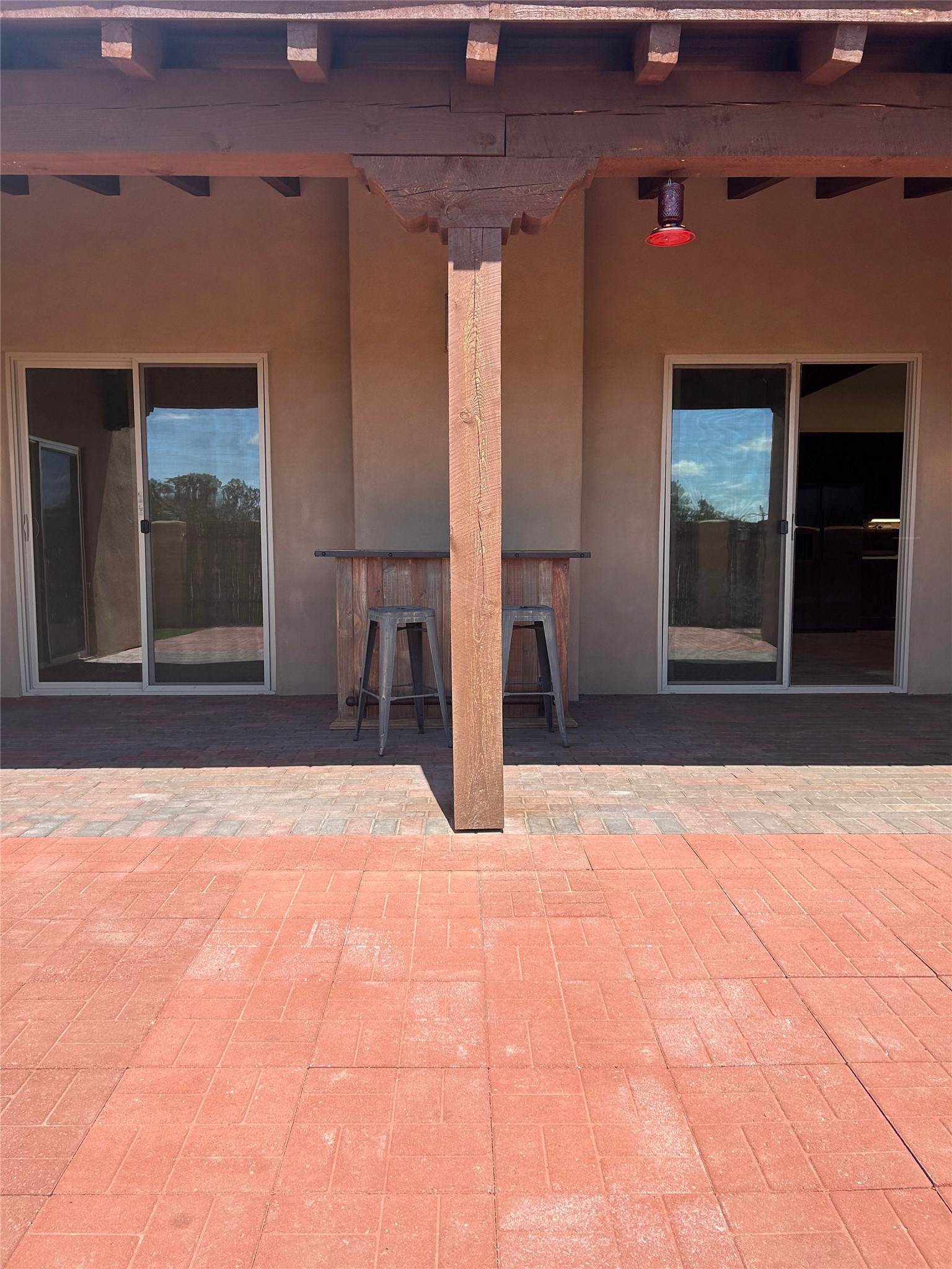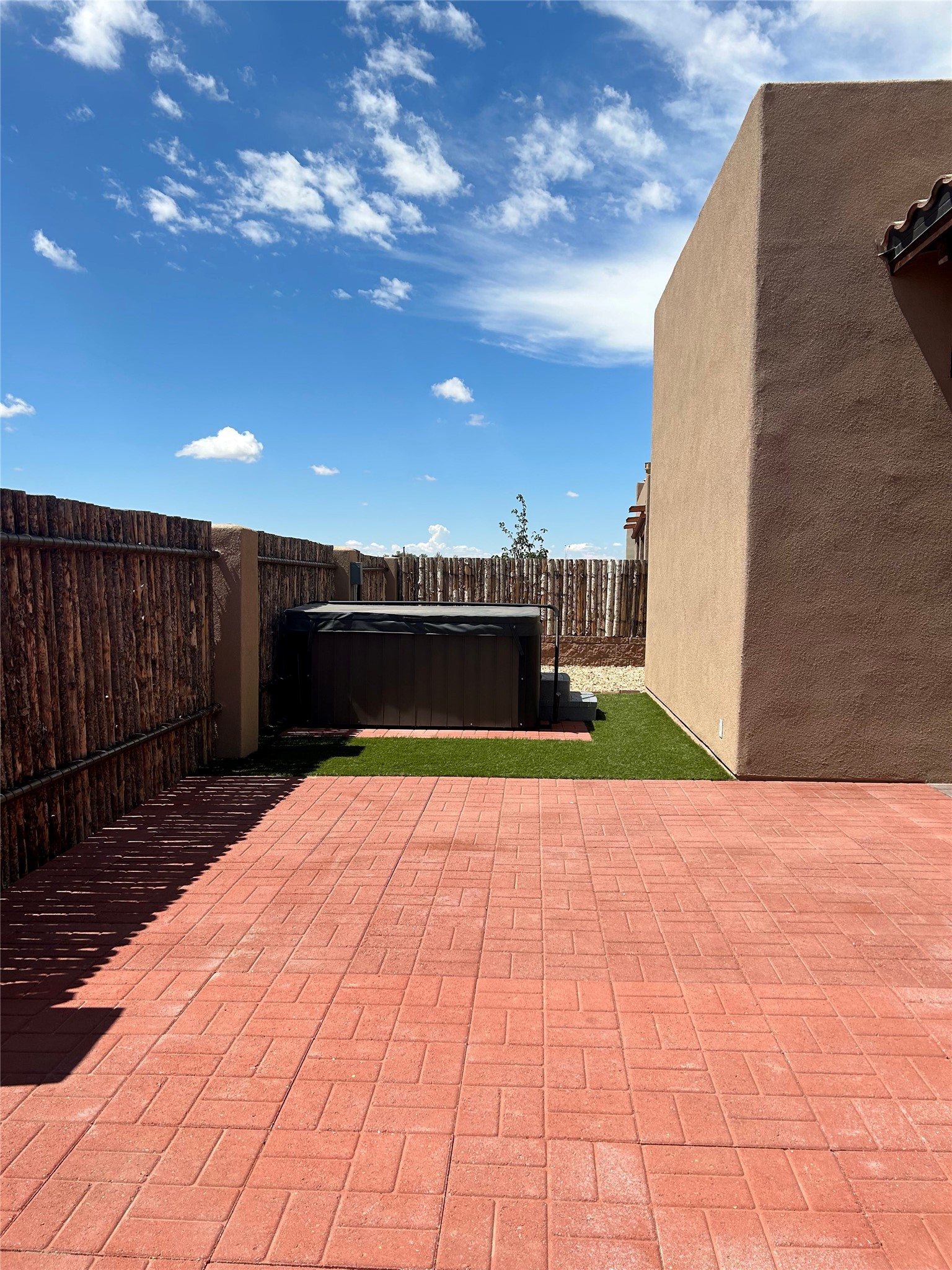 Located in the desirable La Pradera community and tucked away in the very back, this Santa Camila plan offers a seamless blend of comfort, style, and convenience. The pitched tile roof and stamped concrete driveway lead to a three-car garage, all framed by low-maintenance Santa Fe brown gravel landscaping.Step through the beautiful entry door into a foyer with a graceful barrel-vault ceiling. Just off the entry, a versatile room with 14-foot ceilings and a kiva-style fireplace serves perfectly as a home office or guest suite. On the opposite side, a powder room and spacious hall closet provide added functionality.The living area features wood beams and tongue-and-groove ceilings, opening to a covered portal with brick pavers--perfect for indoor-outdoor living. The adjacent kitchen includes double ovens, a walk-in pantry with skylight, and a utility room with a laundry sink and cabinetry.The owner's suite opens to the portal and includes a walk-in shower with rain head and handheld fixture, a soaking tub, and a spacious walk-in closet. The backyard is designed for easy enjoyment with zero-maintenance turf, a newer hot tub, and a dedicated dog run. A private gate leads directly to La Pradera's open space and miles of scenic trails--ideal for peaceful walks and stargazing.Commuting is easy with quick access to I-25 and Highway 599, and nearby dining favorites include local spots around the southside of Santa Fe.