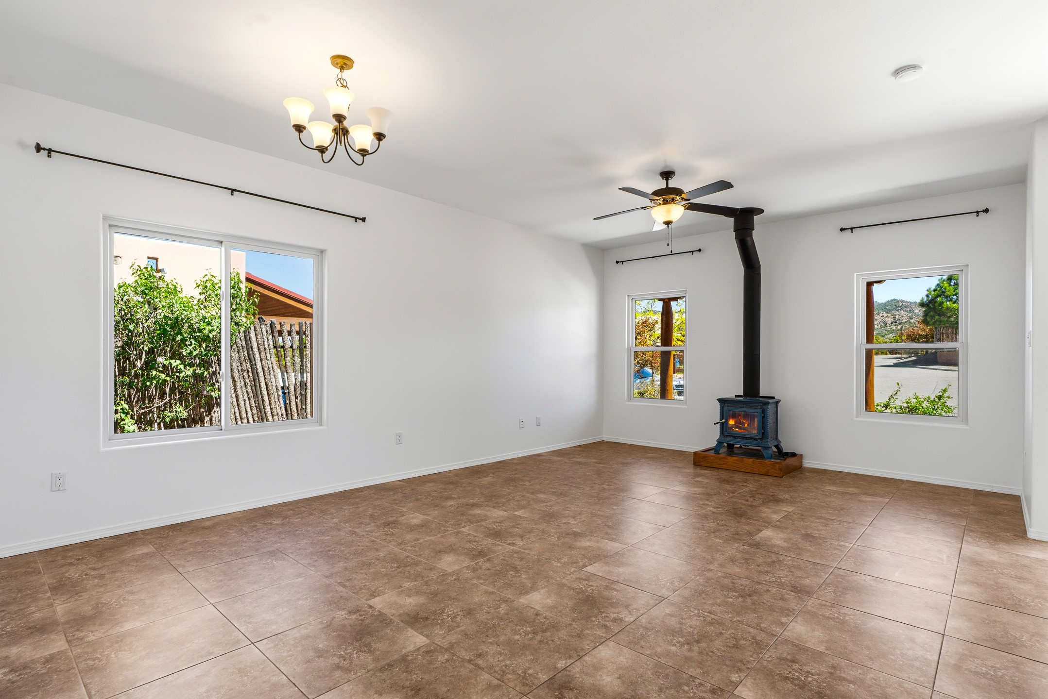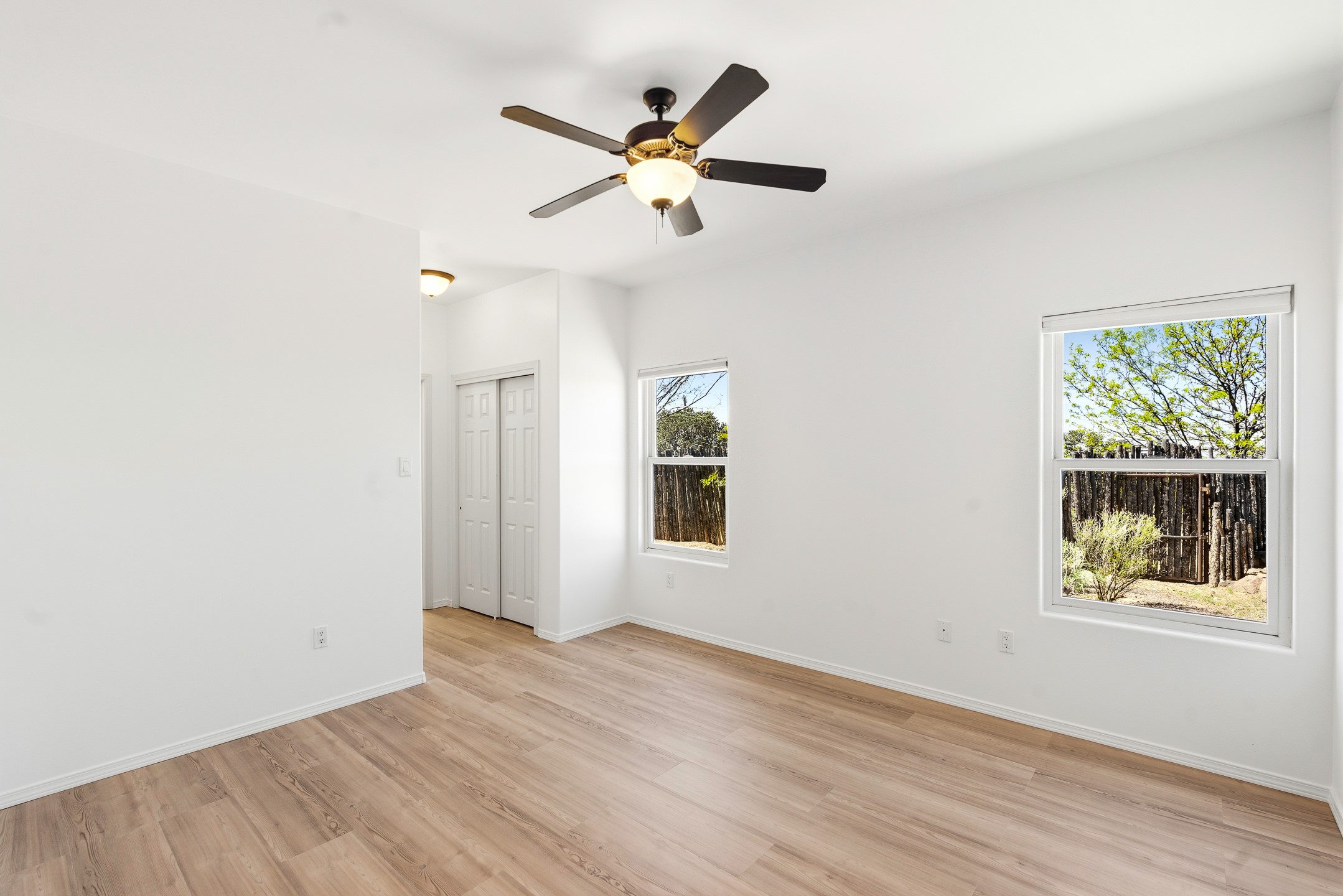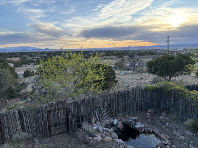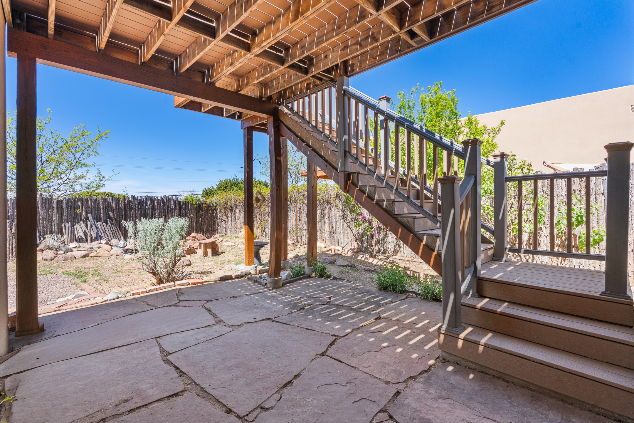 Experience the magic of Santa Fe living in this meticulously maintained, solar-powered home in the desirable Wood Gormley school district. Relax on your private rooftop deck, taking in breathtaking mountain views and iconic New Mexico sunsets. The fully fenced backyard, complete with circulating pond, provides an oasis for relaxation. Inside, enjoy a bright, open-concept design featuring 9-foot ceilings, fresh paint, new flooring, and a brand-new furnace for in-floor radiant heating. This award-winning, energy-efficient home combines premium efficiency with comfort, all on a quiet cul-de-sac perfectly positioned for easy access to downtown, shopping, and I-25.