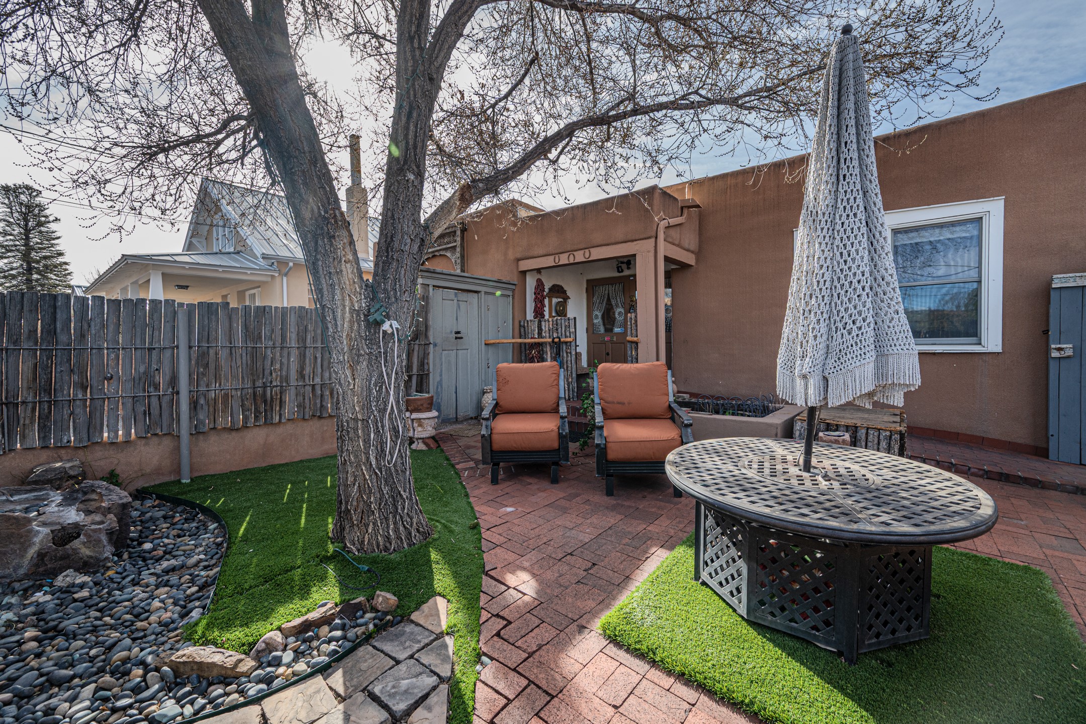 Available to the public for the first time, this former law practice turned residence nestled in the heart of downtown Santa Fe offers an extraordinary blend of charm and versatility. Zoned for both residential and commercial use, this property presents a remarkable opportunity for homeowners and entrepreneurs seeking a dynamic downtown presence. With over two thousand square feet of heated space, the property features beautiful wood flooring, 5 rooms and 2 baths, and private courtyards in front and in back, perfect for tranquil mornings or evening gatherings under the New Mexico sky. The location is truly unmatched -- step outside and walk to world-class dining, galleries, and cultural landmarks. The Plaza sits just moments away, ideal for leisurely strolls. Ample parking ensures convenience for residents and guests alike, a rare luxury in this coveted neighborhood. Whether you envision a peaceful retreat or a thriving business space, the possibilities here are boundless. Schedule your private showing today and discover the magic of downtown Santa Fe living.