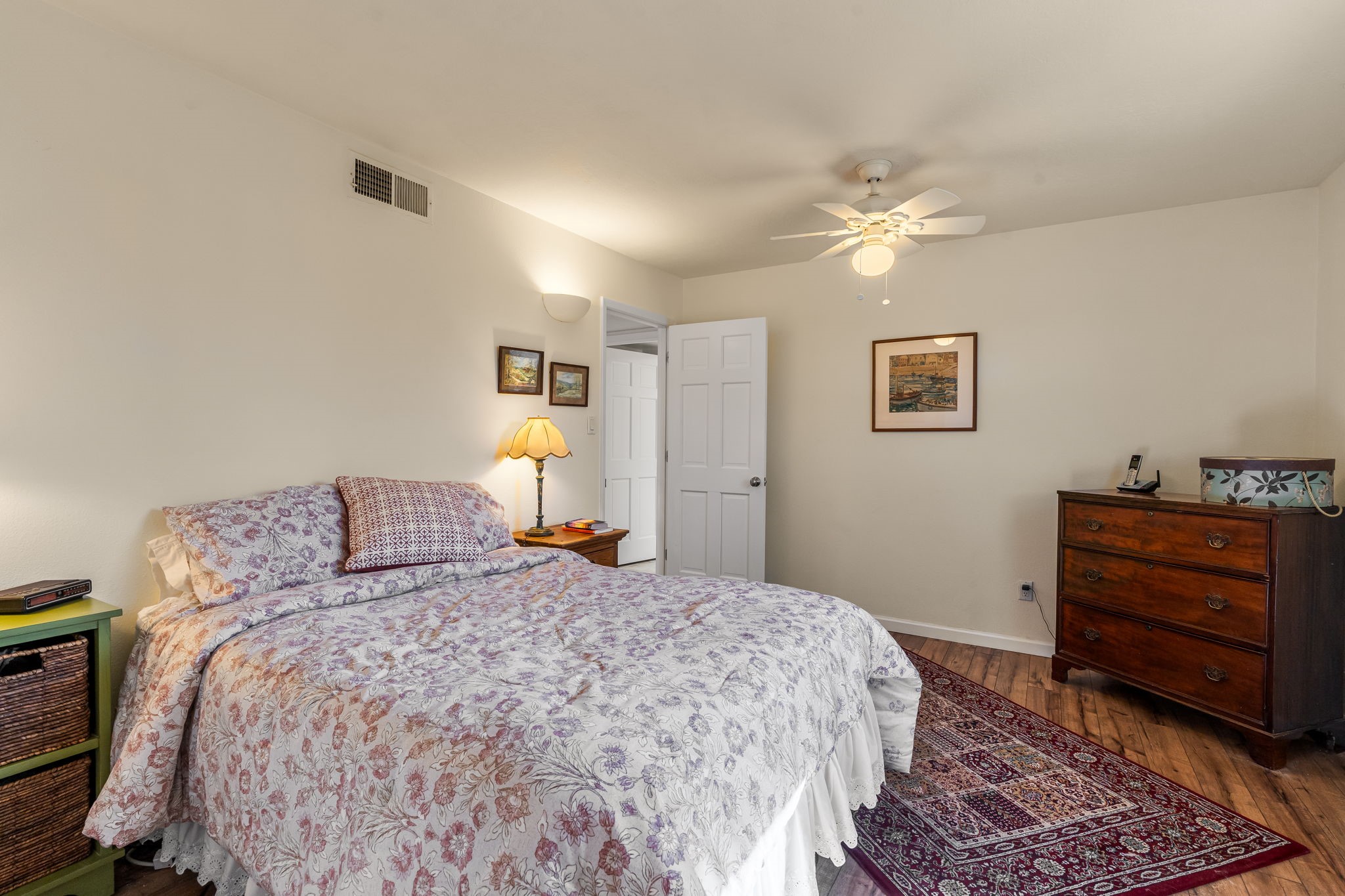 Filled with natural light and lovingly cared for over the past 30 years, this inviting single-story townhouse offers comfort, beauty, and an exceptional Park Plazas setting. With open space on three sides, the home enjoys a wonderful sense of privacy along with views of the Jemez Mountains, where sunsets are especially beautiful, as well as glimpses of the Sangre de Cristo range. Inside, the living and dining room feel warm and welcoming with beautiful laminate flooring, a corner Kiva fireplace, and sliding doors that open to a covered portal--an ideal place to relax and take in the surroundings. The kitchen has been thoughtfully updated with newer appliances, including a convection oven, Silestone countertops, a subway tile backsplash, a granite composite farm sink, and two skylights that bring in even more light. A sunny breakfast area with a cozy window seat adds to the home's charm. The spacious primary bedroom is bright and peaceful, and the updated bath features granite counters and a beautifully tiled walk-in shower. Additionally, there is a lovely second bedroom and full bath as well as a detached 2 car garage. This home is sparkling and ready for its new owner. Located in the centrally situated Park Plazas neighborhood, residents enjoy miles of walking trails, tennis courts, an off-leash dog park, and easy access to shopping, dining, and the Santa Fe Plaza.