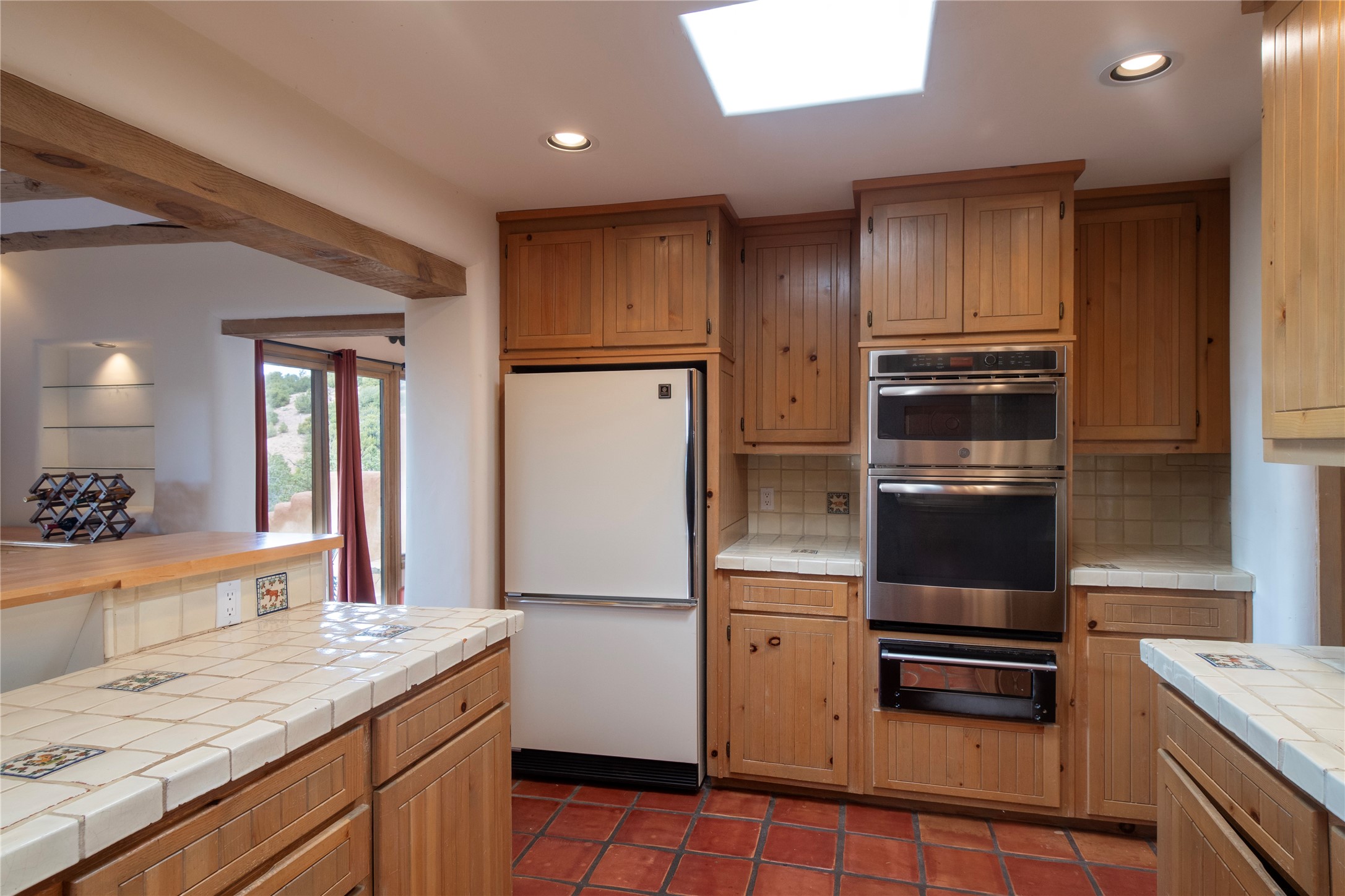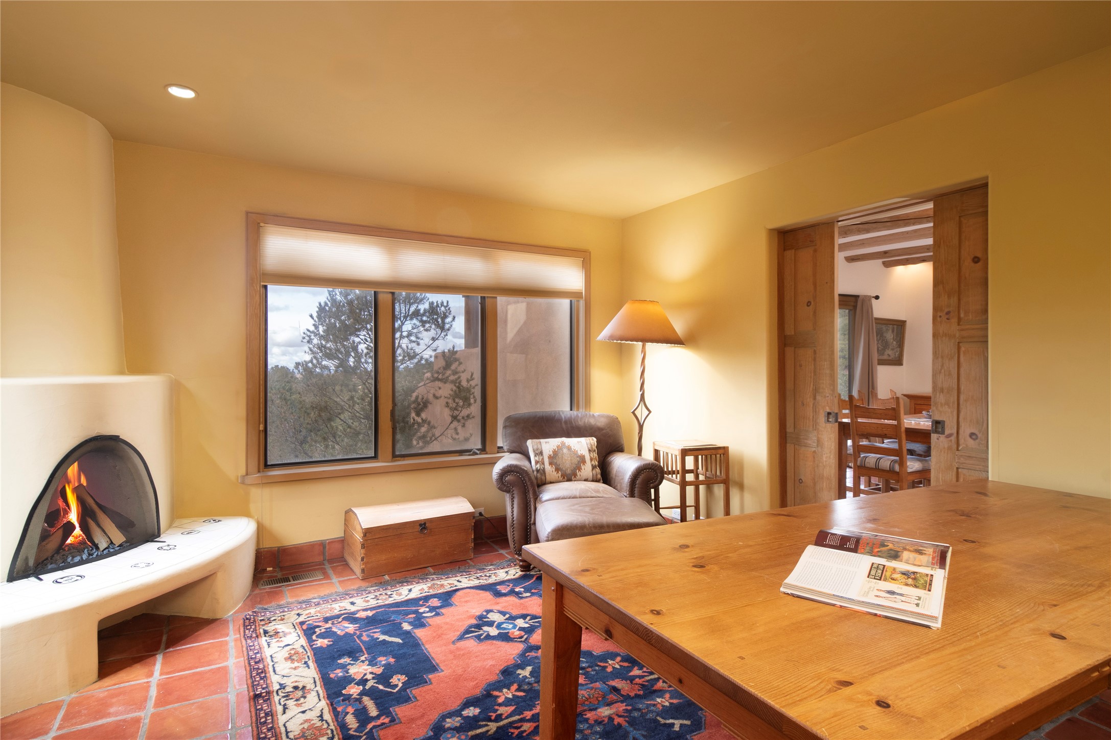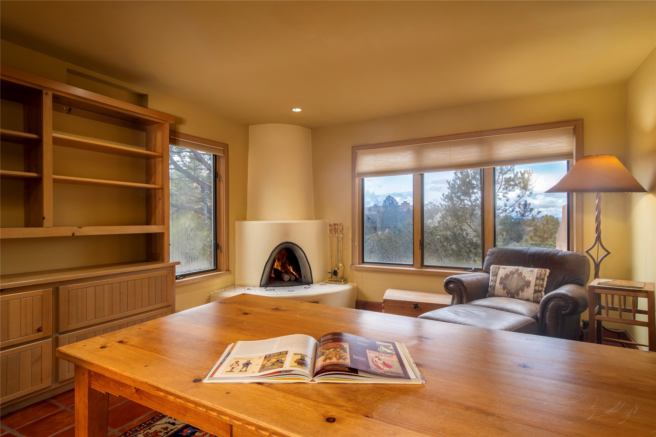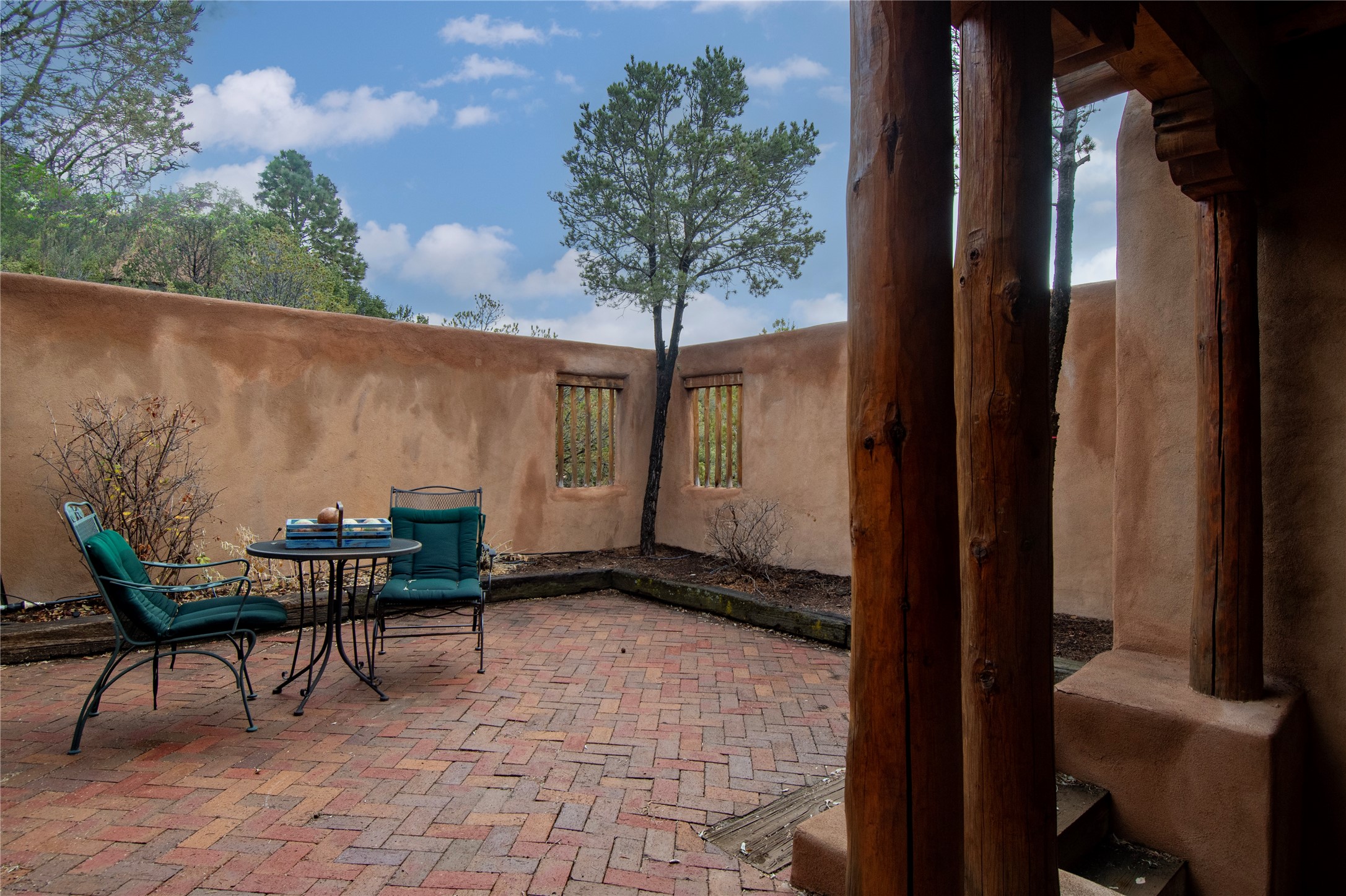 Beautifully sited among mature pion and juniper, this warm Pueblo-style home offers 3 bed 3 bath and stunning views of the Jemez mountains. Light-filled living and dining spaces connect seamlessly to a charming kitchen with wood cabinetry, skylights, and tile accents. The home includes a dedicated office, a serene primary suite, comfortable guest accommodations, and a finished lower level with additional living space, storage, and a well-appointed laundry room. Outdoor living is exceptional with an intimate walled patio, view-filled deck, and natural desert landscaping. A spacious garage and tranquil setting complete this inviting Santa Fe retreat.
