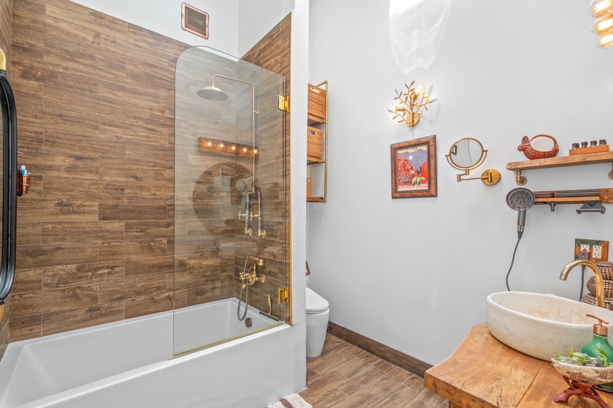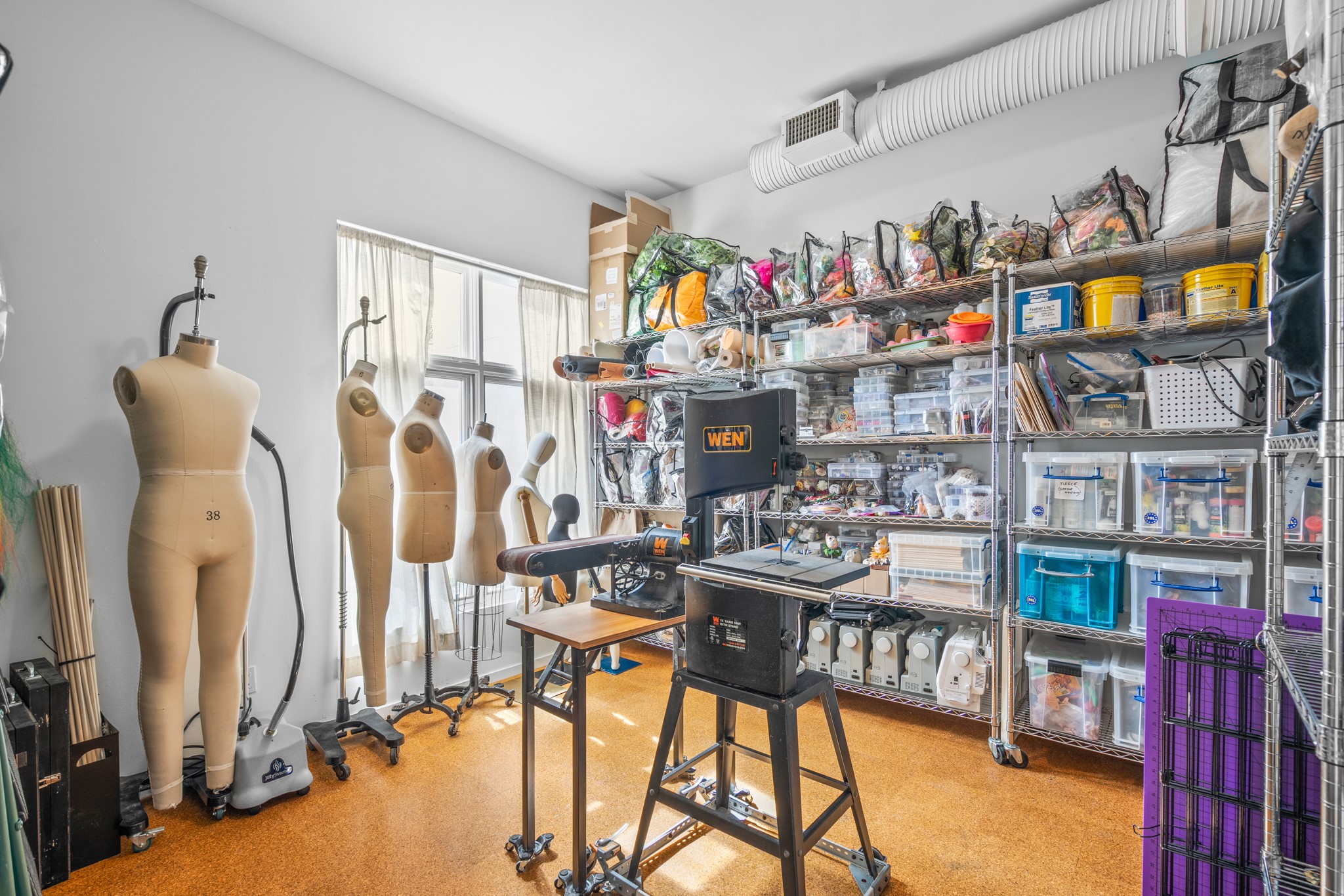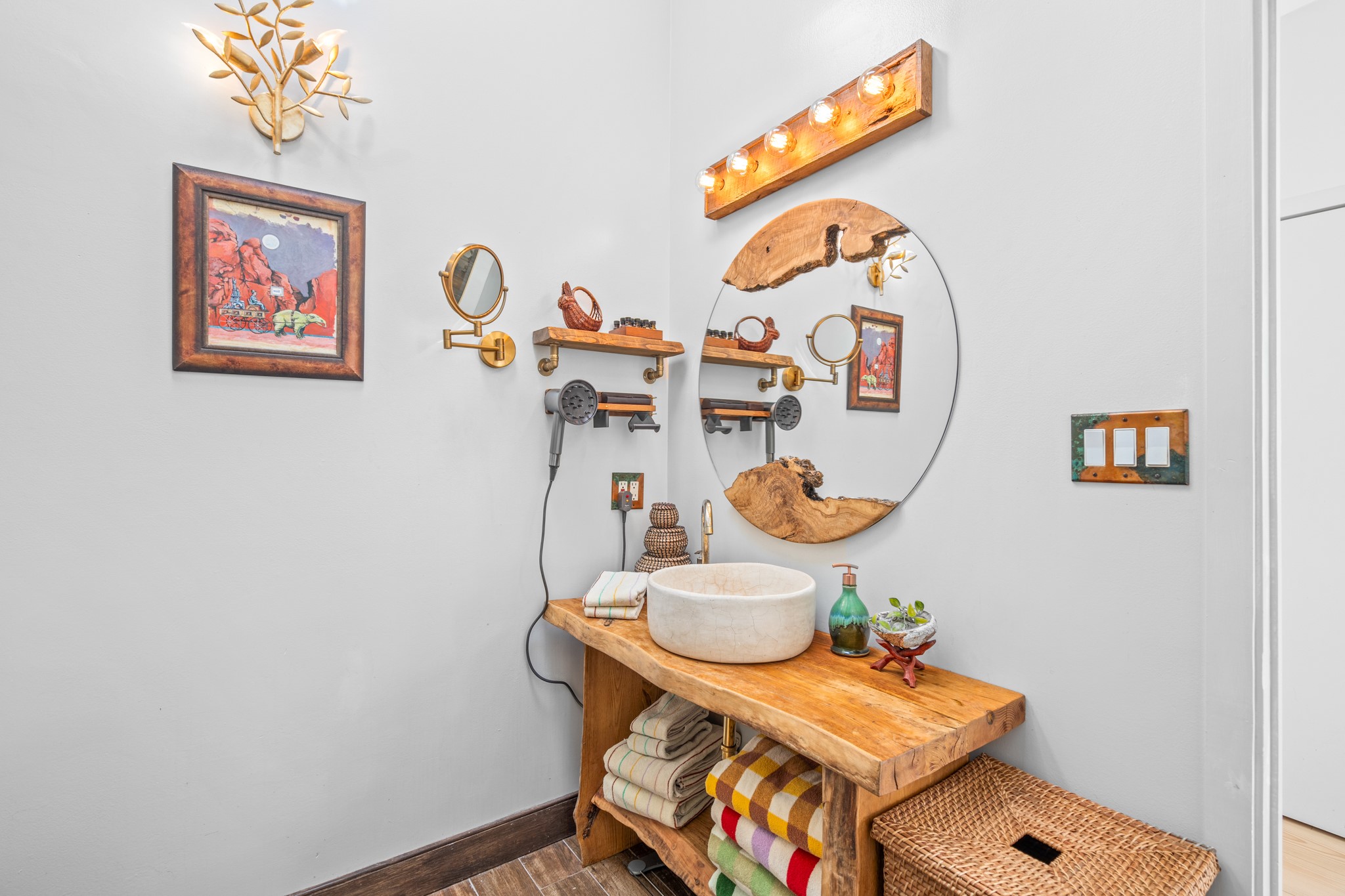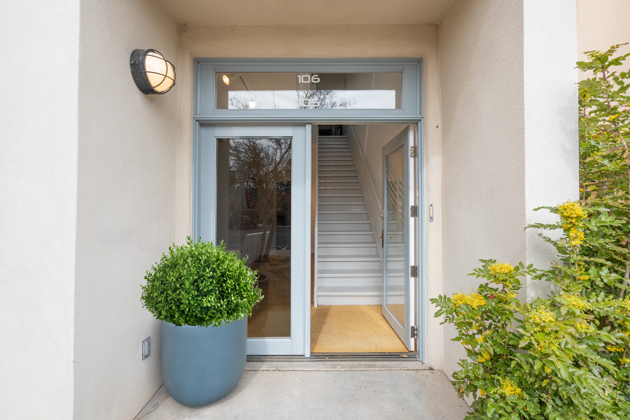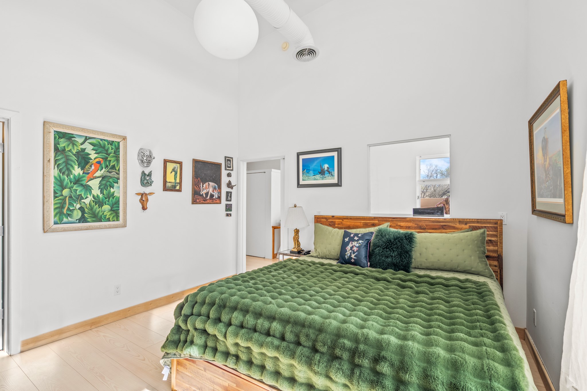 Could this be the most fabulous live / work studio in all of Santa Fe!! 2 commercially zoned live-work loft units in one.Upstairs: Completely remodeled 2 years ago. Open concept, high ceilings, very bright with skylights throughout. A 12.5x12.5 Primary Bedroom with an attached laundry space with stacked high end washer / dryer combo. The Kitchen is a high end $50K Douglas Maahs design featuring custom fixtures, custom bar / glass and lighting throughout. Many unique features were added at the time of installation. The primary bathroom is custom designed with zen copper and brass piping with wood effect tile, oversized tub and a built in bidet toilet creating a spa like feel. In the hallway there is a custom wooden work station and two stand alone closets. The open living room and dining area face a private wooded area creating a tranquil and peaceful environment.Downstairs: There is a huge 27x24 industrial space with mirrors lining one wall, cork flooring and 2 sets of french doors leading out to a tiled patio space. This room has a sink area and additional closets for storage. There are endless possibilities for this space: yoga studio, dance studio, art studio, gathering space etc. A full bath and a second 12x12 flex room for either an office, storage or a second downstairs bedroom.There are many built in custom shelve systems and plenty of storage.2550 square feet in total with the top floor and bottom floor in equal size but in different configurations. These 2 floors can be separated into 2 unique spaces or kept as one large unit. There are many businesses and private living spaces in The Lofts Complex, commercially zoned, ample parking with handicapped parking right in front ... did I mention the large dog park just a few feet away? ... Will you be the next owners to move in and make your work / live dreams come true?