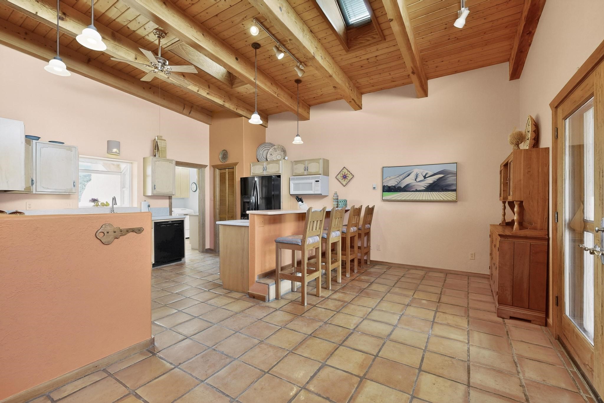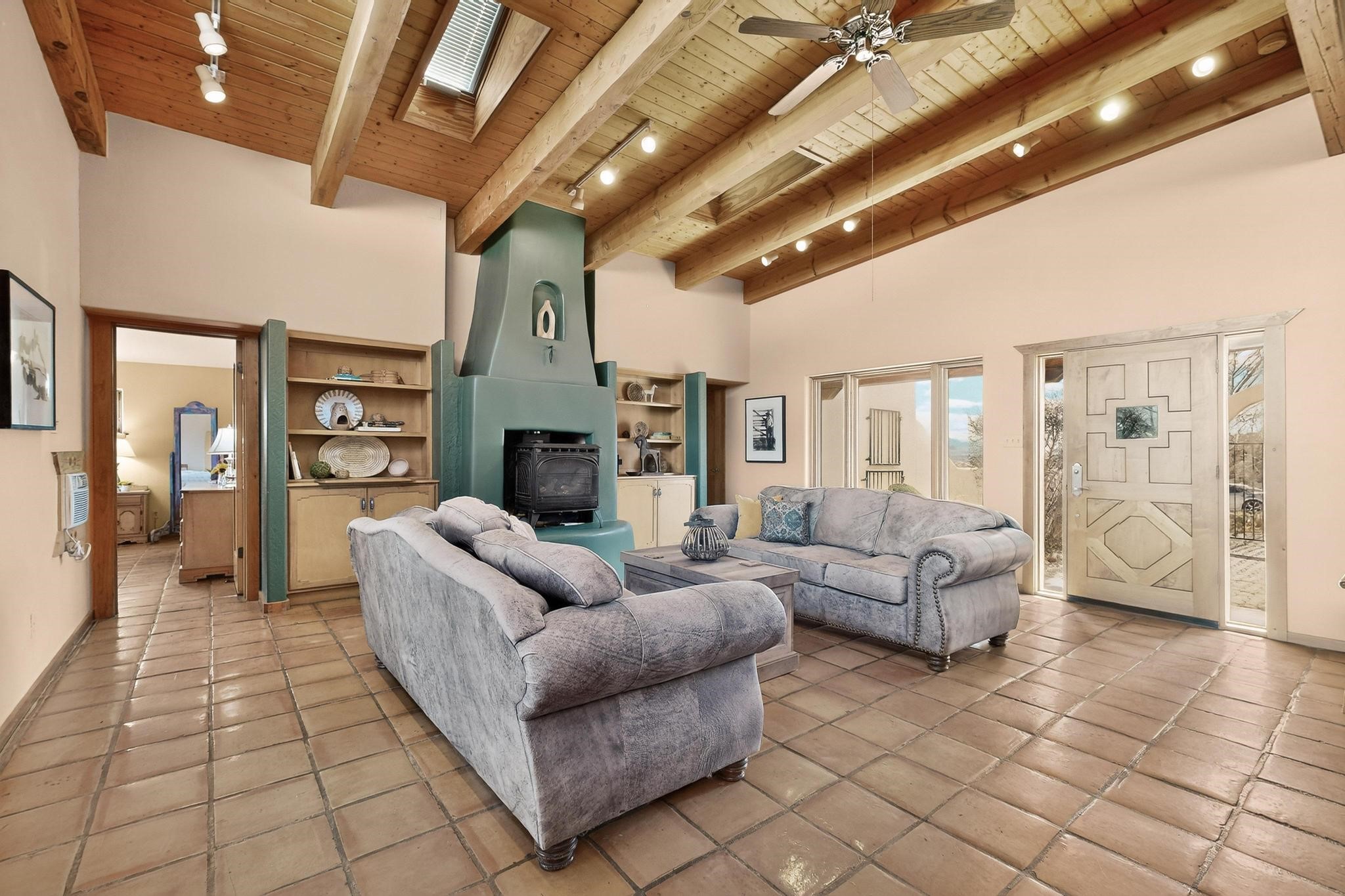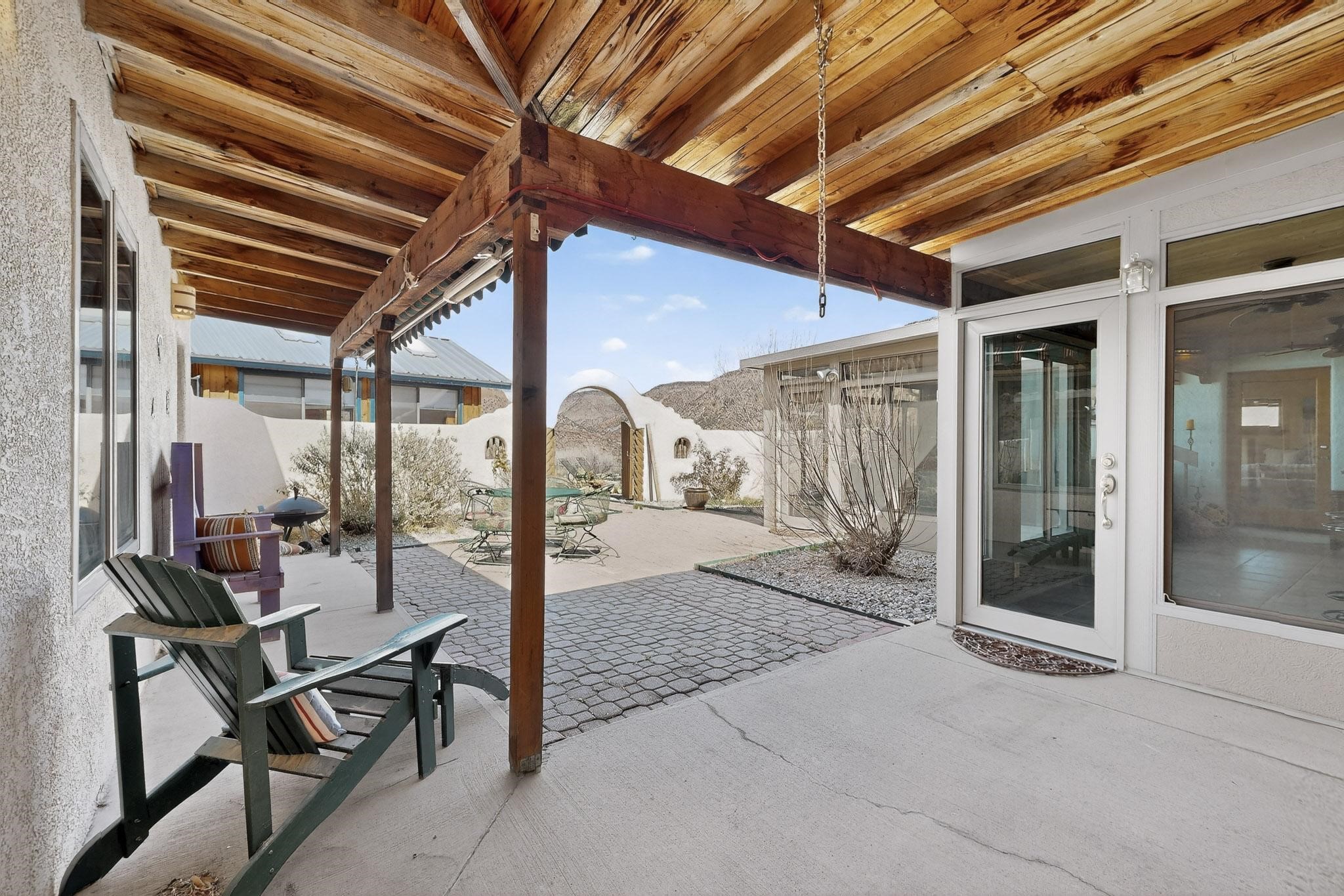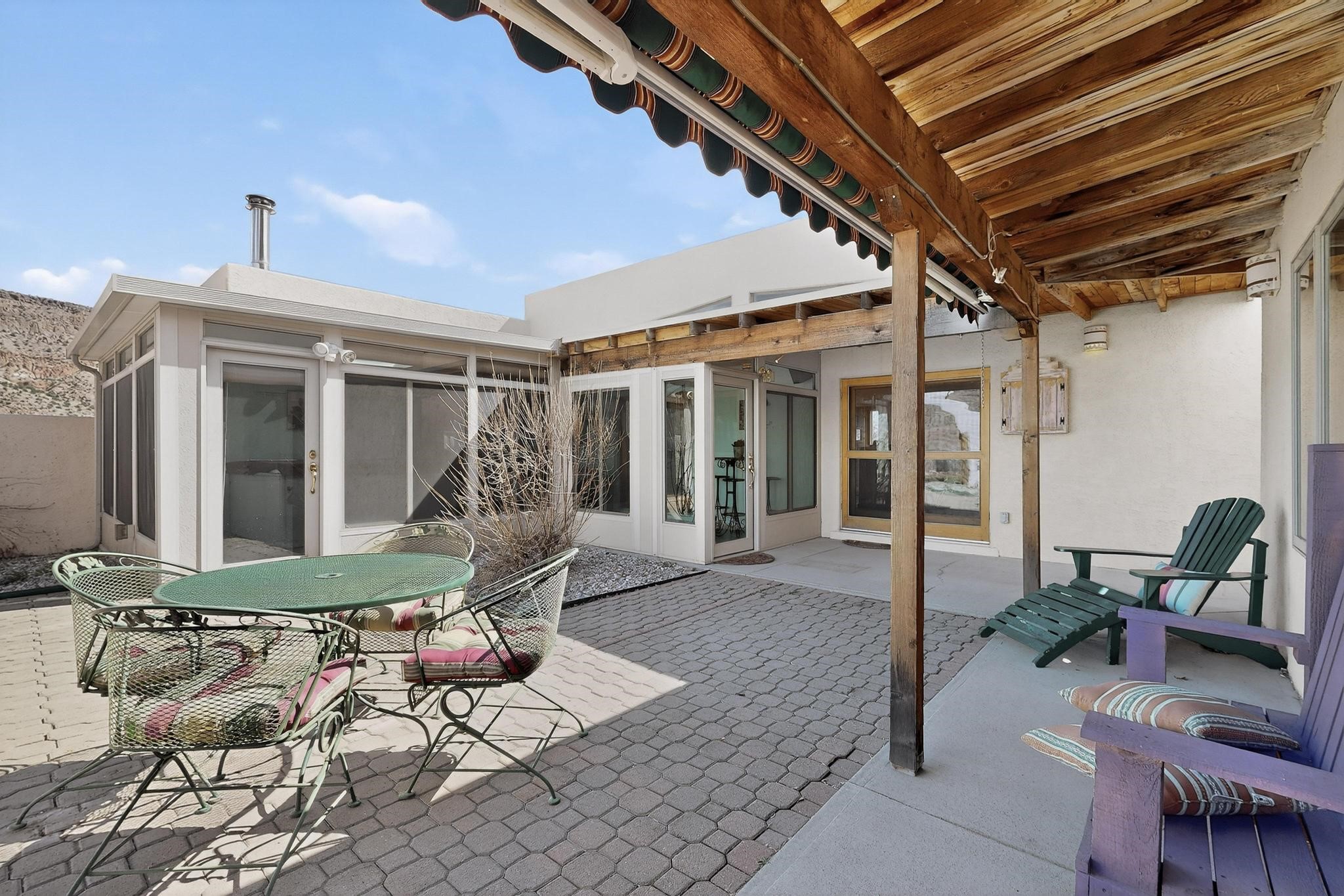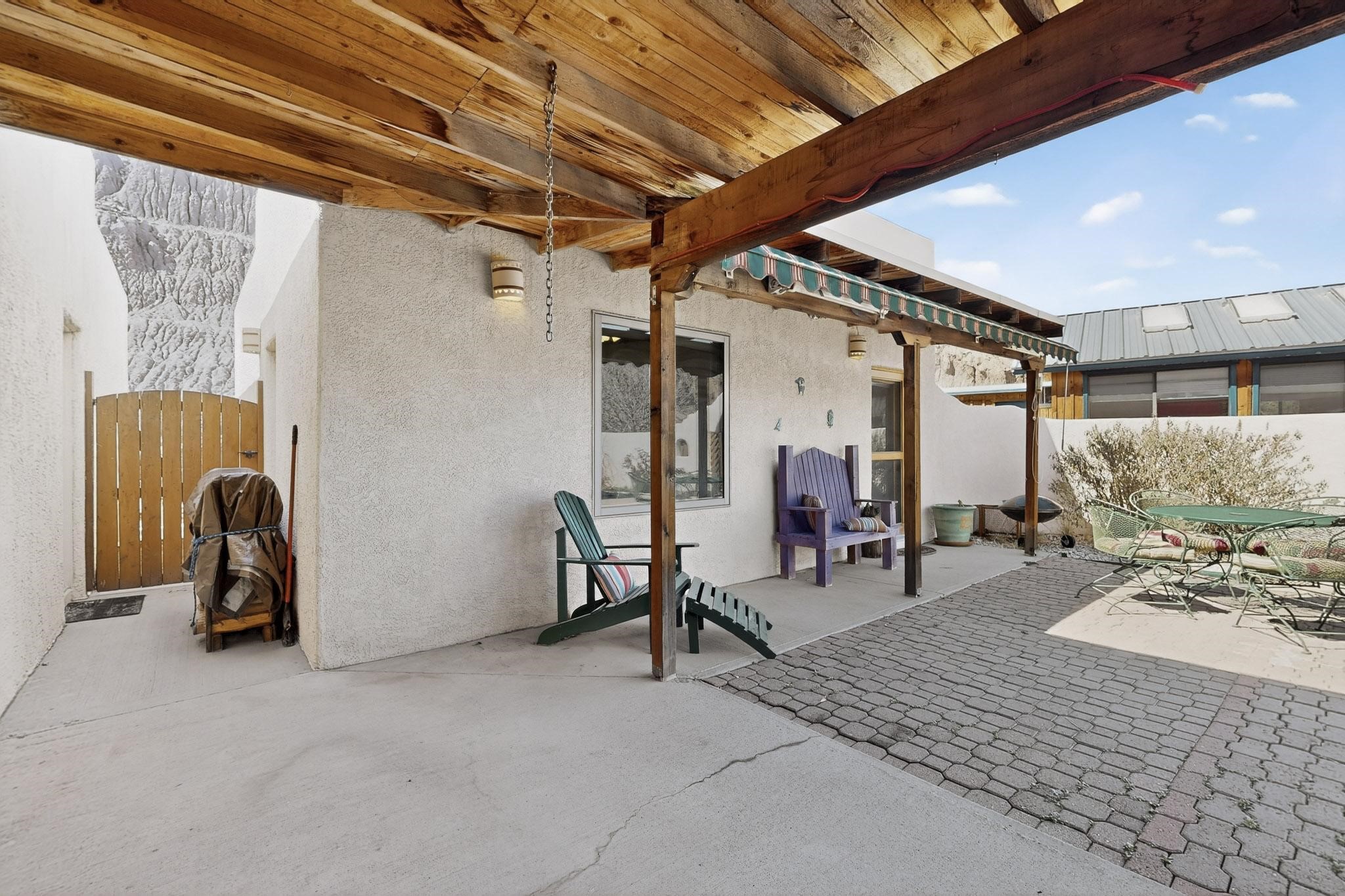 An Elevated Southwest experience on 5.75 acres set against breathtaking Red Mesas of Jemez, capturing expansive VIEWS & exceptional seclusion in a private end of road setting. Enter through courtyard garden into great room, high wood beam ceilings & Radiant Saltillo tile throughout. Spacious kitchen w/ island opens seamlessly for gathering & entertaining. Meticulously cared for, this property reflects lasting quality. Beautiful, spacious primary suite w/ private bath & walk in closet. Comfortable enclosed sunroom w/ hot tub for year round relaxation. Outside, Casita beautifully finished in matching materials, perfect for guests or multigenerational living. Newer TPO roof, 2 fireplaces, laundry room, oversized finished 2 car garage w/ workshop & generator, plus additional studio & RV PAD.At the crown of established Tower Ridge Road, this bespoke retreat commands sweeping red rock views and a rare sense of privacy. The home enjoys a naturally elevated setting where surrounding residences remain respectfully set apart, while direct access to bordering public land opens to miles of unspoiled landscape and quiet exploration. Pella windows throughout, complemented by automated skylights with remote controlled venting a. The spacious primary suite, well appointed bath, walk in closet. The laundry room offers thoughtful functionality. Throughout the home, doors, cabinetry crafted from hardwood, coordinated hardware.The detached casita offers exceptional flexibility for guests or extended stays, wood burning stove, radiant floor heat, Evap. cooler, heating, private bath.Detached studio annex heating /cooling wall unit 3 skylights, ambient diffusing shade screens, offering exceptional versatility for art, yoga, storage, studio work, a wood shop, light industrial projects.An oversized finished 2 car garage, storage or projects. A propane powered generator is also included. Full tiled sunroom with a nice hot-tubFurniture may be available with an acceptable offer.
