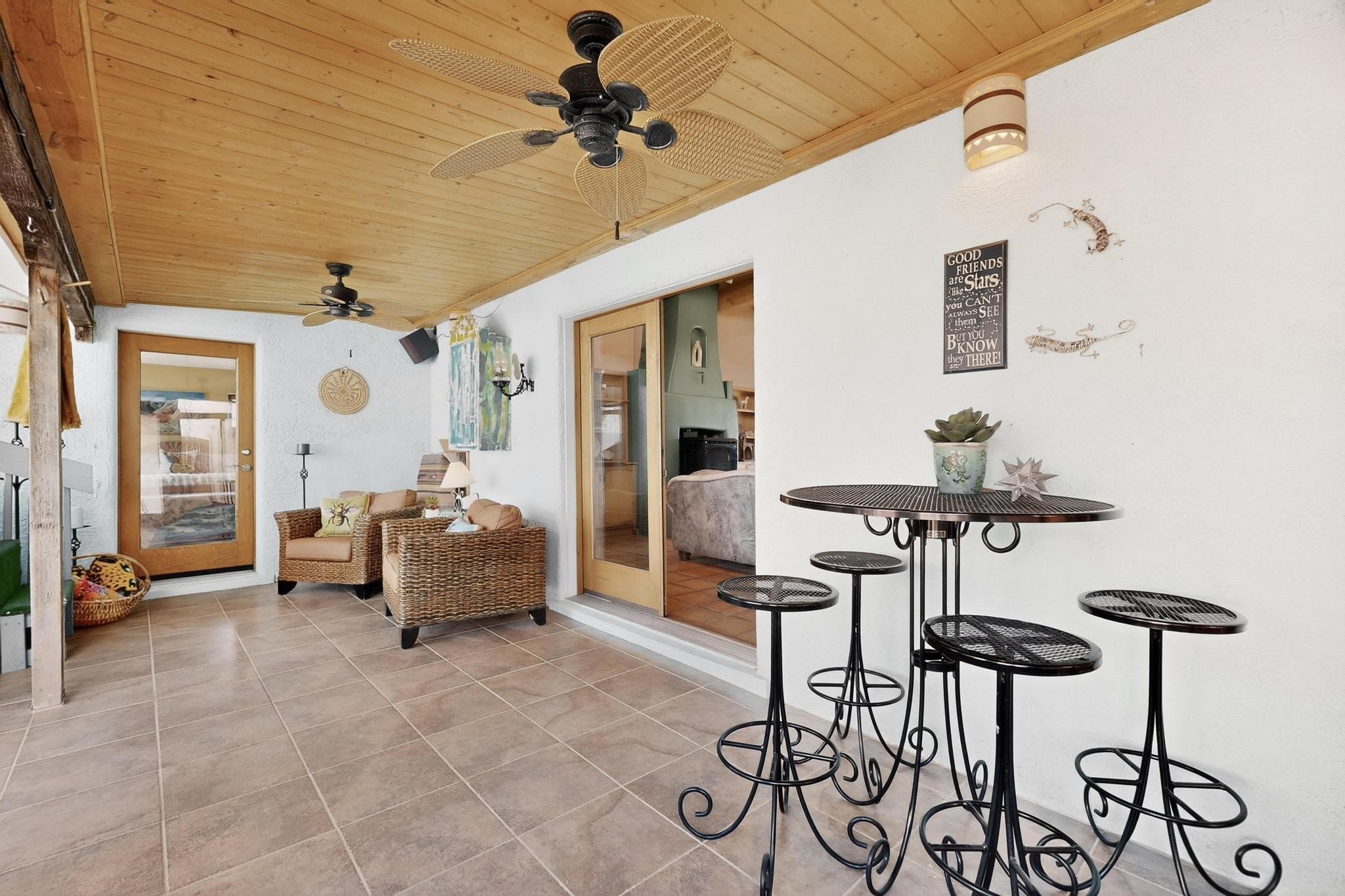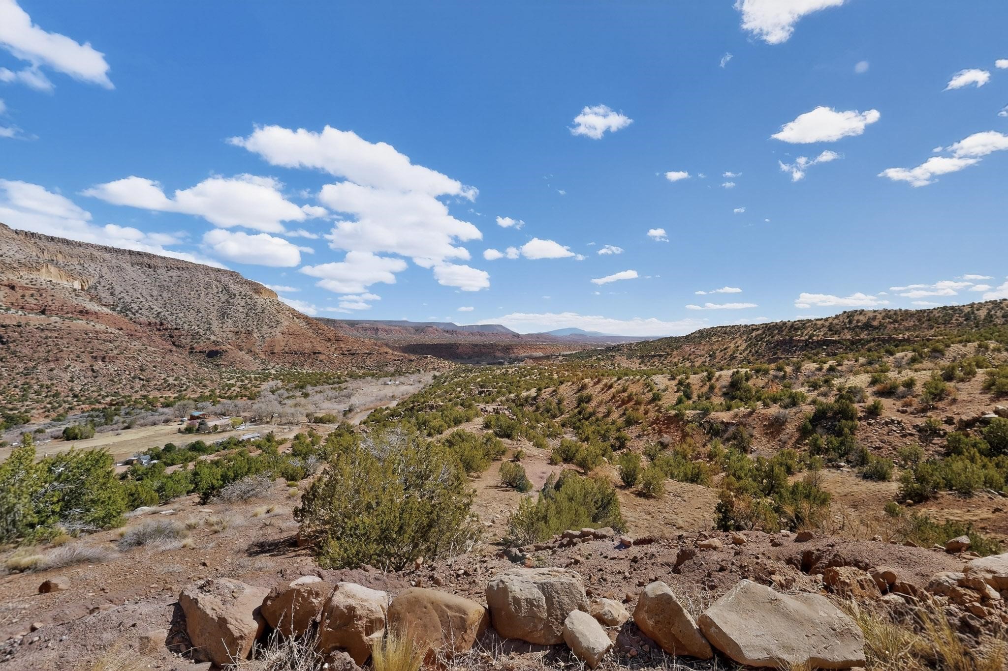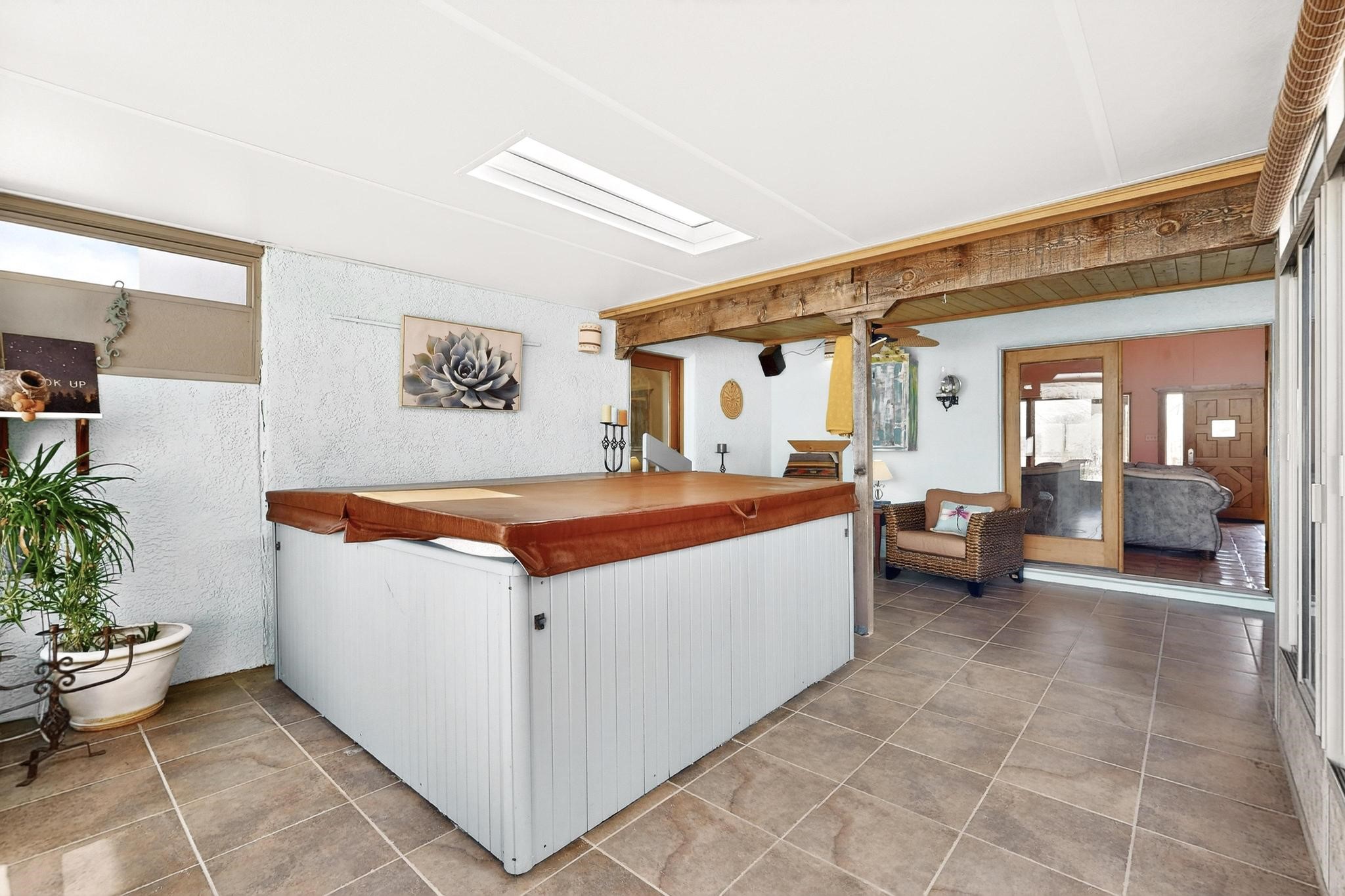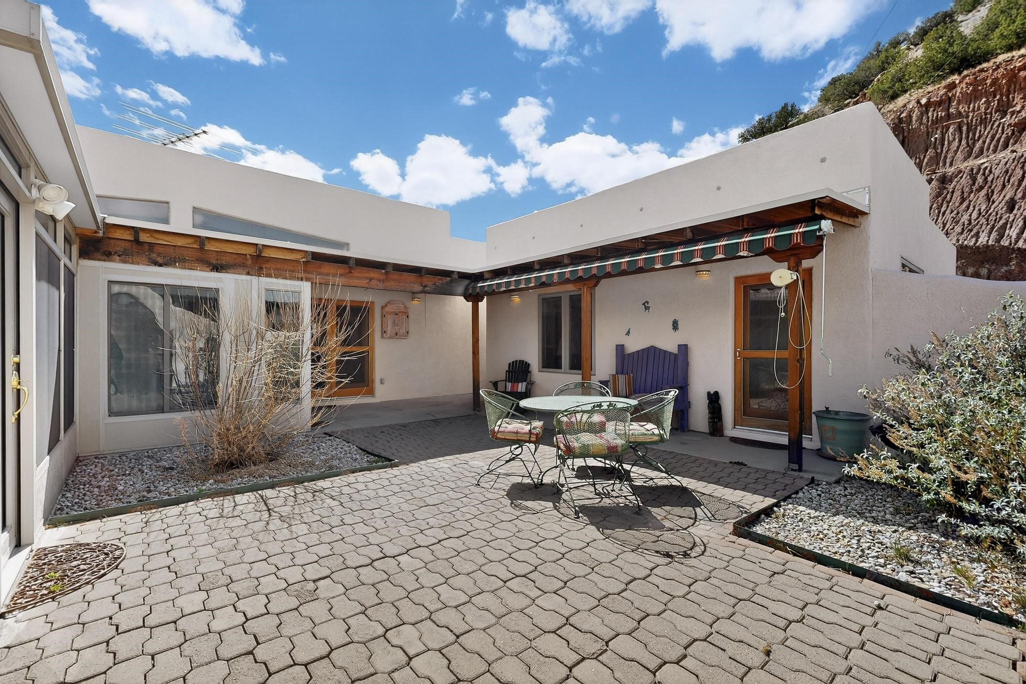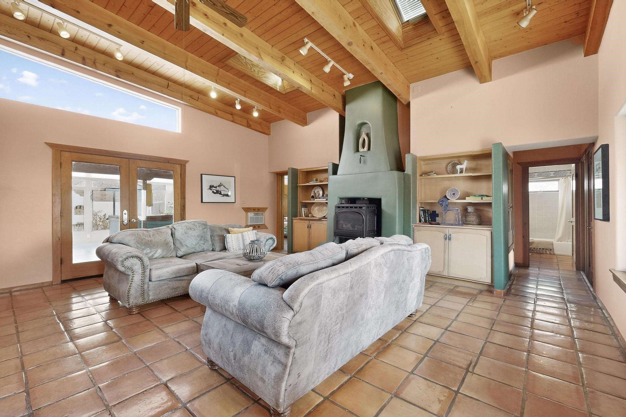An Elevated Southwest experience on 5.75 acres set against breathtaking Red Mesas of Jemez, capturing expansive VIEWS & exceptional seclusion in a private end of road setting. Enter through courtyard garden into great room, high wood beam ceilings & Radiant Saltillo tile throughout. Spacious kitchen w/ island opens seamlessly for gathering & entertaining. Meticulously cared for, this property reflects lasting quality. Beautiful, spacious primary suite w/ private bath & walk in closet. Comfortable enclosed sunroom w/ hot tub for year round relaxation. Outside, Casita beautifully finished in matching materials, perfect for guests or multigenerational living. Newer TPO roof, 2 fireplaces, laundry room, oversized finished 2 car garage w/ workshop & generator, plus additional studio & RV PAD.At the crown of established Tower Ridge Road, this bespoke retreat commands sweeping red rock views and a rare sense of privacy. The home enjoys a naturally elevated setting where surrounding residences remain respectfully set apart, while direct access to bordering public land opens to miles of unspoiled landscape and quiet exploration. Pella windows throughout, complemented by automated skylights with remote controlled venting a. The spacious primary suite, well appointed bath, walk in closet. The laundry room offers thoughtful functionality. Throughout the home, doors, cabinetry crafted from hardwood, coordinated hardware.The detached casita offers exceptional flexibility for guests or extended stays, wood burning stove, radiant floor heat, Evap. cooler, heating, private bath.Detached studio annex heating /cooling wall unit 3 skylights, ambient diffusing shade screens, offering exceptional versatility for art, yoga, storage, studio work, a wood shop, light industrial projects.An oversized finished 2 car garage, storage or projects. A propane powered generator is also included. Full tiled sunroom with a nice hot-tubFurniture may be available with an acceptable offer.