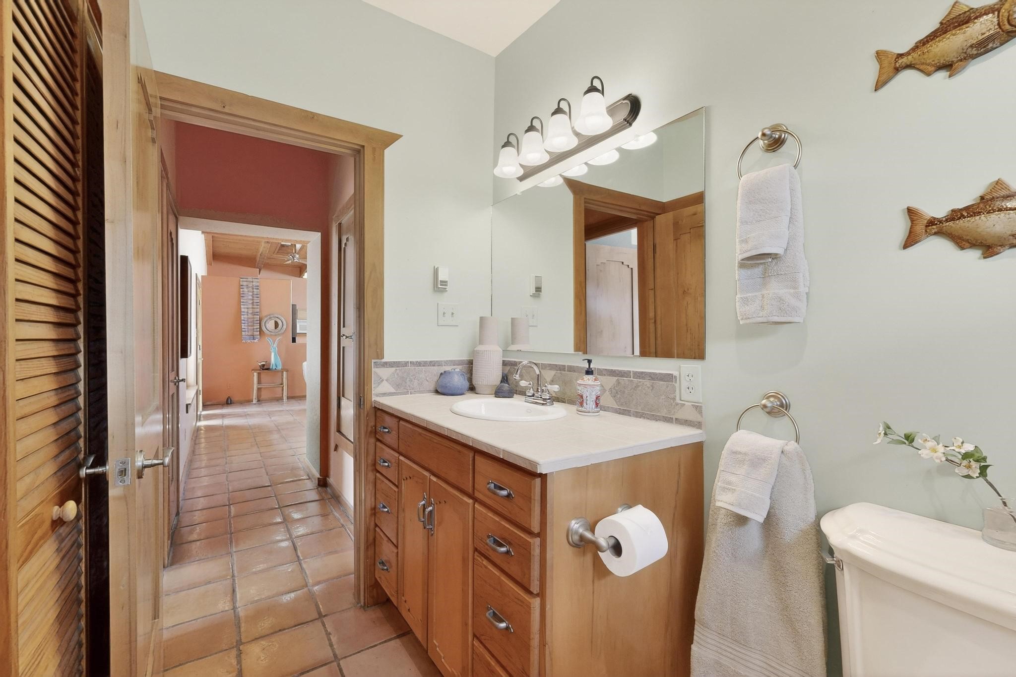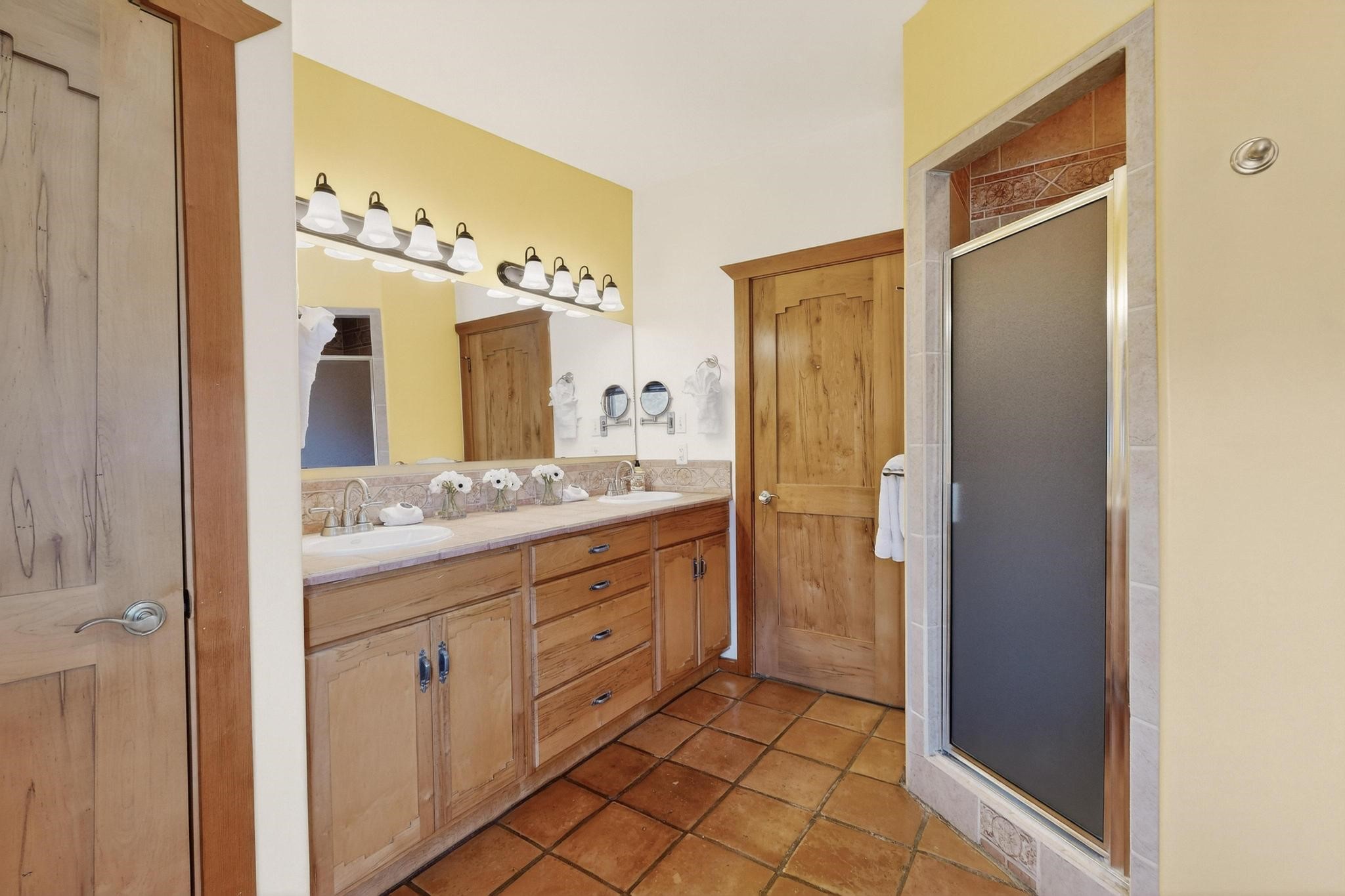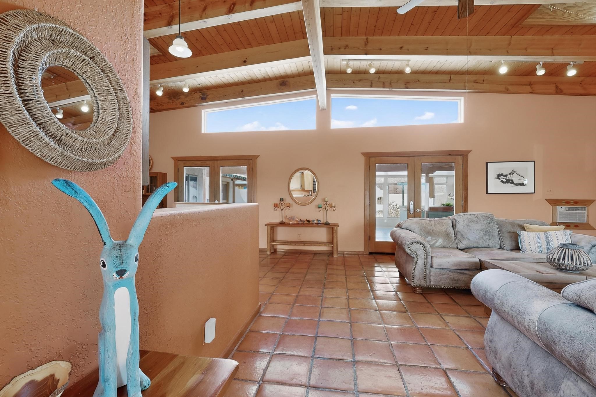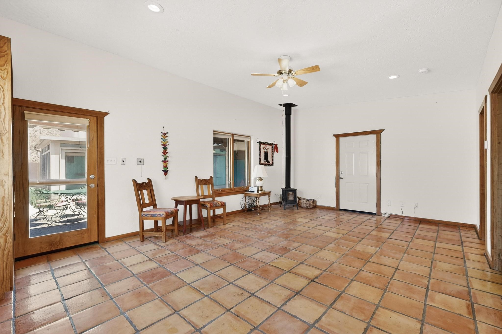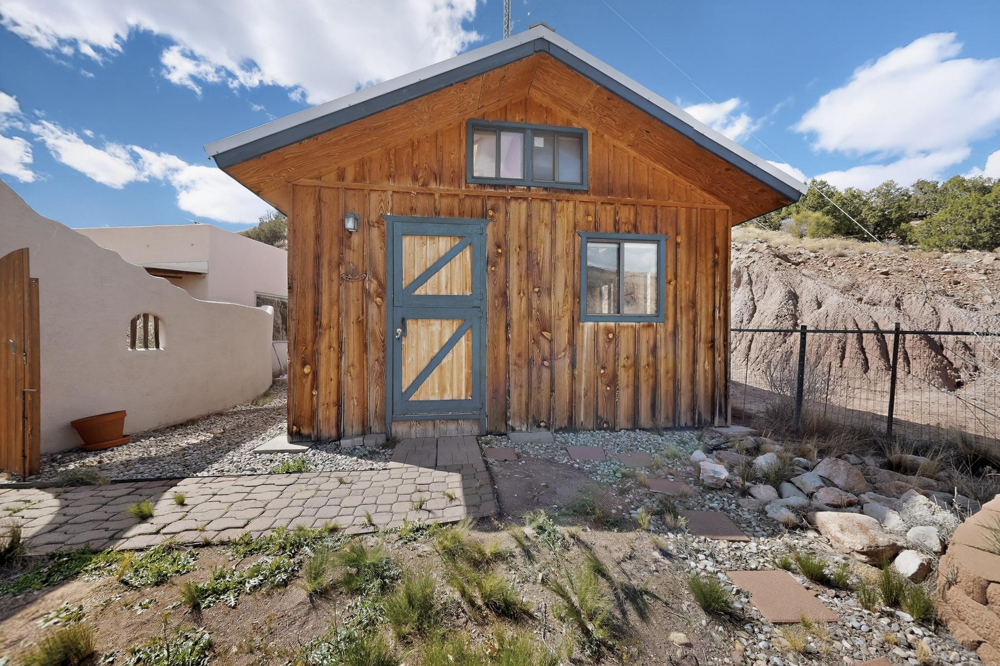 An Elevated Southwest experience on 5.75 acres set against breathtaking Red Mesas of Jemez, capturing expansive VIEWS & exceptional seclusion in a private end of road setting. Enter through courtyard garden into great room, high wood beam ceilings & Radiant Saltillo tile throughout. Spacious kitchen w/ island opens seamlessly for gathering & entertaining. Meticulously cared for, this property reflects lasting quality. Beautiful, spacious primary suite w/ private bath & walk in closet. Comfortable enclosed sunroom w/ hot tub for year round relaxation. Outside, Casita beautifully finished in matching materials, perfect for guests or multigenerational living. Newer TPO roof, 2 fireplaces, laundry room, oversized finished 2 car garage w/ workshop & generator, plus additional studio & RV PAD.At the crown of established Tower Ridge Road, this bespoke retreat commands sweeping red rock views and a rare sense of privacy. The home enjoys a naturally elevated setting where surrounding residences remain respectfully set apart, while direct access to bordering public land opens to miles of unspoiled landscape and quiet exploration. Pella windows throughout, complemented by automated skylights with remote controlled venting a. The spacious primary suite, well appointed bath, walk in closet. The laundry room offers thoughtful functionality. Throughout the home, doors, cabinetry crafted from hardwood, coordinated hardware.The detached casita offers exceptional flexibility for guests or extended stays, wood burning stove, radiant floor heat, Evap. cooler, heating, private bath.Detached studio annex heating /cooling wall unit 3 skylights, ambient diffusing shade screens, offering exceptional versatility for art, yoga, storage, studio work, a wood shop, light industrial projects.An oversized finished 2 car garage, storage or projects. A propane powered generator is also included. Full tiled sunroom with a nice hot-tubFurniture may be available with an acceptable offer.