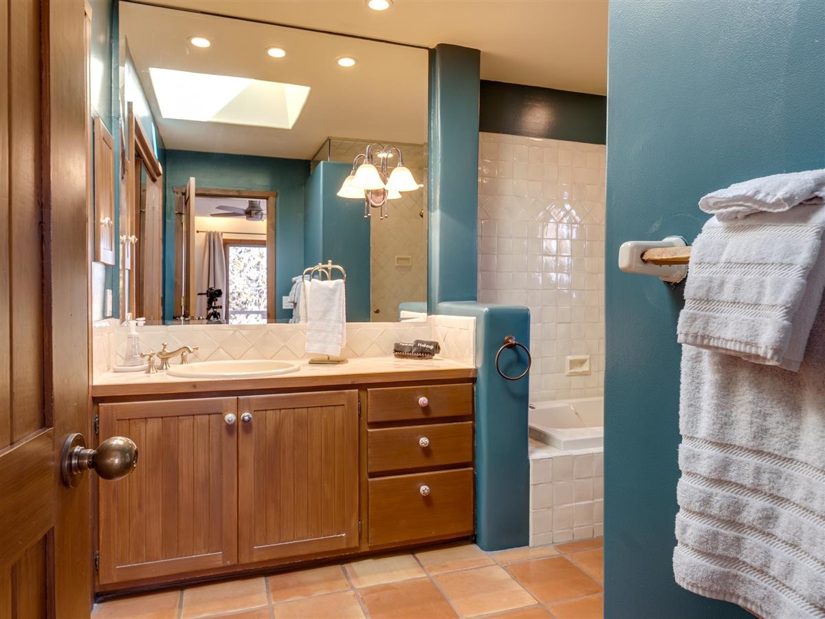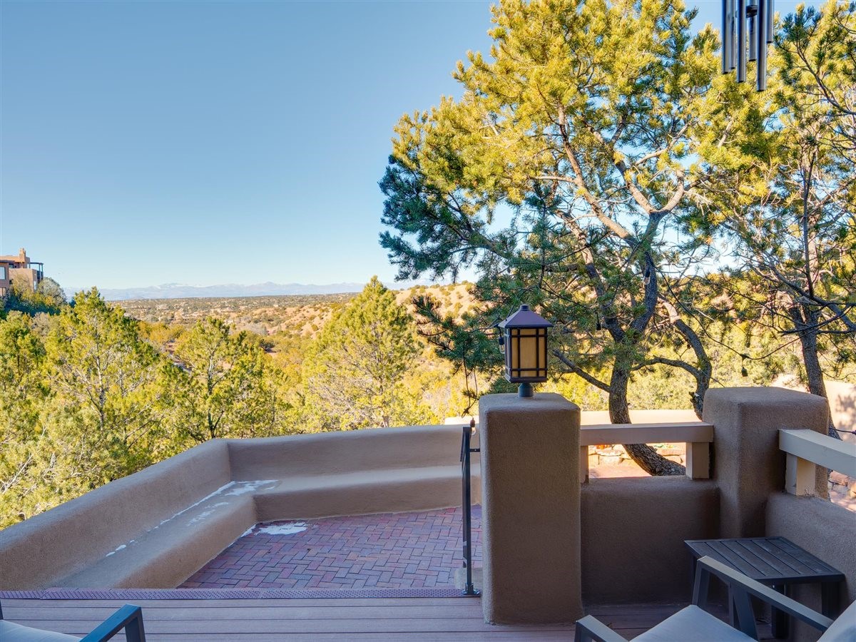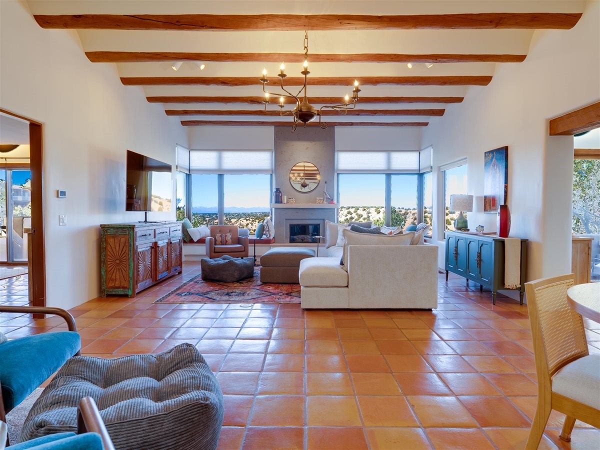 Extraordinary home in coveted 1000 East community off Hyde Park Road. Panoramic Jemez views greet you as you walk into this single level residence. Welcoming great room, beautiful dining area, brand new kitchen and primary suite all capture the magical light and expansive views. Beautiful design features throughout include elevated, coved ceilings, skylights, saltillo tiles & fireplaces. This stand alone condo features 3 bedrooms and 2 full baths with an attached 2 car garage (with cedar closet!). The private patio expands your living space with alfresco dining and seating to enjoy the twinkling lights and stargazing. Newly renovated... New roof, new stucco, new skylights. Completely painted throughout. Total kitchen renovation includes custom cabinets, quartz countertops, hardware, plumbing and light fixtures, new Bosch refrigerator and dishwasher. Ideal location makes this perfect for full time residence or as a Santa Fe retreat. Just minutes from the plaza with shopping, dining and the arts close by. Head up the mountain to the trails for hiking...or a short drive up to Ski Santa Fe. Make this your new home!