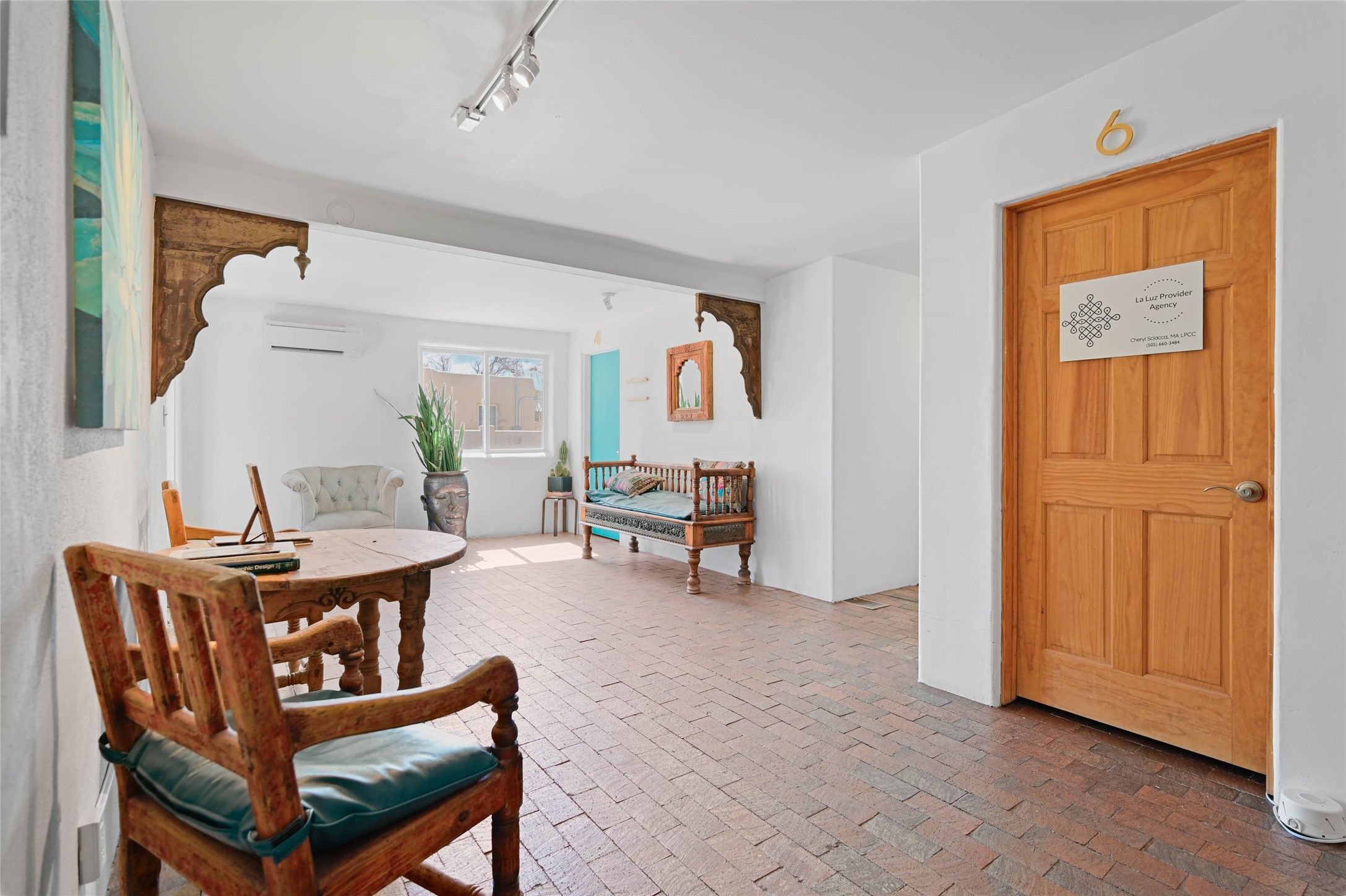 Office building ideal for businesses in the health, wellness, and beauty professions. The space features an open floor plan with expansive mirrors and additional storage. A common break area is included, and the property offers street frontage on Agua Fra Street. The building has been recently renovated and includes off-street parking.
